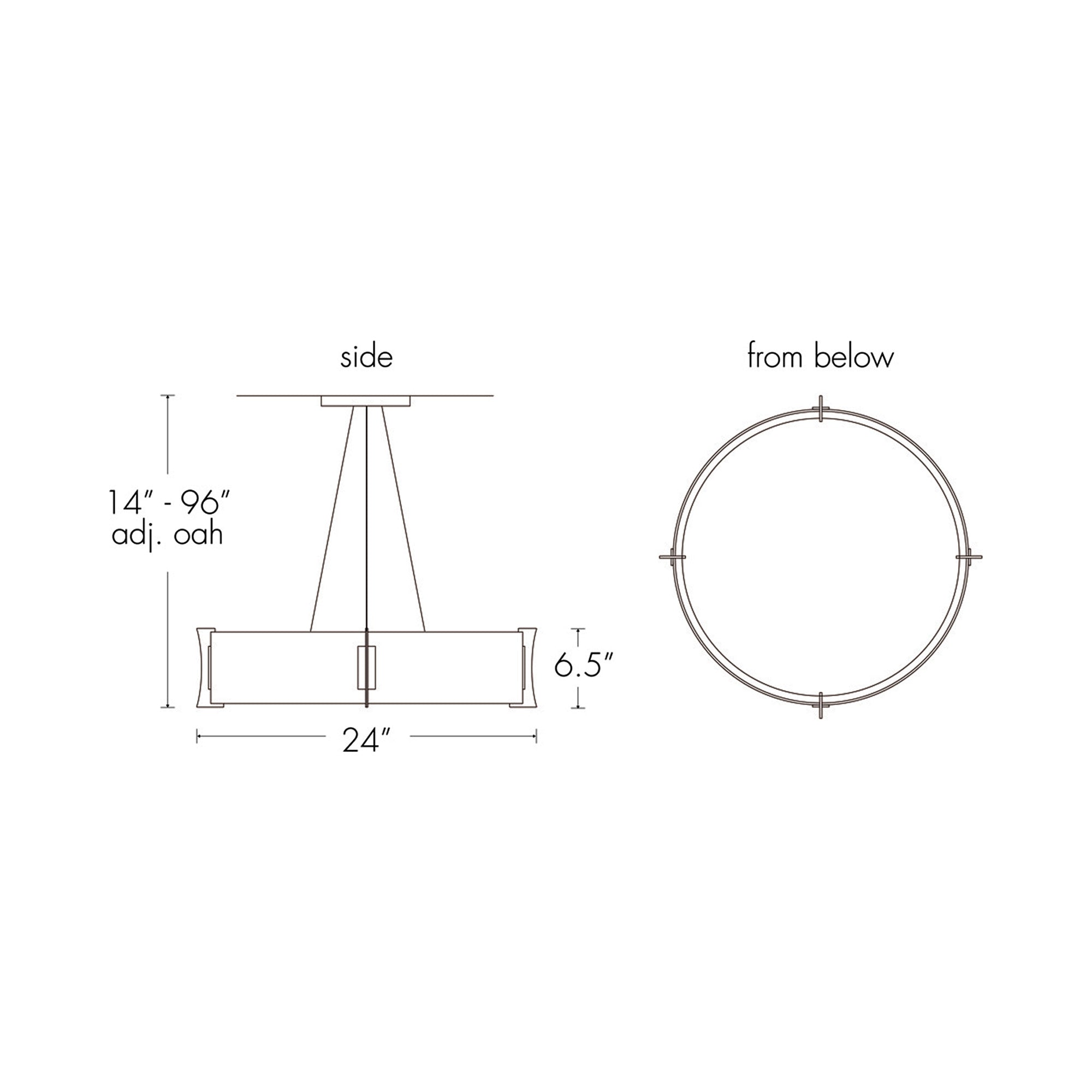 - Dimensions: 24"D X 6.5"H; 96" max height