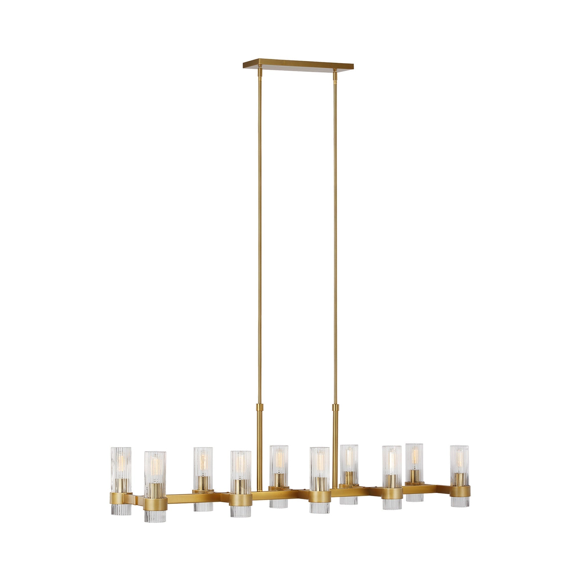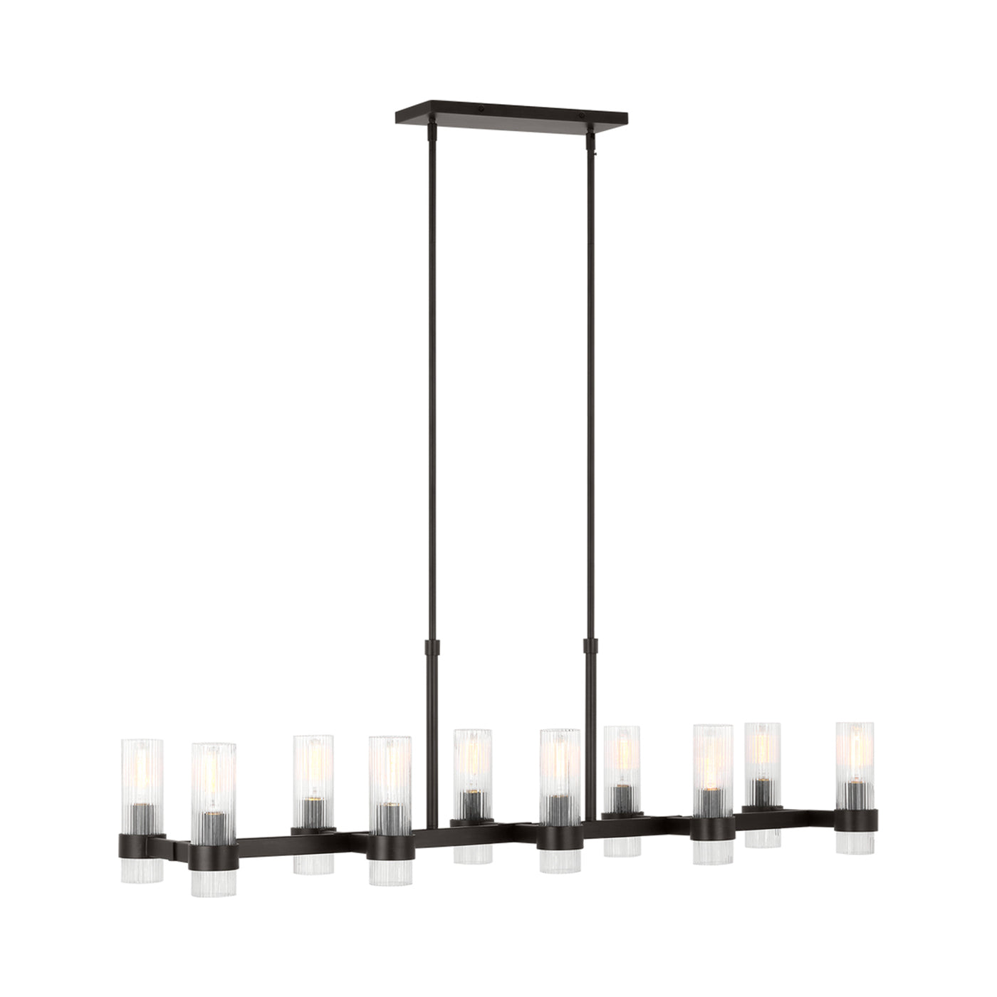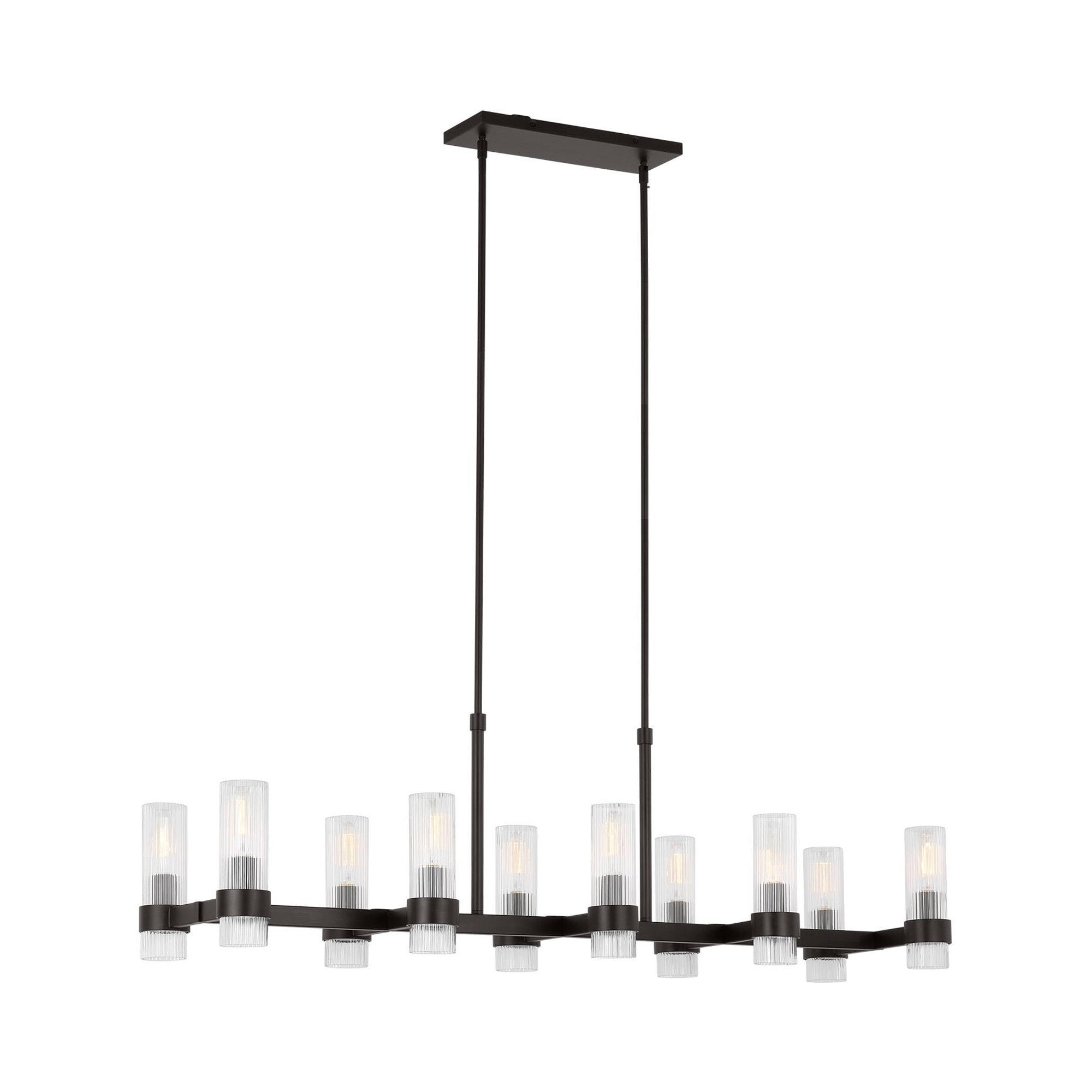 Delicately fluted cylinders scatter the light of the Geneva Linear Pendant Light from Visual Comfort Studio to create a warm, diffused glow. Beautiful over a dining table or kitchen island, the pendant is a simple, structured fixture that shows off candelabra inspirations updated for a modern look and feel. An aged iron finish delivering depth and contrast without overwhelming, perfect for a casually inviting living space.