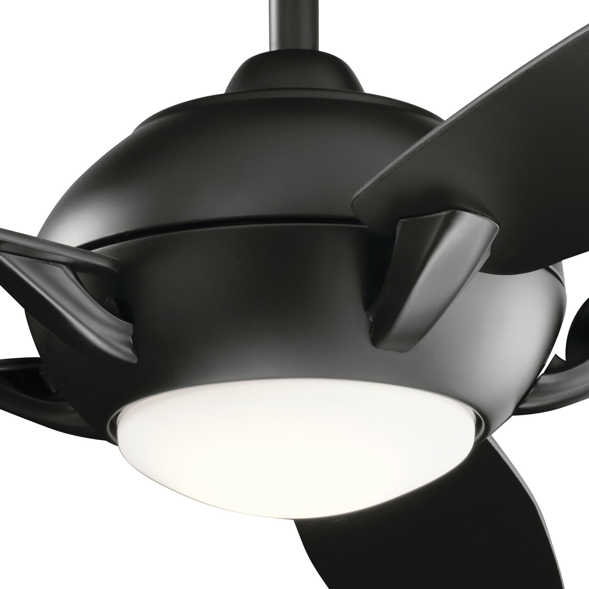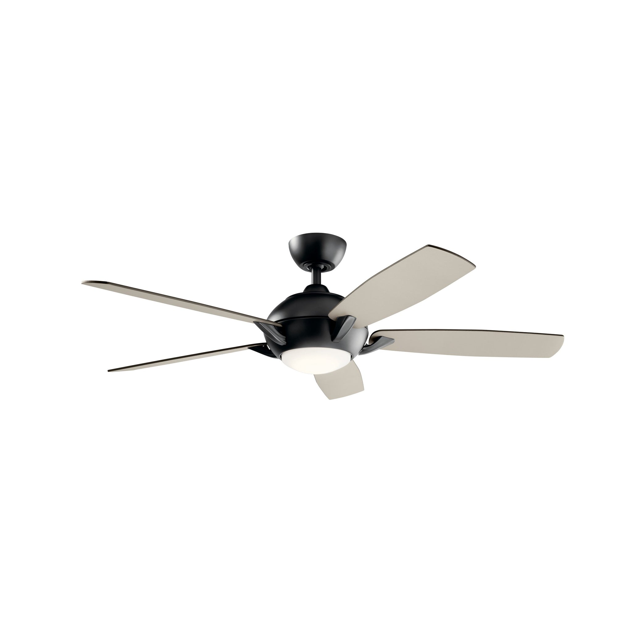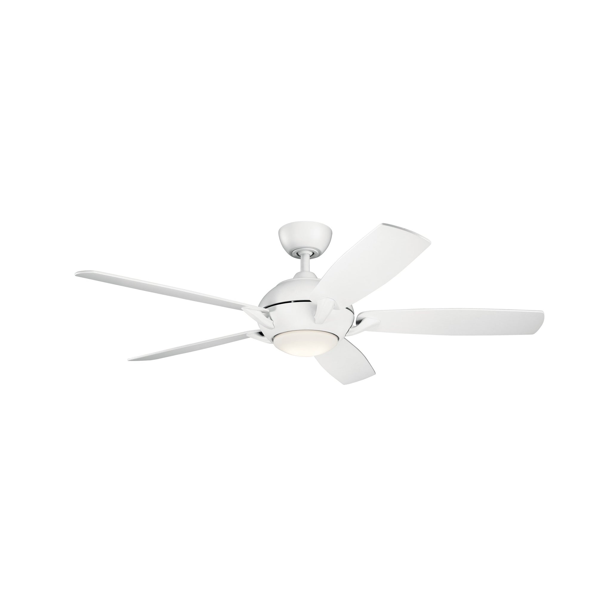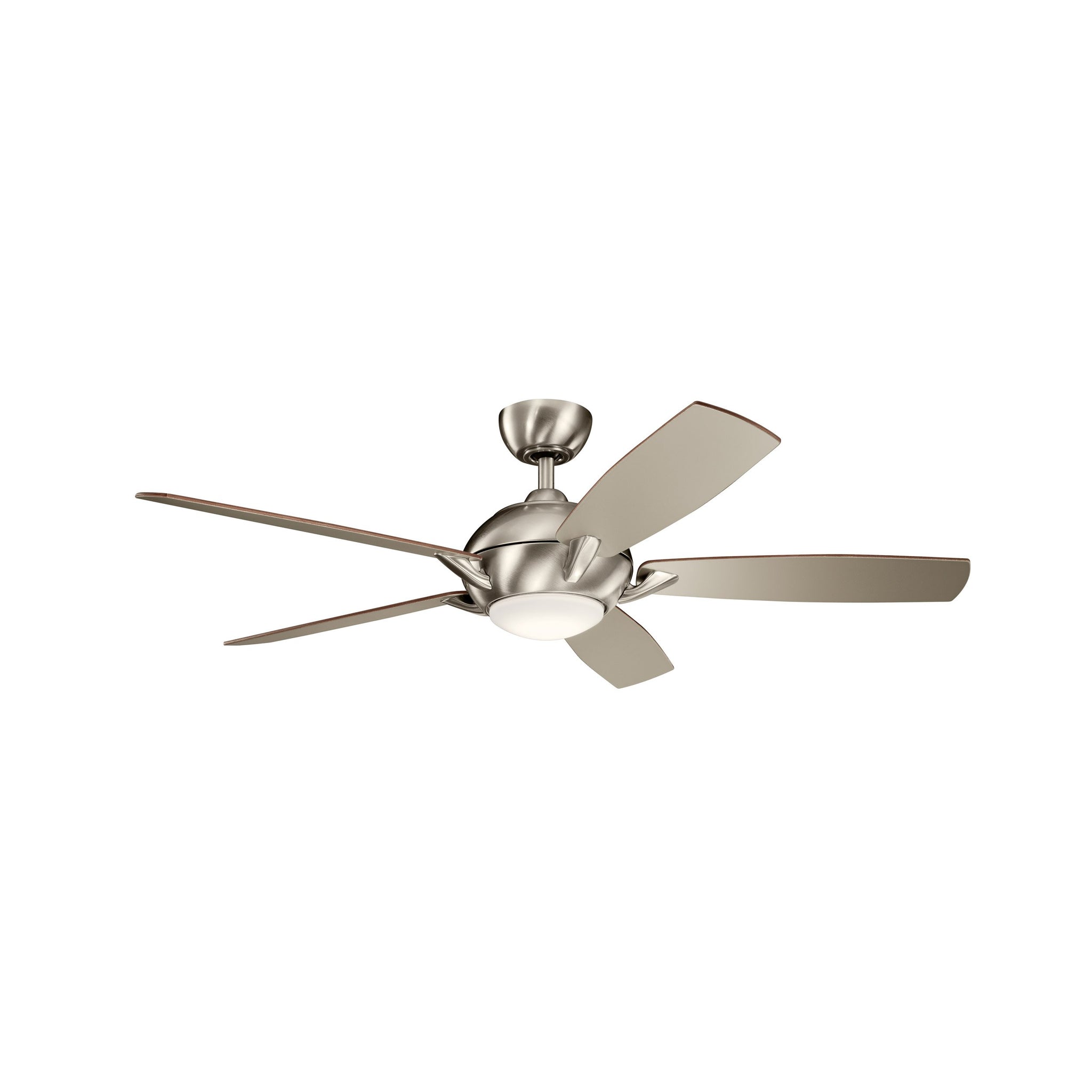 This transitionally styled, Brushed Stainless Steel, Matte White, Olde Bronze and Satin Black ceiling fan from the Geno™ collection fits a range of decorating tastes. Attractive blade irons, integrated LED light kit and an included remote control operating system make this a great choice for your home.