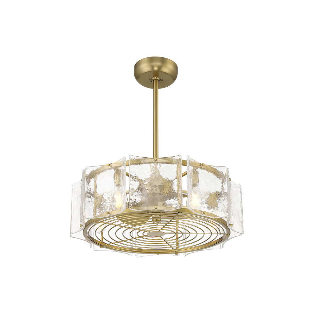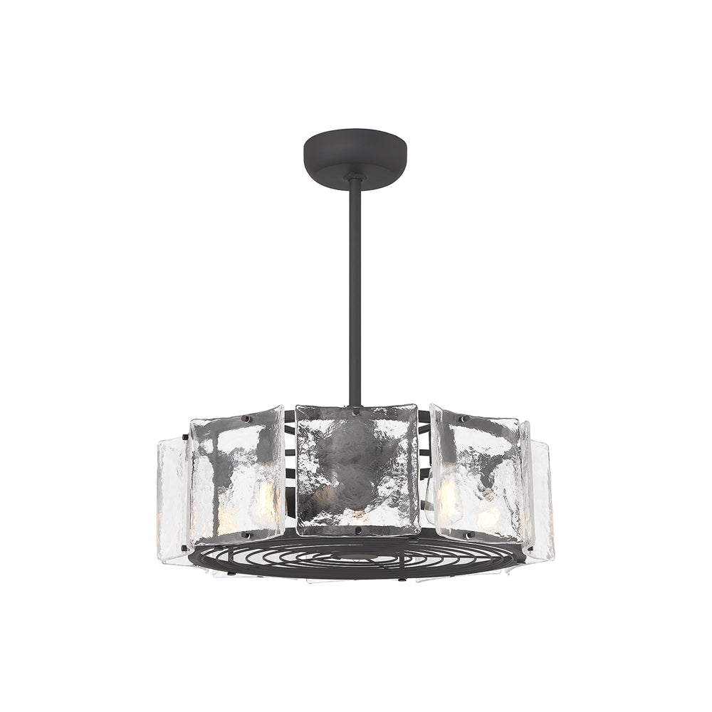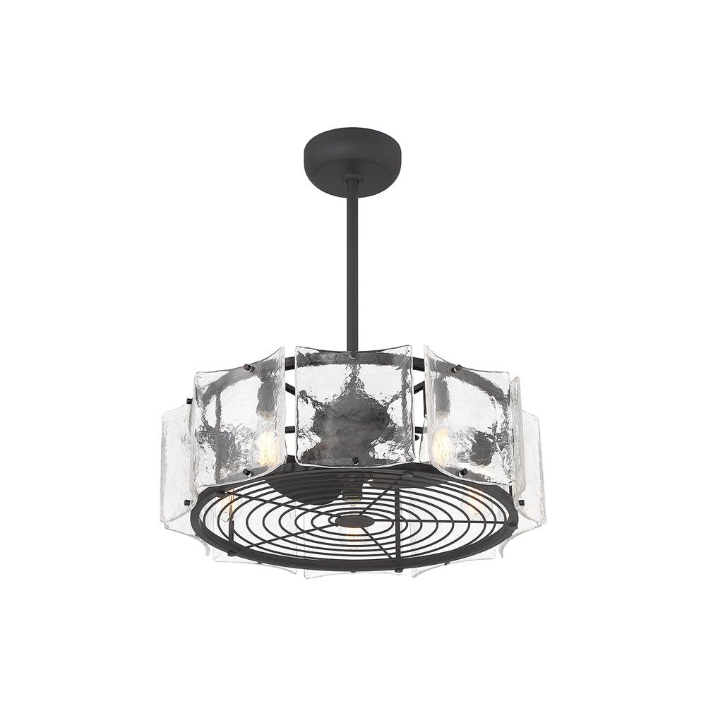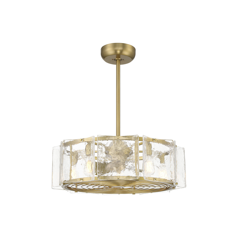 A cool aesthetic delivers cooling freshness with glam creds and a gritty industrial motif. The Genry LED Fan D'Lier from Savoy House adds a superb hybrid of a ceiling fan and decadent designer fixture, with metal framing and fan blades ready to circulate air. Tasteful glass panels in a reverse-curve design finish this energy-efficient, multi-purpose chandelier/fan unit with a decadent, timeless vibe.