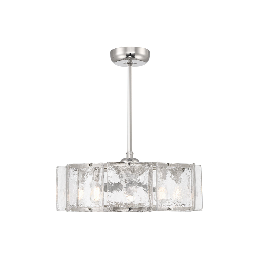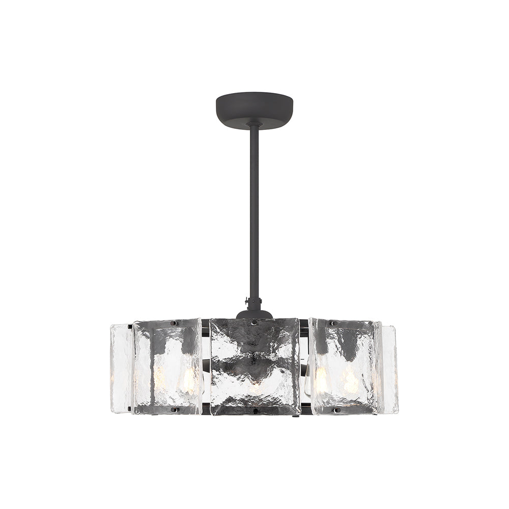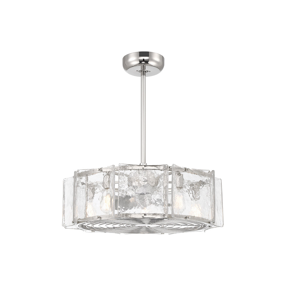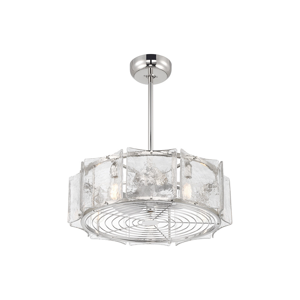 A cool aesthetic delivers cooling freshness with glam creds and a gritty industrial motif. The Genry LED Fan D'Lier from Savoy House adds a superb hybrid of a ceiling fan and decadent designer fixture, with metal framing and fan blades ready to circulate air. Tasteful glass panels in a reverse-curve design finish this energy-efficient, multi-purpose chandelier/fan unit with a decadent, timeless vibe.