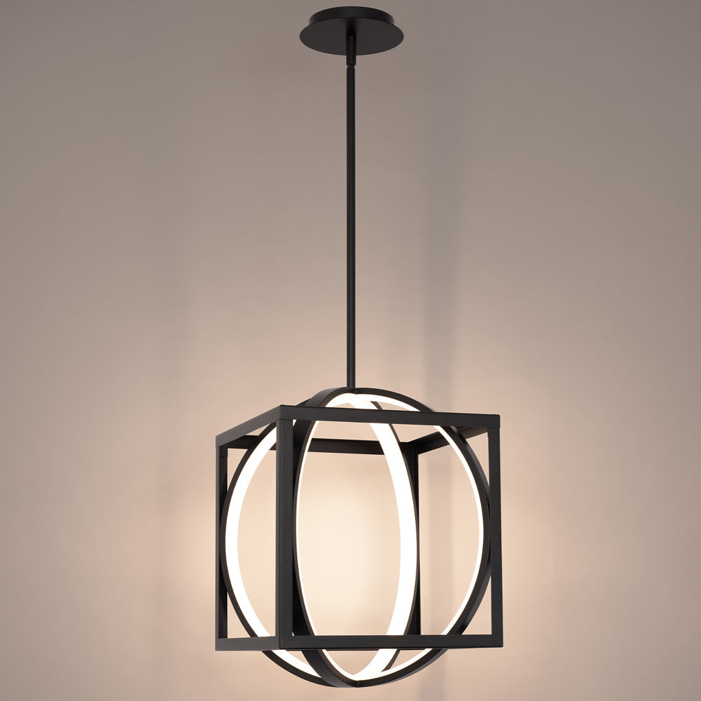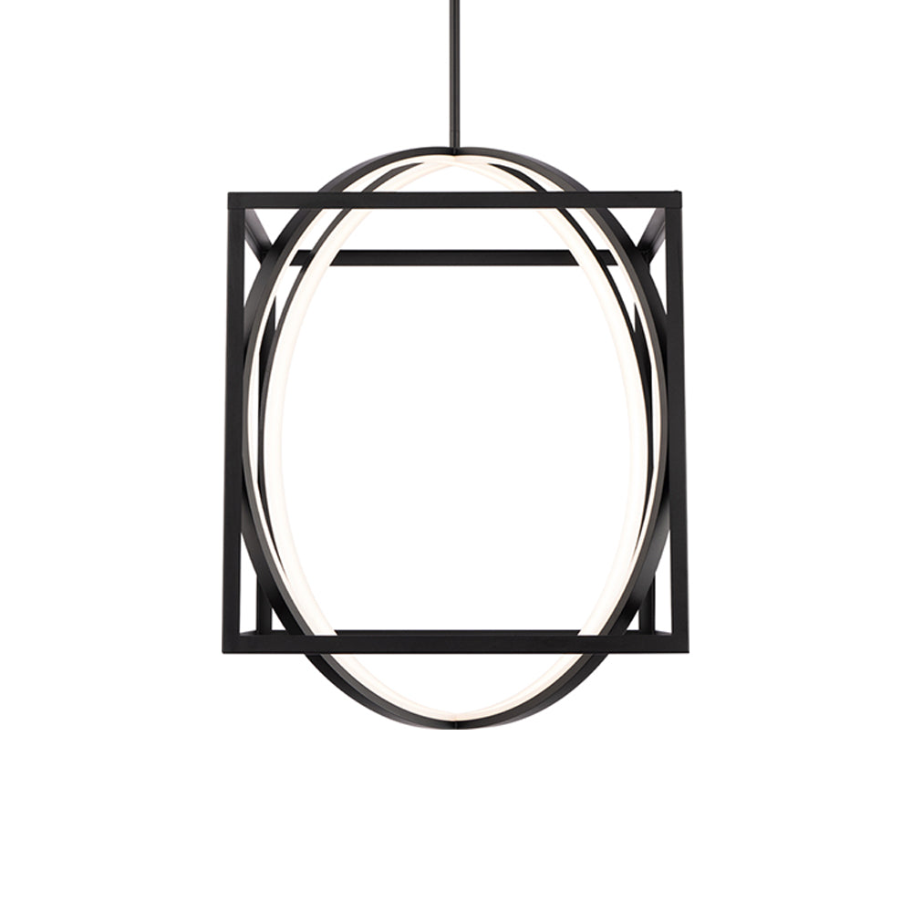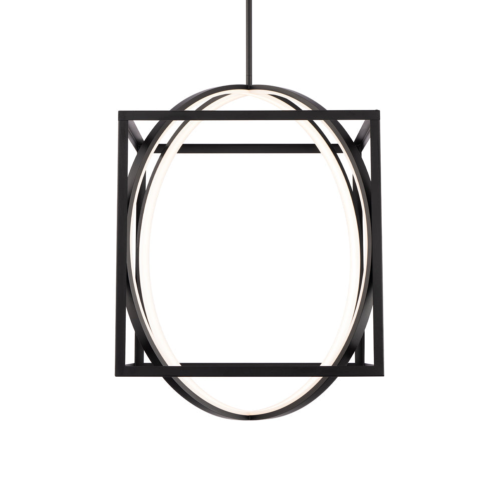 Classic openwork metal sets out on a design adventure to illuminate a modern or transitional space with energy-efficient, dimmable lighting. The Geometrix LED Pendant Light from dweLED features black finish aluminum framing joining a squared unit with overlapping ovals, as silicon diffuser strips distribute light evenly and highlight the fixture’s geometric shaping. Omnidirectional lighting adds a superb touch for both aesthetics and functionality.