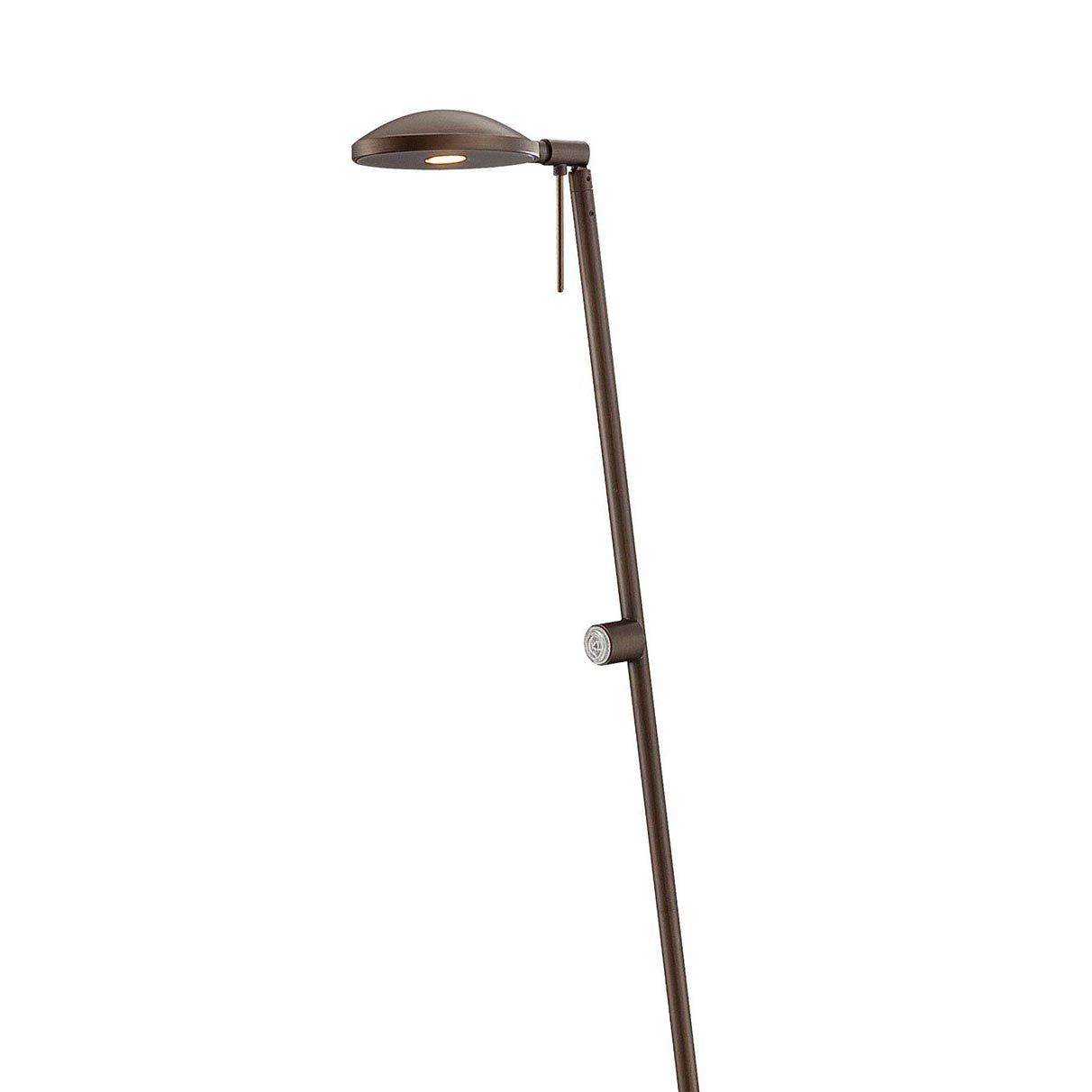 A sleek rounded shade and slim post emphasize the contemporary design credentials of the George's Reading Room P4334 LED Pharmacy Floor Lamp from George Kovacs.