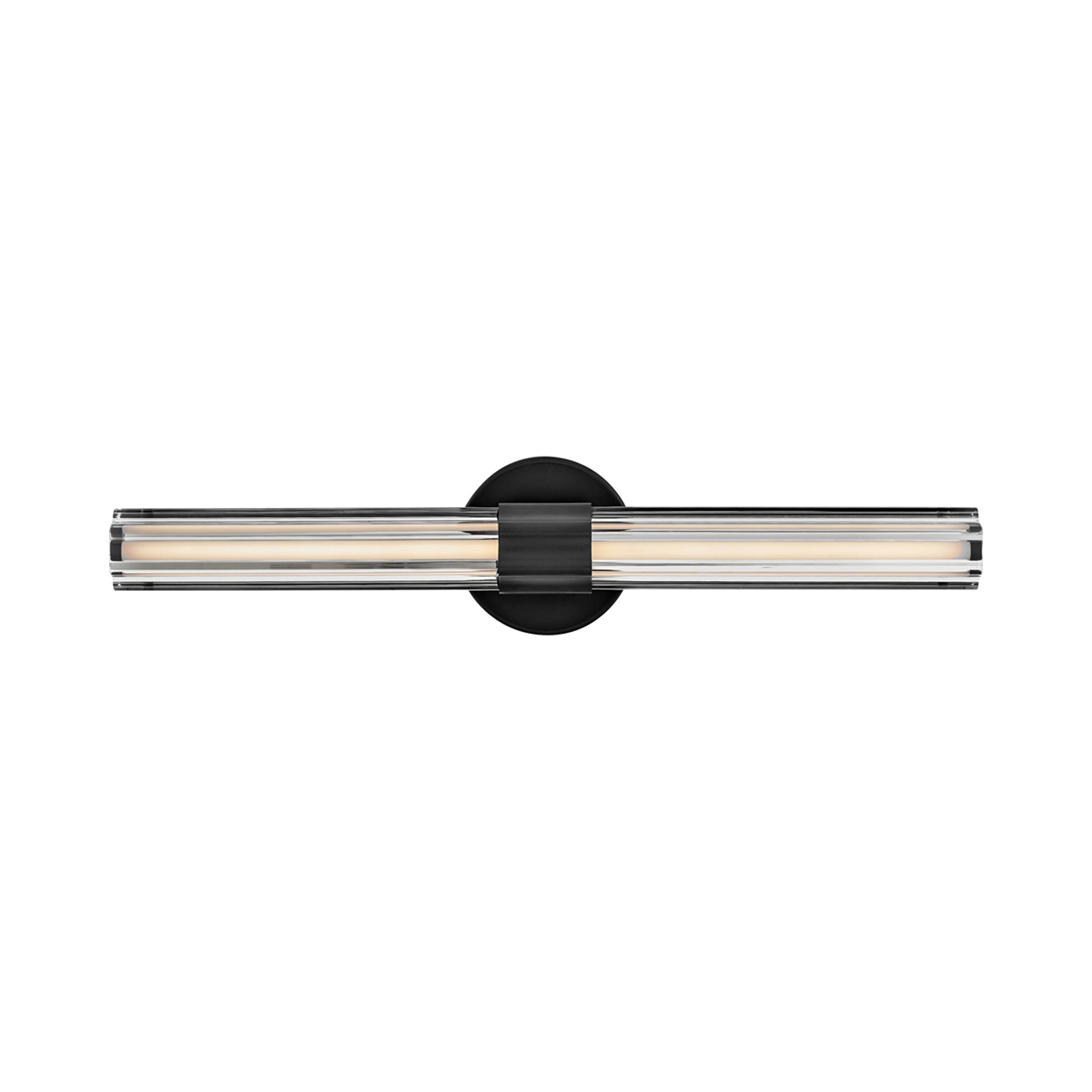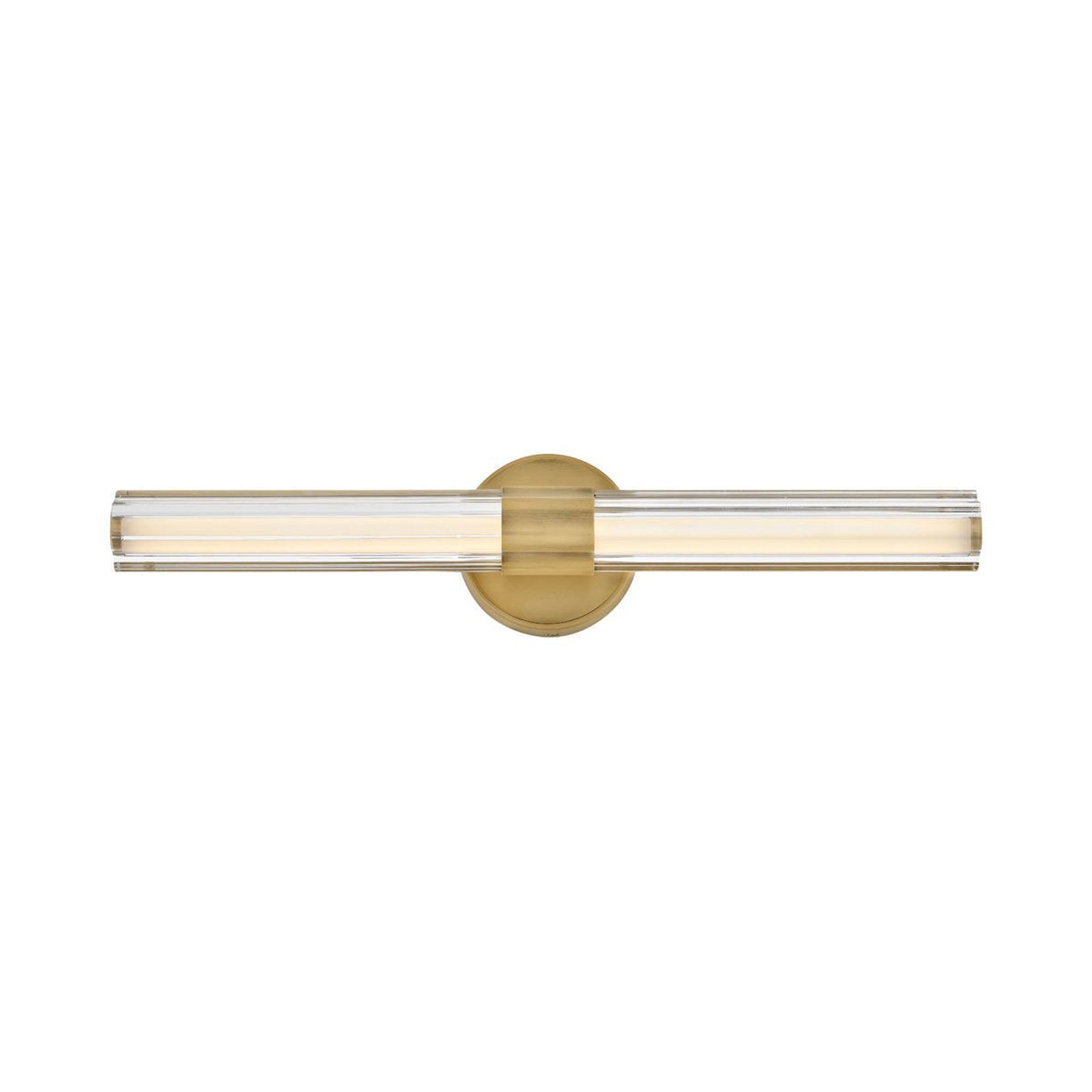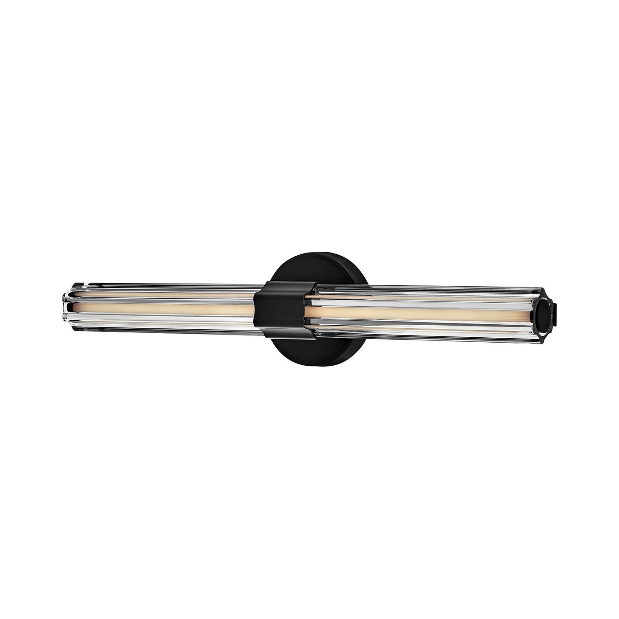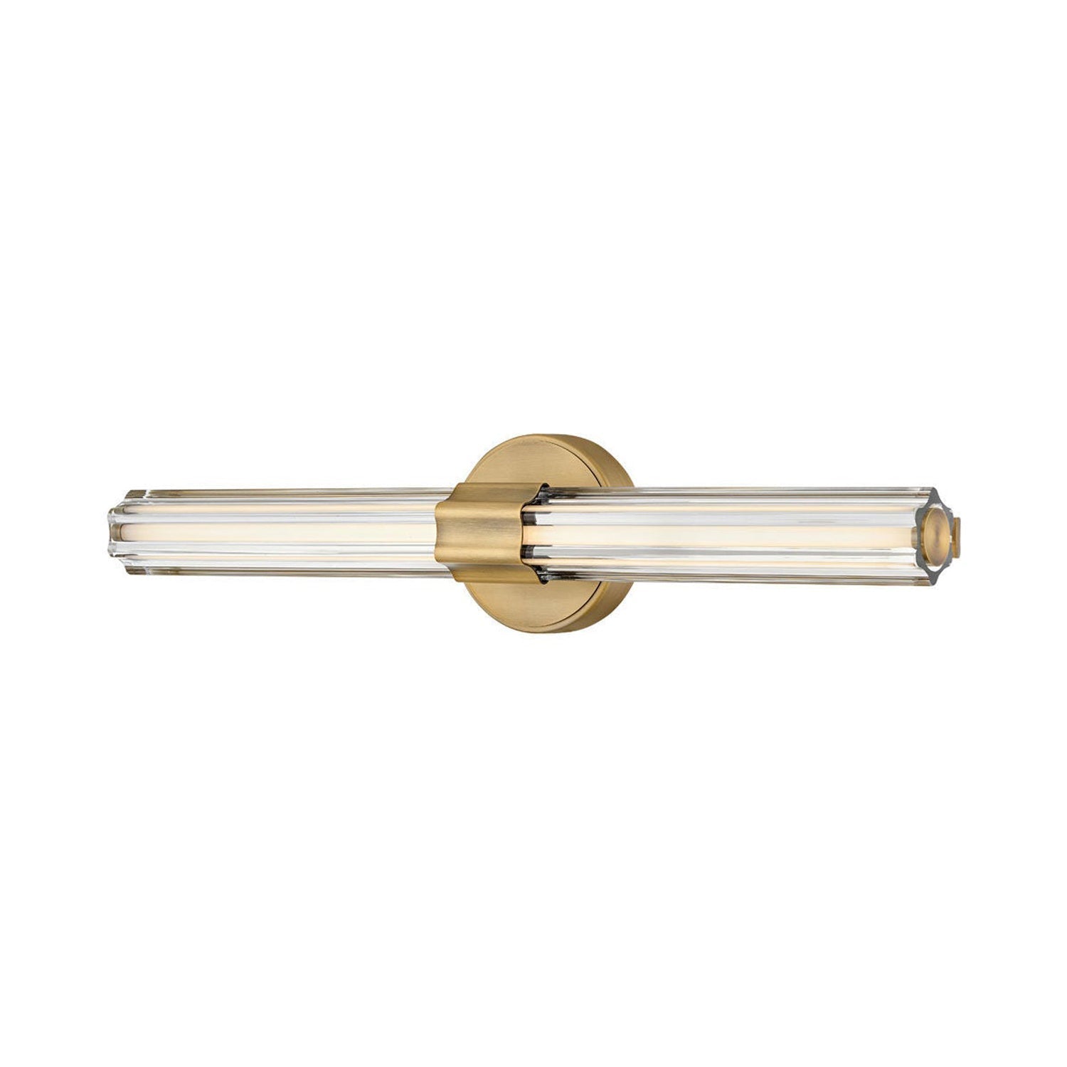 Faceting and symmetry introduce a fashion-forward look with retro style as the Georgette LED Bath Vanity Light from Hinkley illuminates a bath vanity with radiant lighting. This energy-efficient vanity light features an iconic merger of metal framing and a glass shade made of clear fluted crystal.