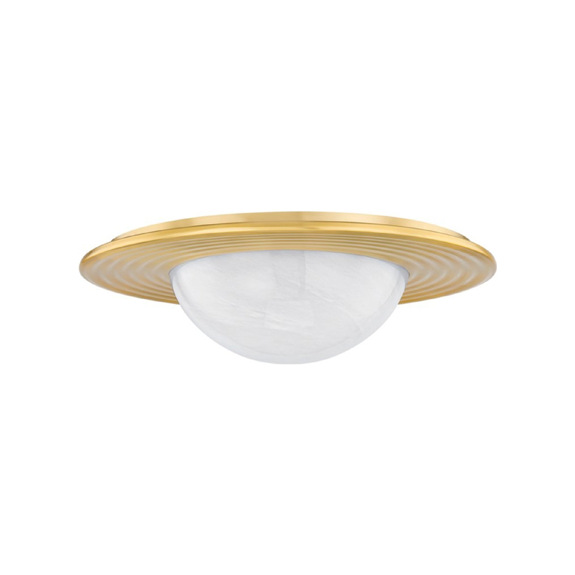 Creative artistry adopts a simple design with elegant results, creating a commanding look perfect for a dining space, living area, or foyer. A large cloud glass orb centers itself in the Geraldton LED Flush Mount Ceiling Light from Hudson Valley Lighting, offering a pearl-like gem influence. With a stacked halo metal ring clinging to the ceiling, this energy-efficient fixture emulates a space-like theme with the traditional glam of deco.
