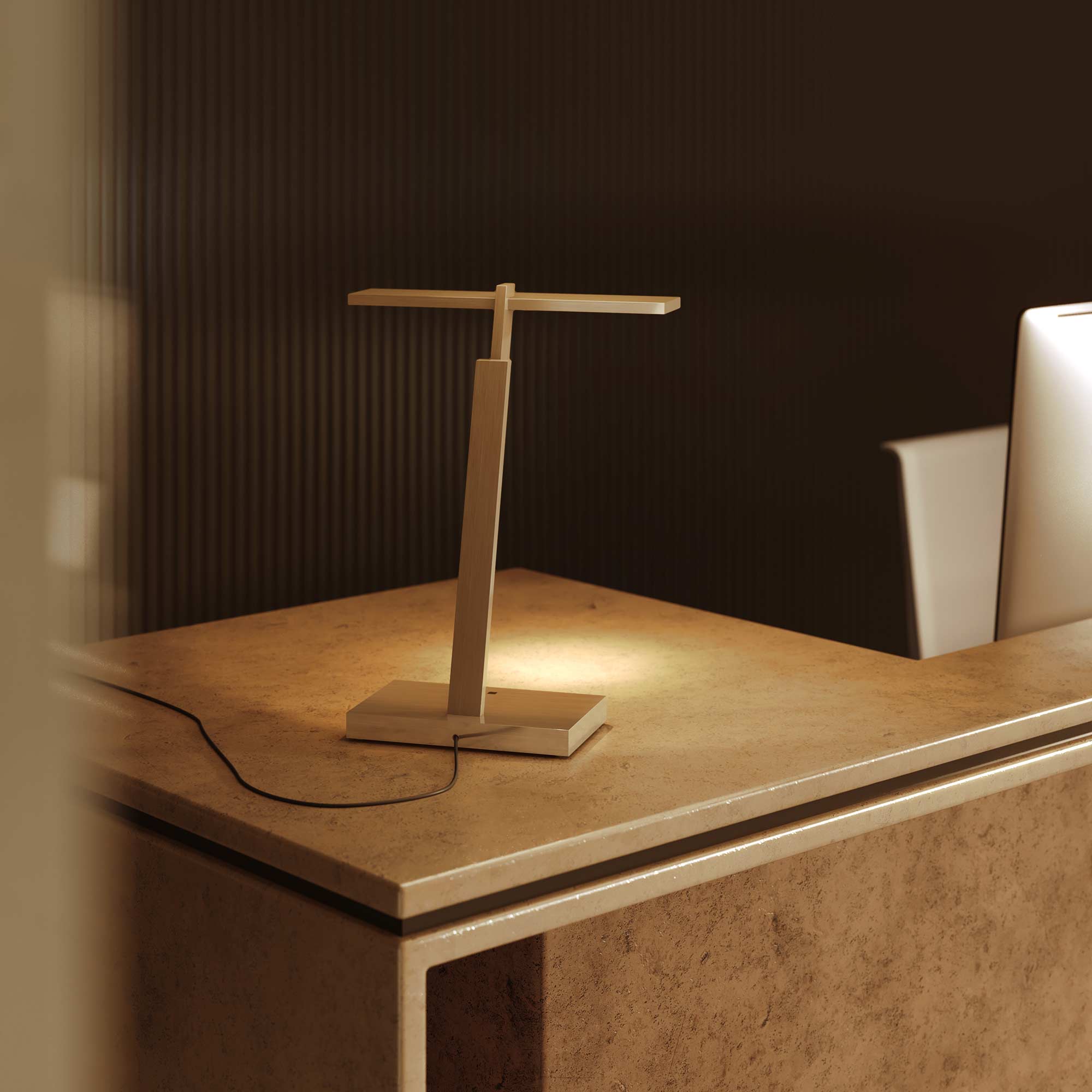 A dashing easel-inspired framework transcends the Gerit LED Table Lamp from Astro Lighting into a modern sculptural statement piece. Dress up workstations and desks with this energy-efficient table lamp, creating an inspired and creative atmosphere.