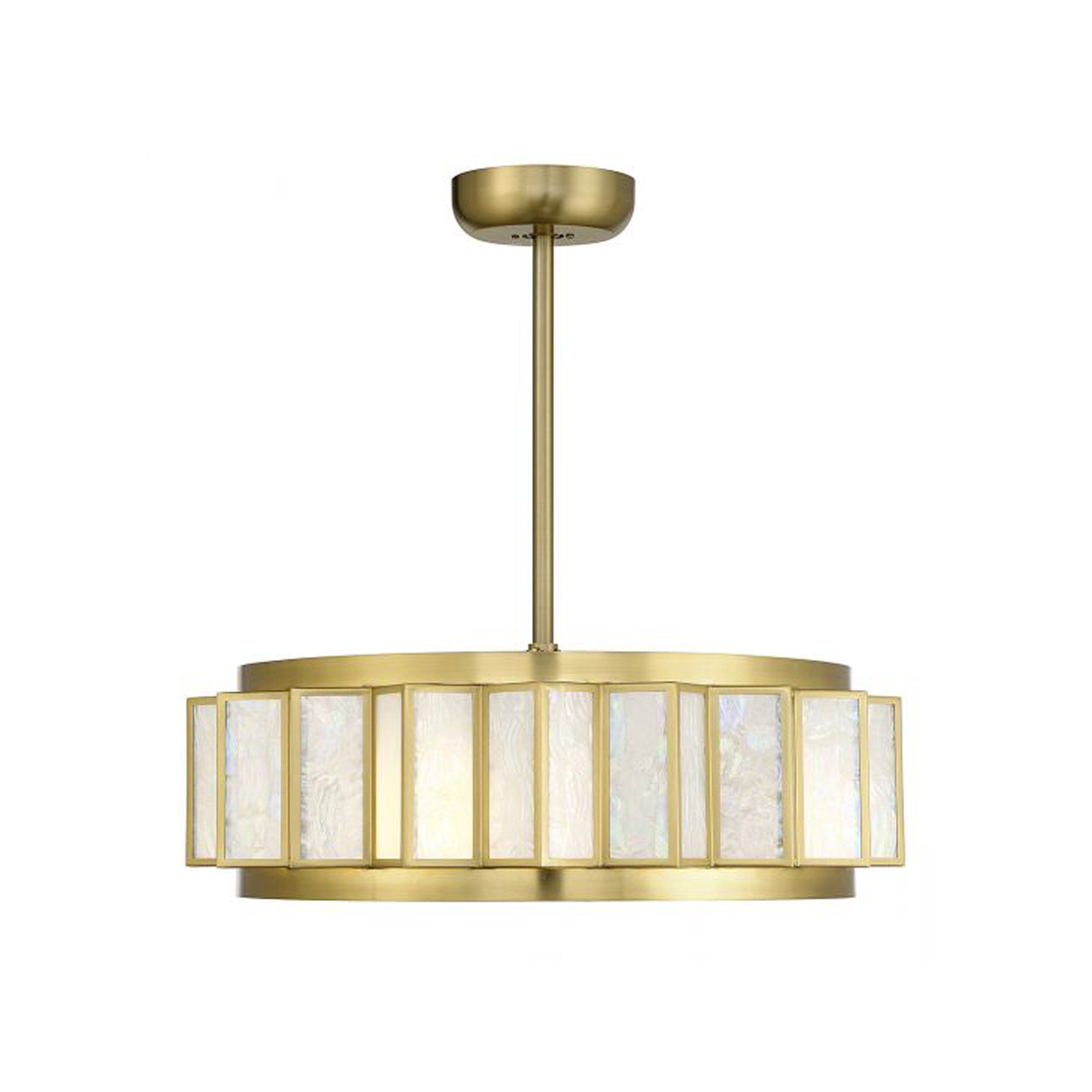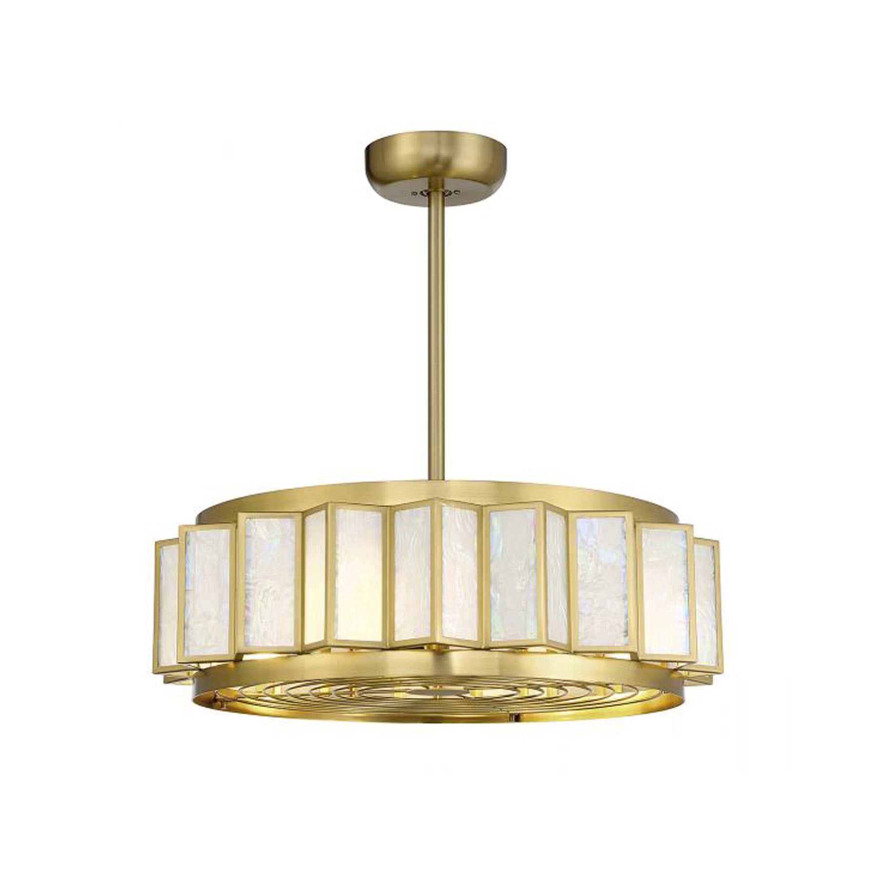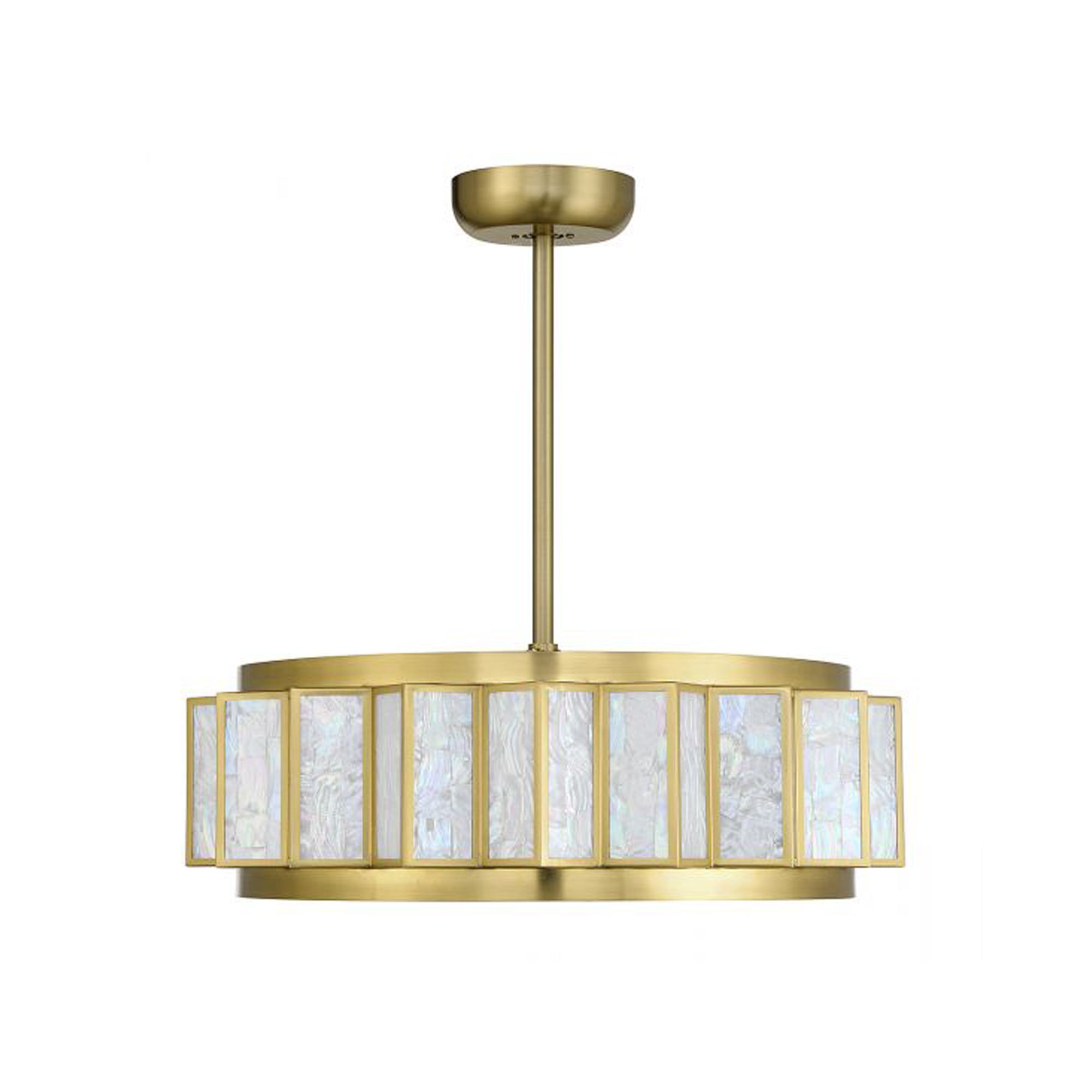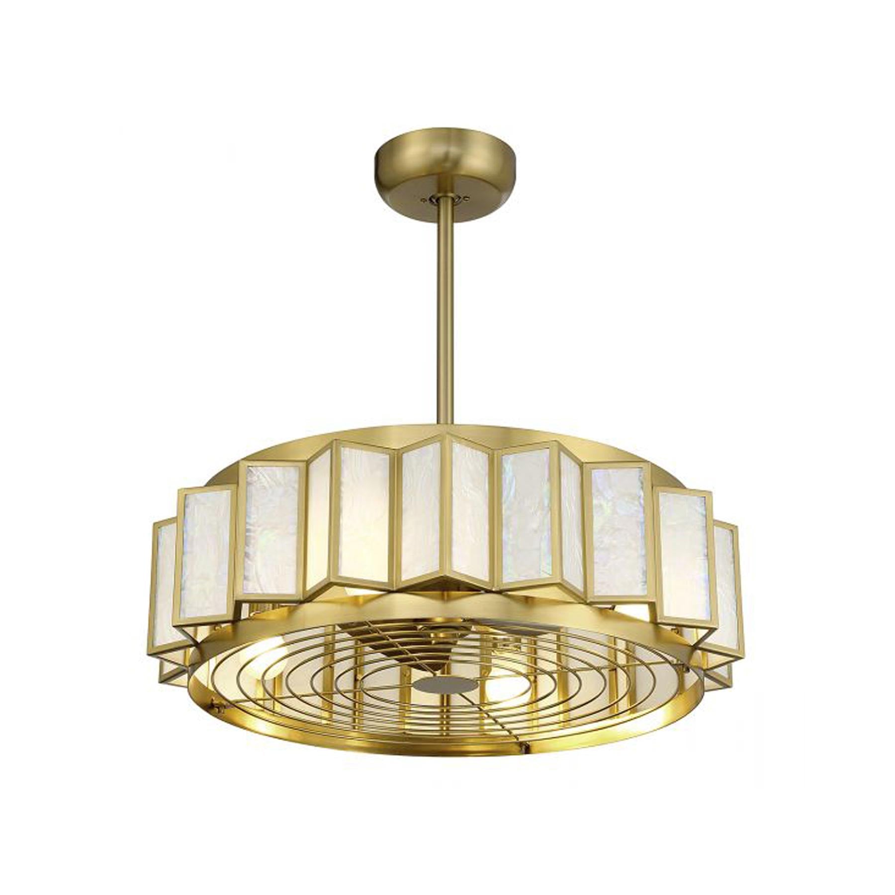 The Gideon LED Fan D'Lier from Savoy House reinvents the ceiling fan into a work of art, offering an engaging and timeless beauty ideal for all spaces. Cool off with circulating blades built into the underside of this exquisite fixture featuring coastal-inspired Capiz shell panels and lush warm brass metal framing. Energy-efficient lighting adds a functional bonus.
