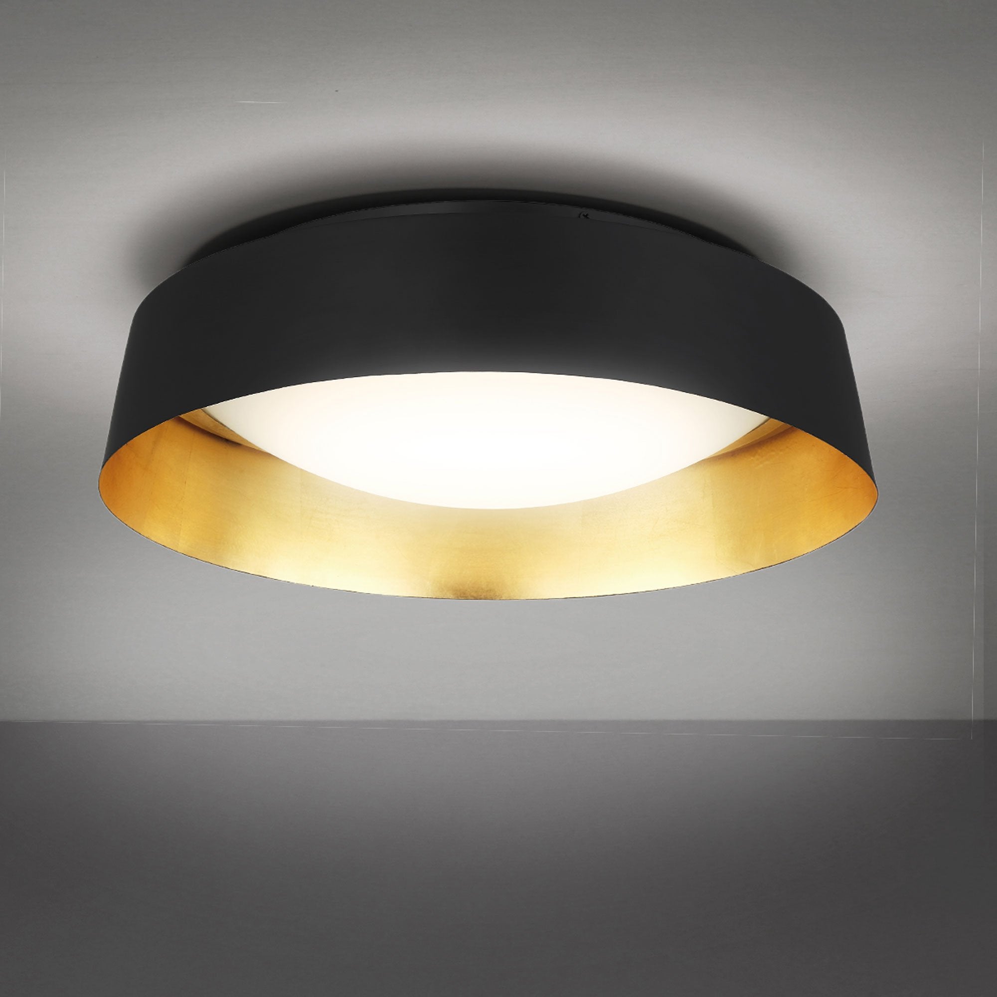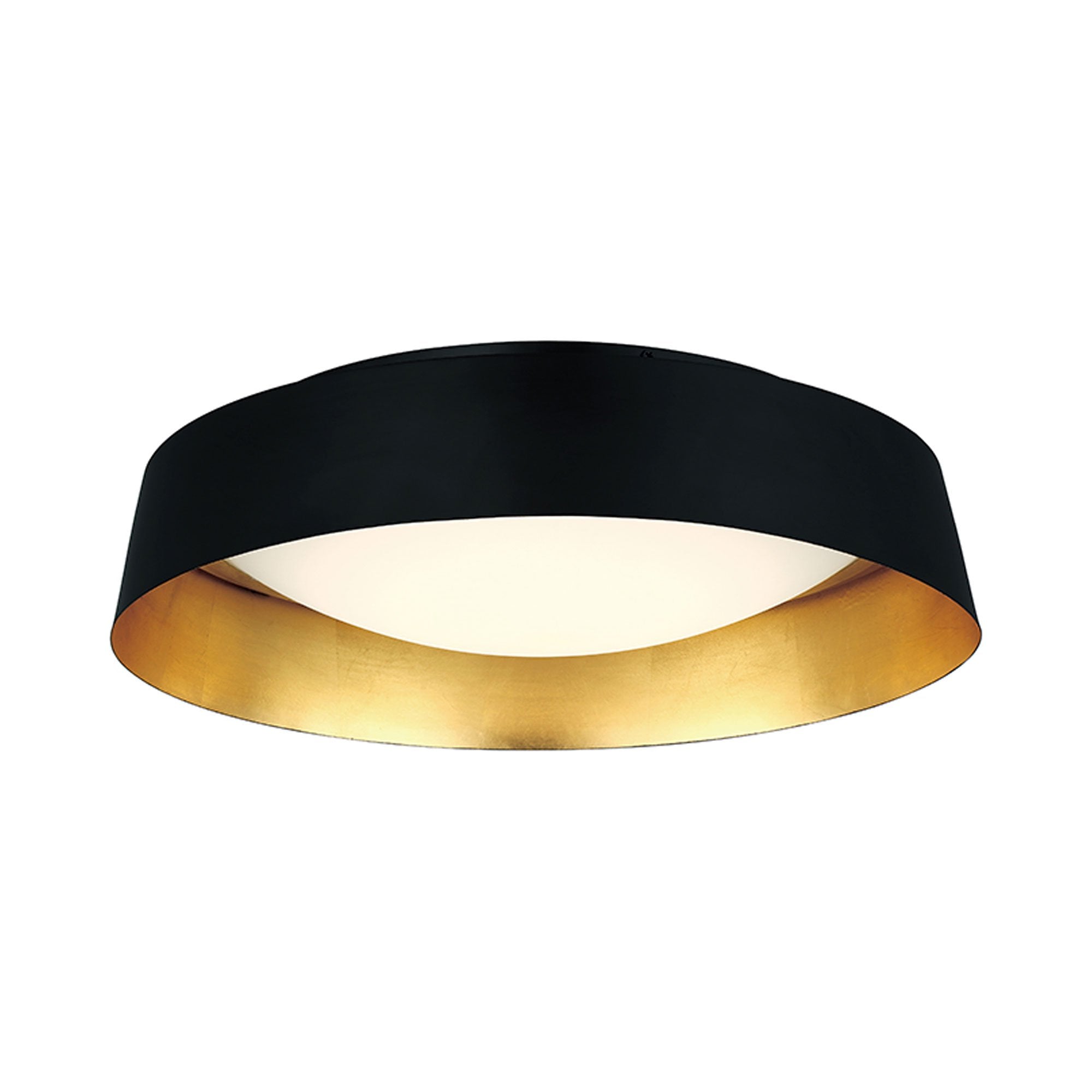 With upscale sophistication tempered by a minimalist look and hints of Mid-Century Modern style, the energy-efficient GILT LED Flush Mount Ceiling Light from Modern Forms blends beautiful tones of black with a gold interior in a tapered circular frame.