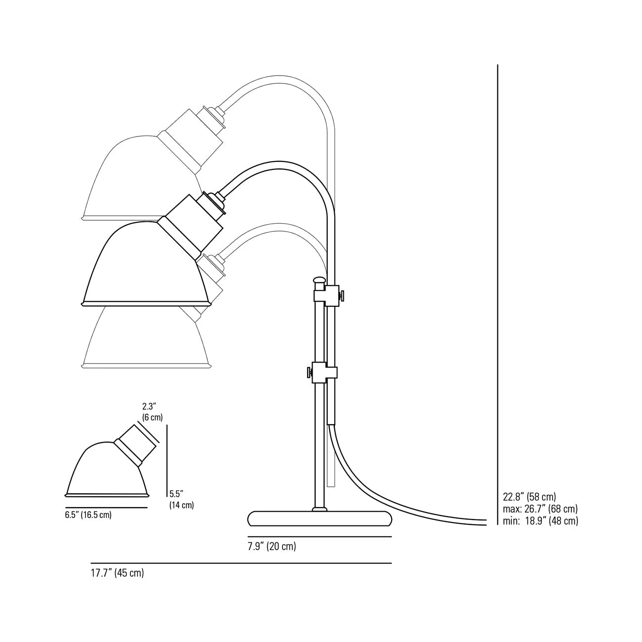 An articulated arm adds functionality to the Ginger Table Lamp from Original BTC, an intriguing source of light perfect for both home and home office settings. Raise or lower the positioning of its moveable rounded shade to suit custom needs, and embrace a traditional motif dating back to storied European trading docks.