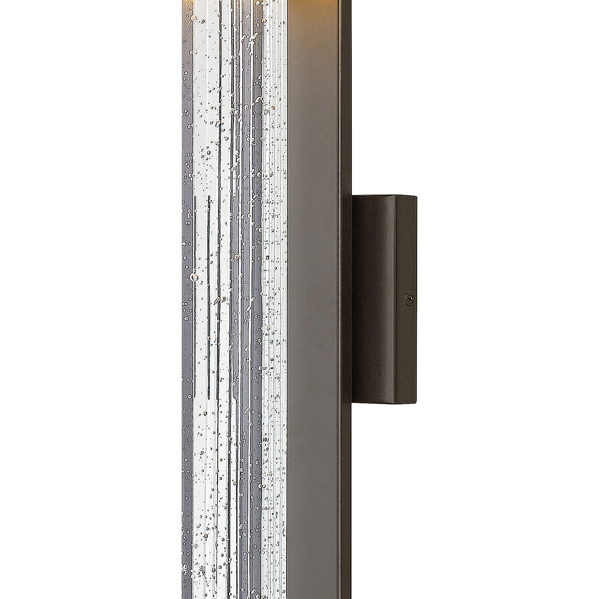 Glacier’s impressive form merges industrial and contemporary design elements into a breath-taking silhouette. A substantial block of clear seedy glass with etched grooves brilliantly channels light from the high-performance LED, which is held in suspension by the powder-coated aluminum frame.