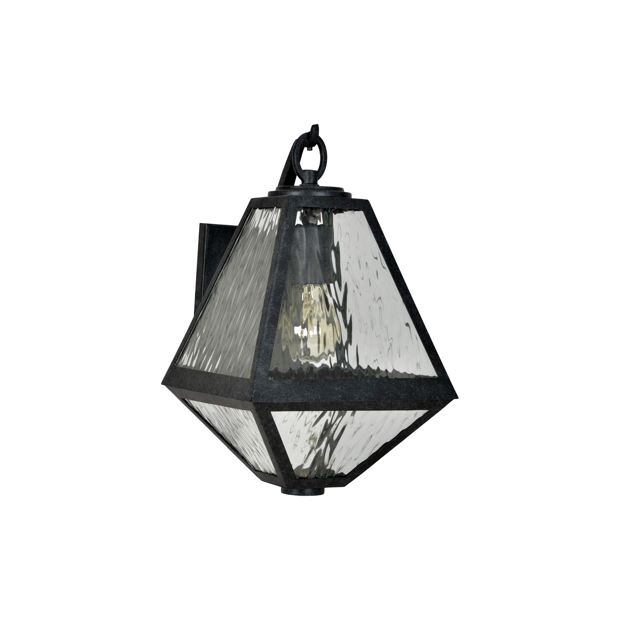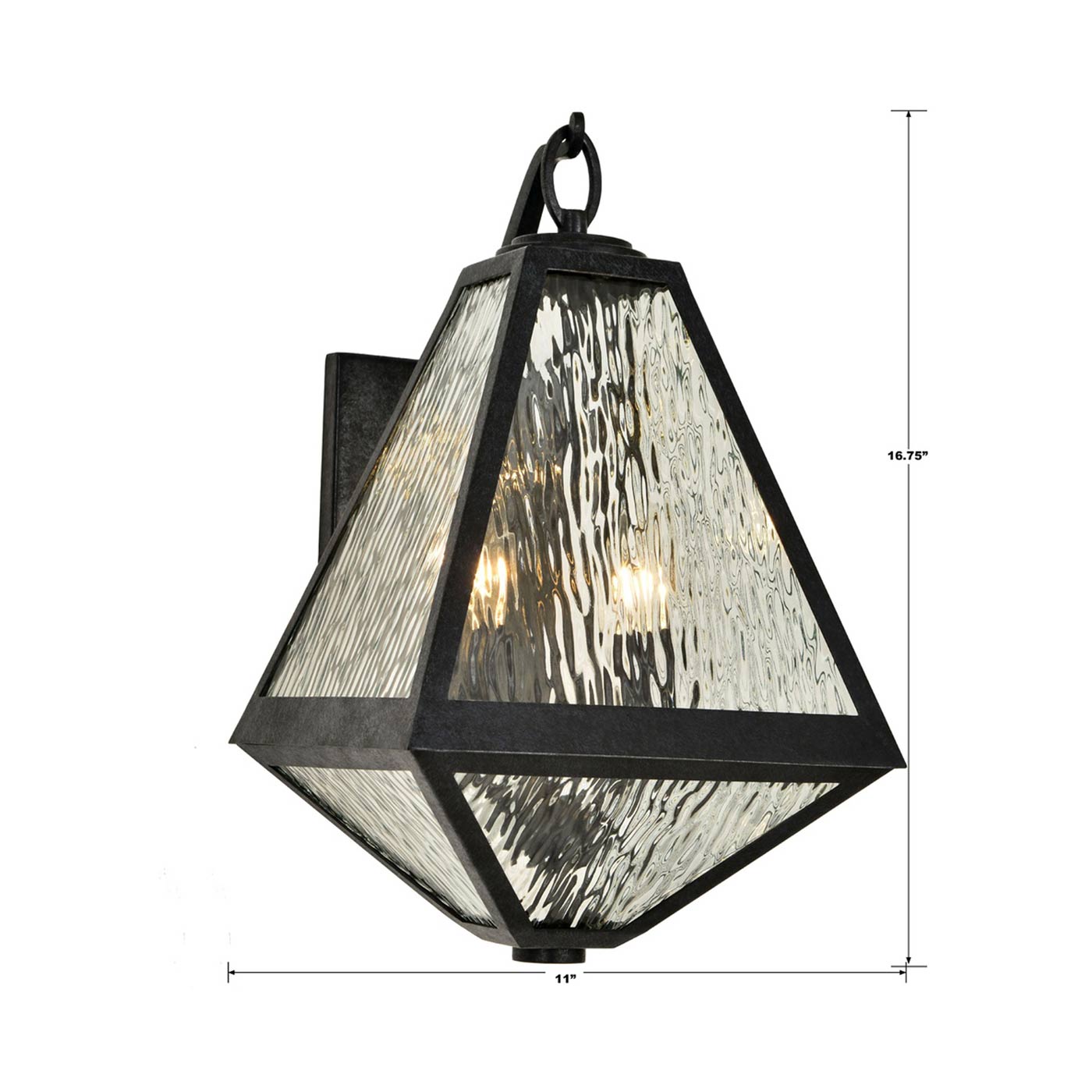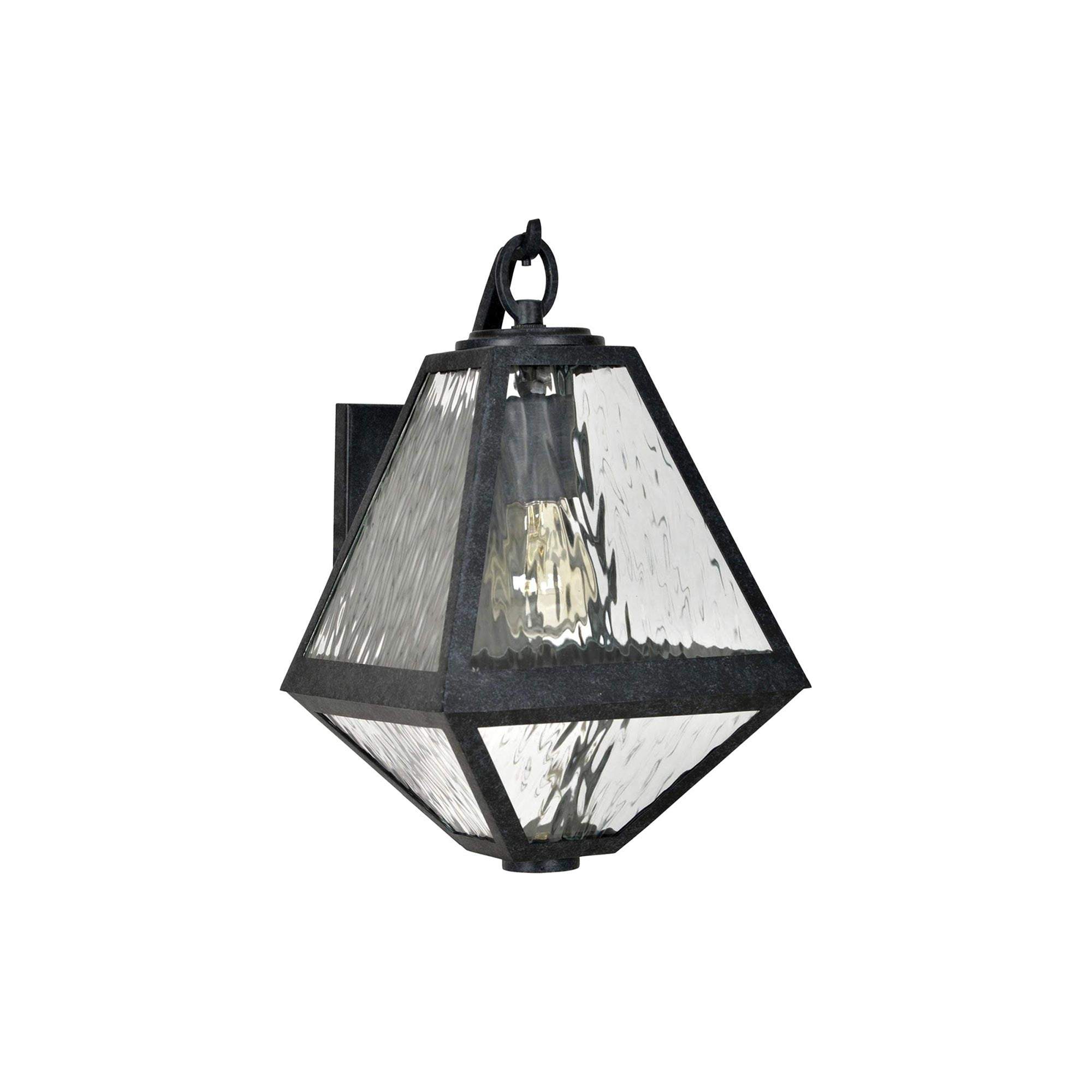 A quick fix for conventional exterior lighting comes in a dazzling design, as the Glacier Outdoor Wall Light from Crystorama delivers true sophistication. Porches, patios, and outbuildings welcome this tasteful fixture with a blend of village and nautical design styles. Bold black metal framing adds a geometric feel, with glass panels embellishing the mix.