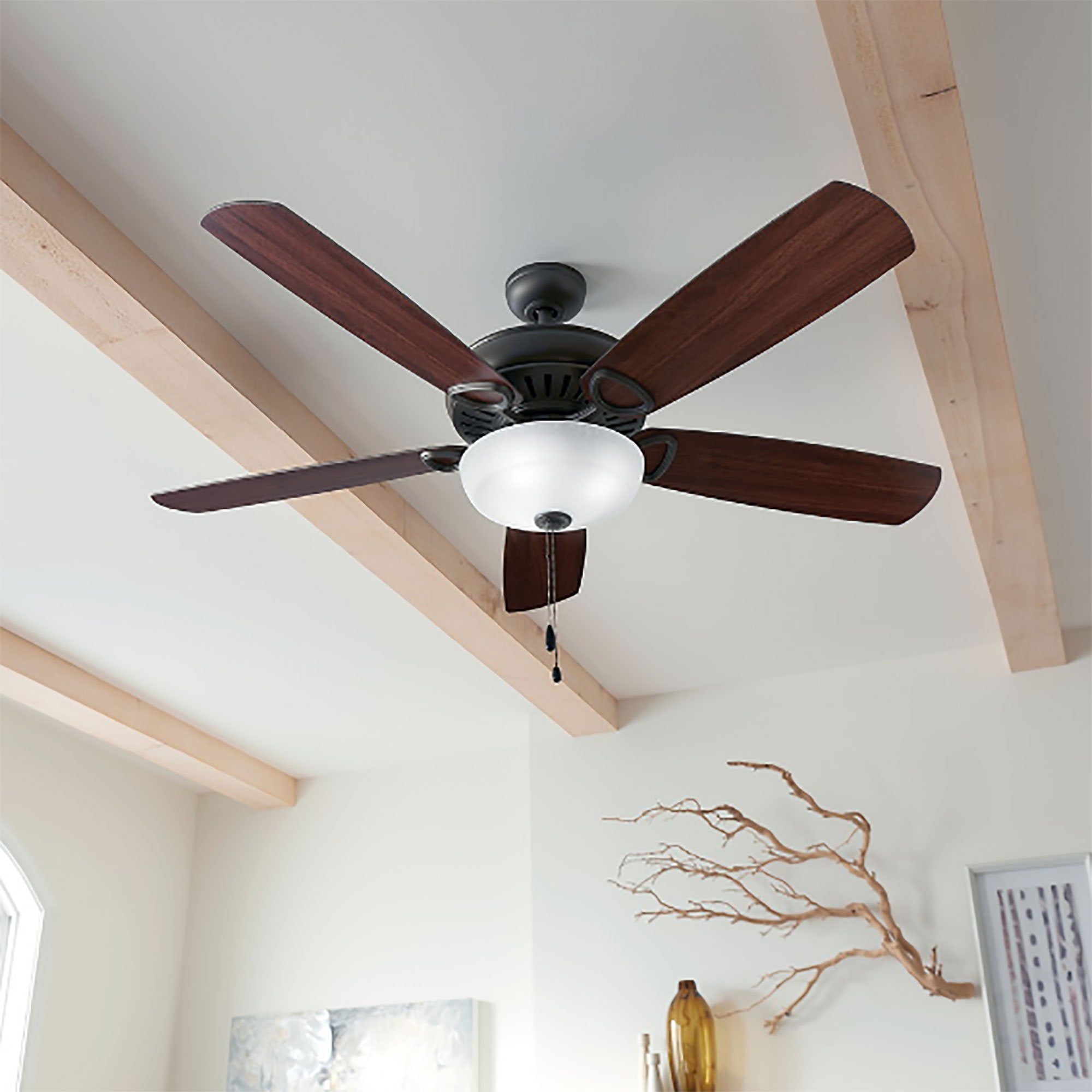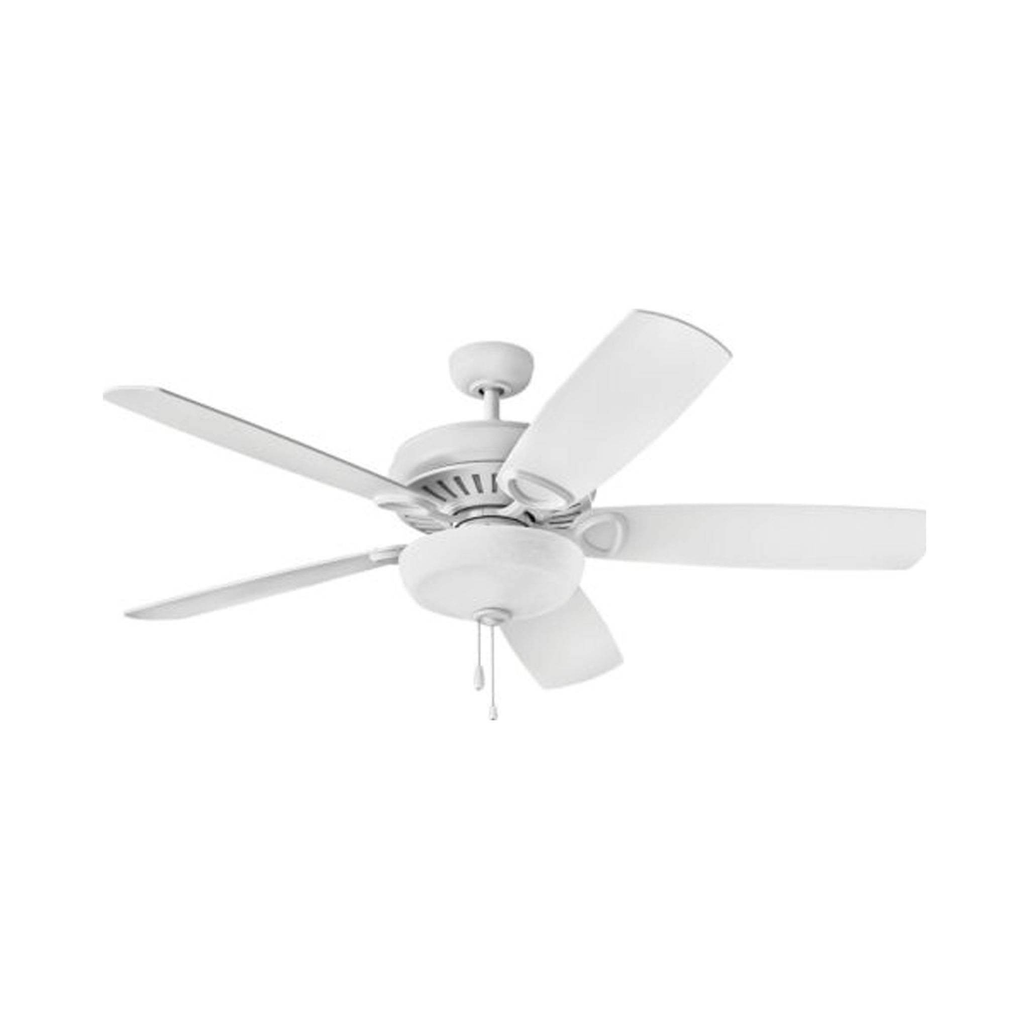 The Gladiator LED Ceiling Fan from Hinkley is the perfect addition to your bedroom or home office. It boasts a seamless transitional design in a range of finish choices and features five blades for excellent air movement and a light kit for energy efficient illumination.