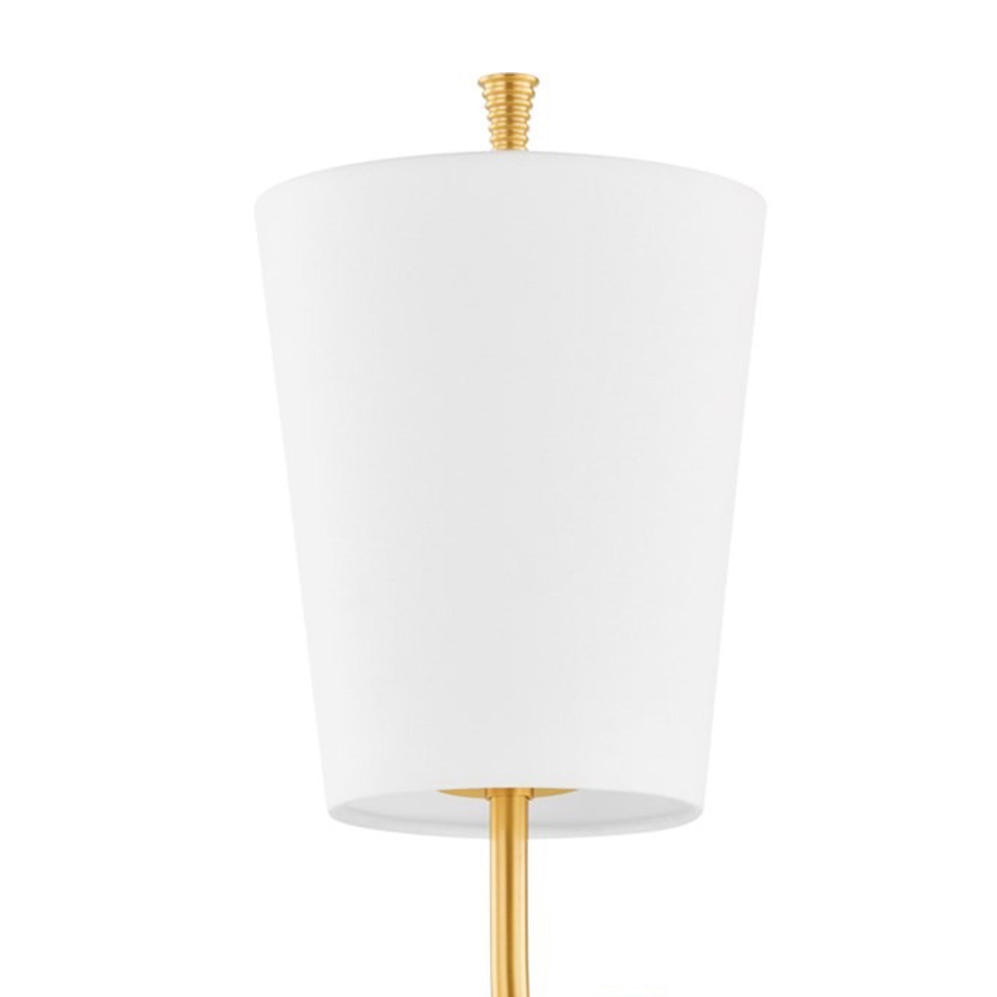 An elegant look with creative styling embellishes any space as the Gladstone Wall Light from Hudson Valley Lighting delivers a perfect hybrid motif of old and new. Start with an inverted tapered shade fashioned of white linen, and continue to metal framing showing decadence as it creates space separation.