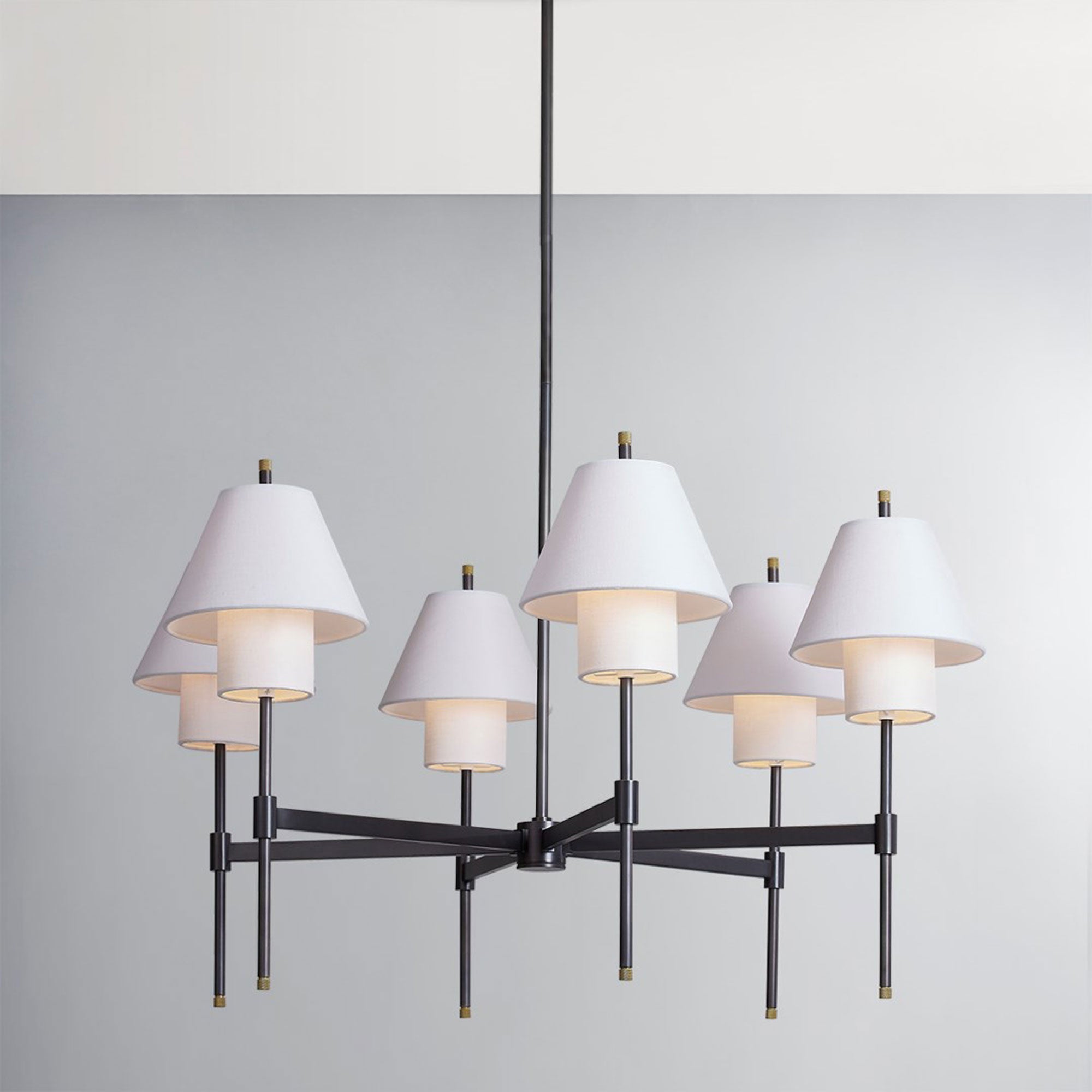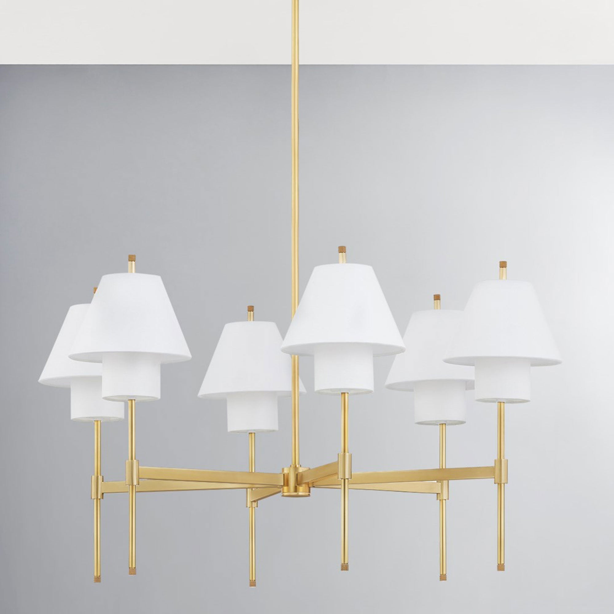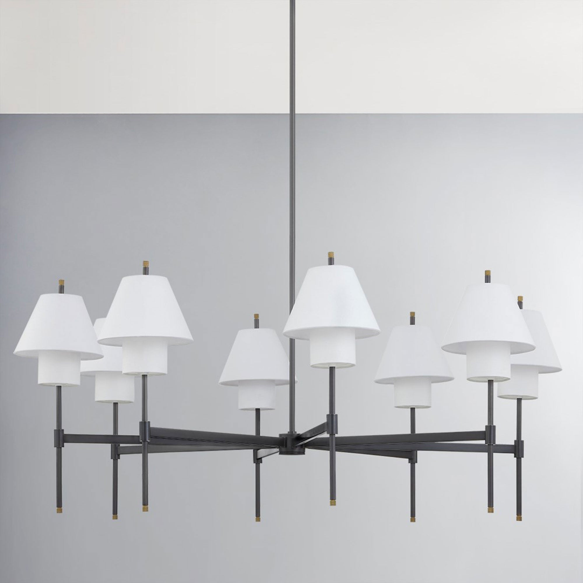 A showcase design template crafting eye-catching festivity in the Glenmoore Chandelier from Hudson Valley Lighting becomes a novelty in a modern space. Choose this creatively styled fixture blending custom finish metal framing with a fun spin on mushroom silhouetting shaping Belgian linen shades. This inspired fixture is part of an overall venture into updated Art Deco attitude.