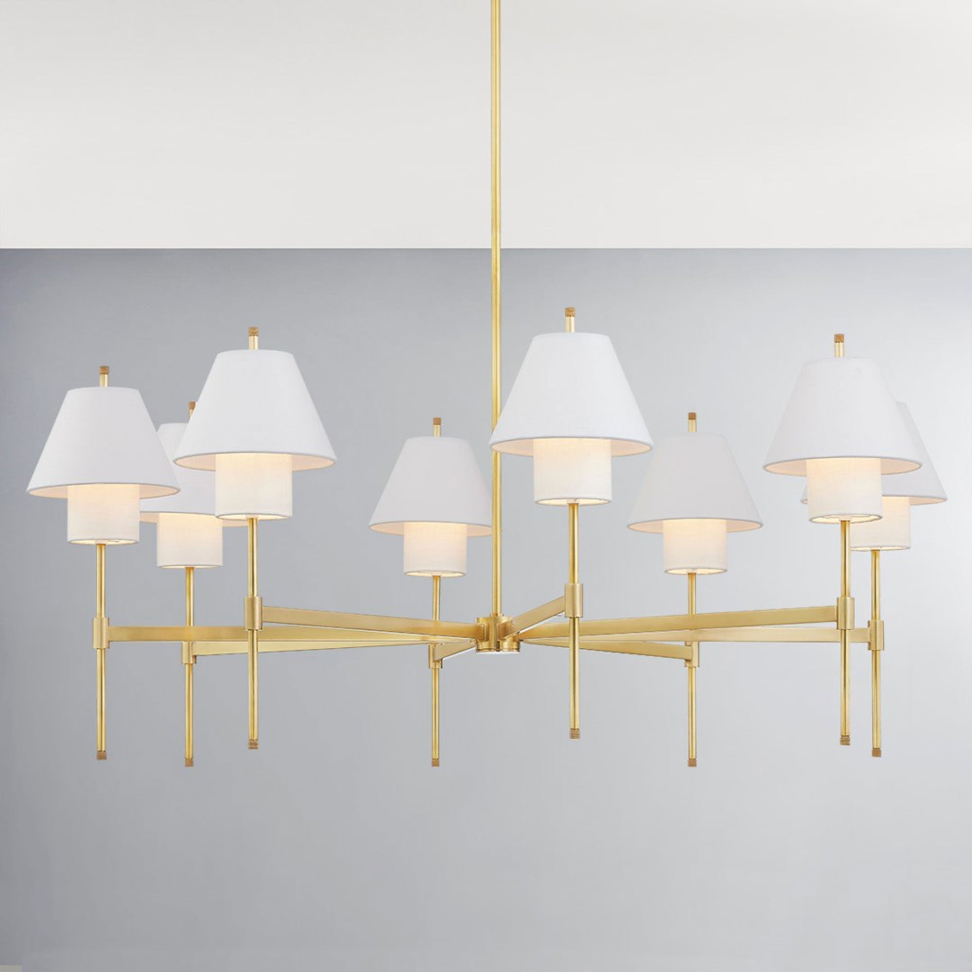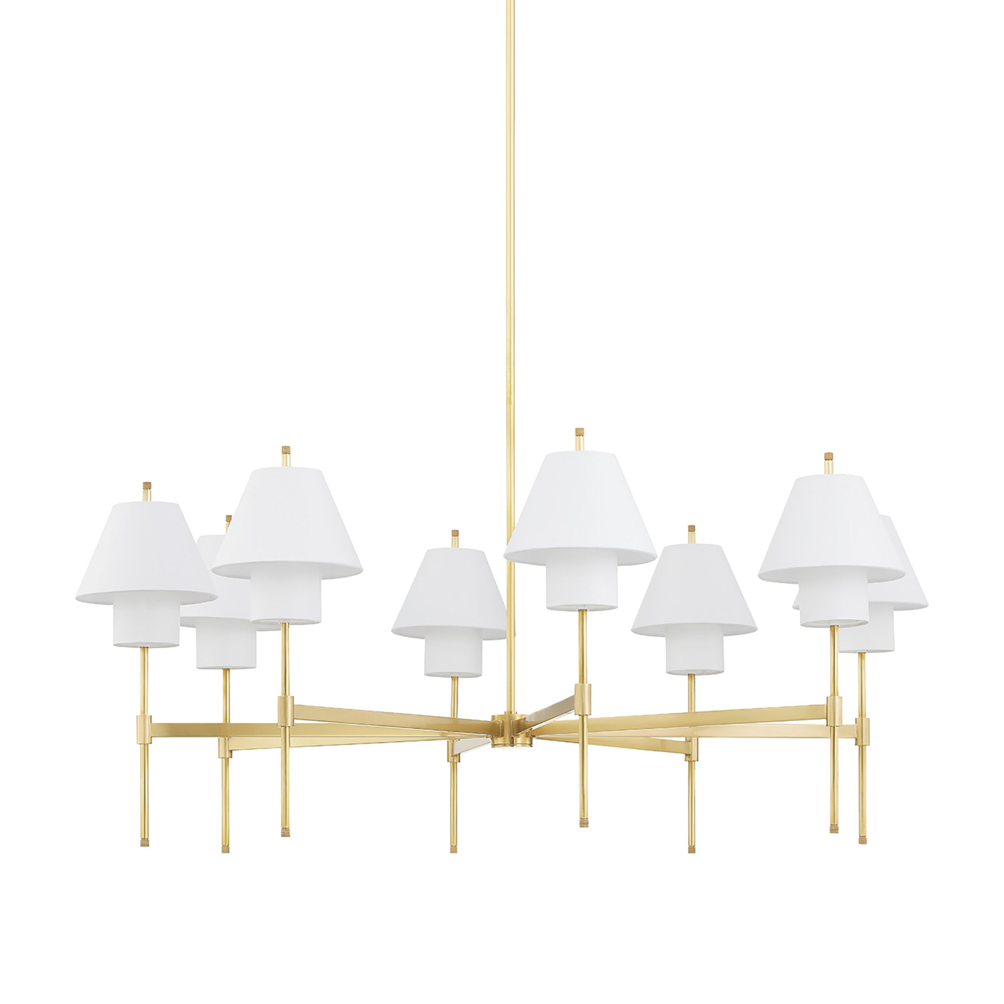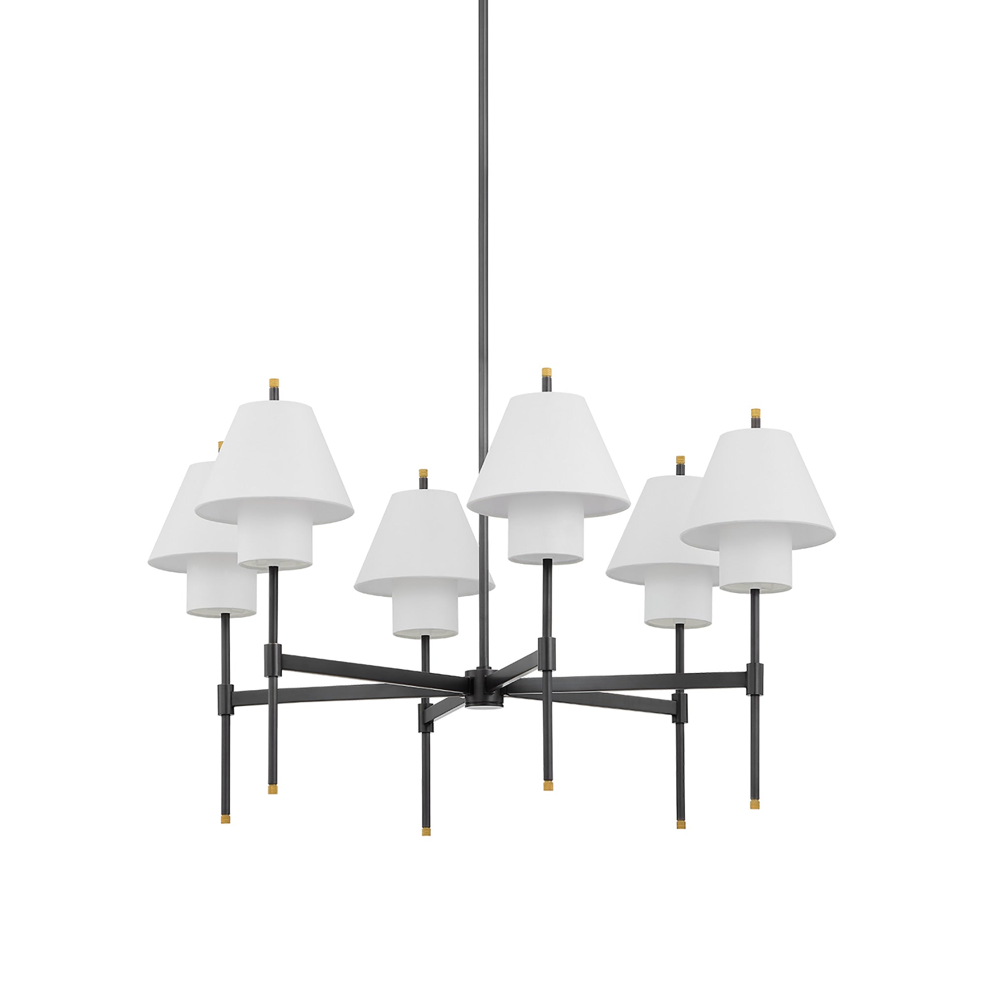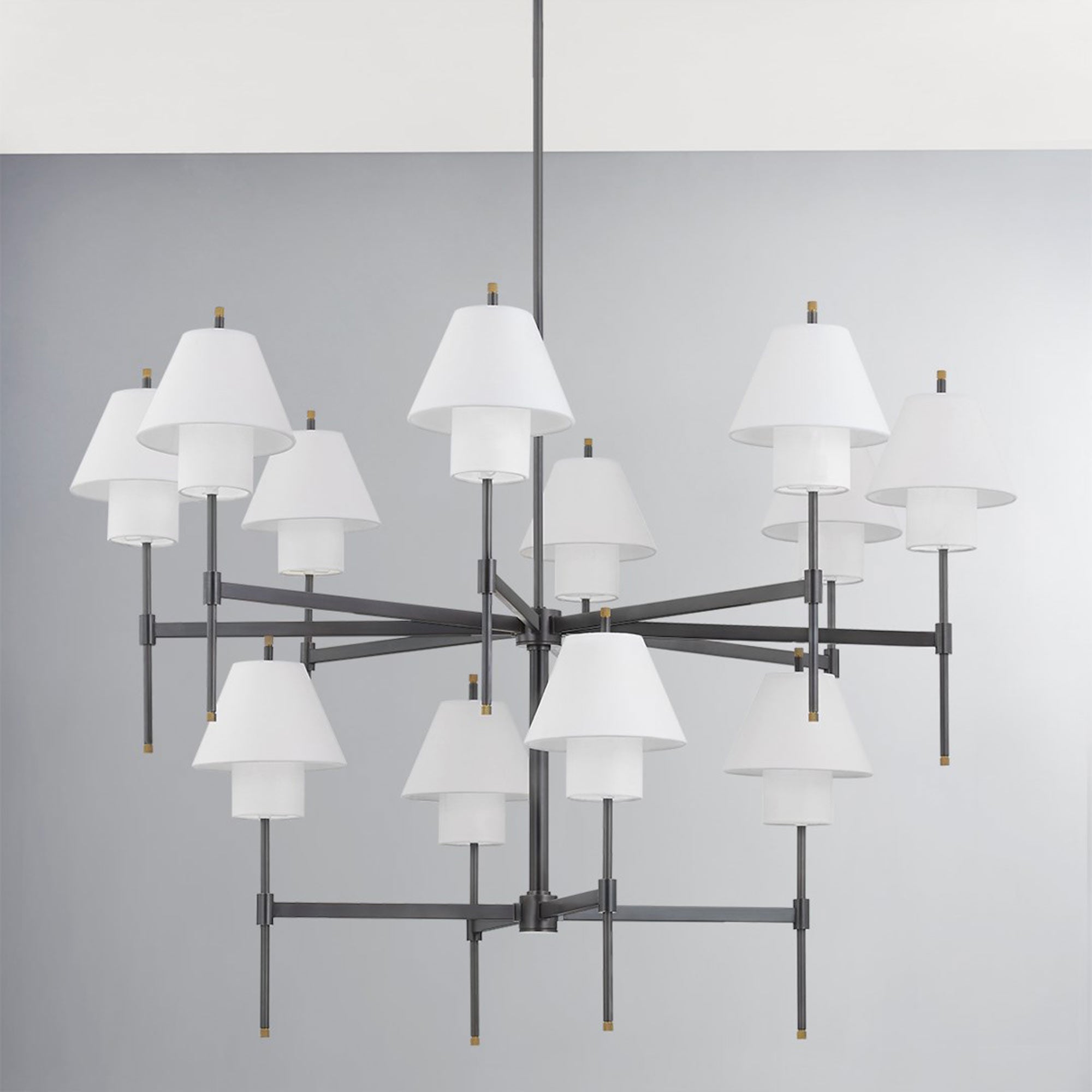 A showcase design template crafting eye-catching festivity in the Glenmoore Chandelier from Hudson Valley Lighting becomes a novelty in a modern space. Choose this creatively styled fixture blending custom finish metal framing with a fun spin on mushroom silhouetting shaping Belgian linen shades. This inspired fixture is part of an overall venture into updated Art Deco attitude.
