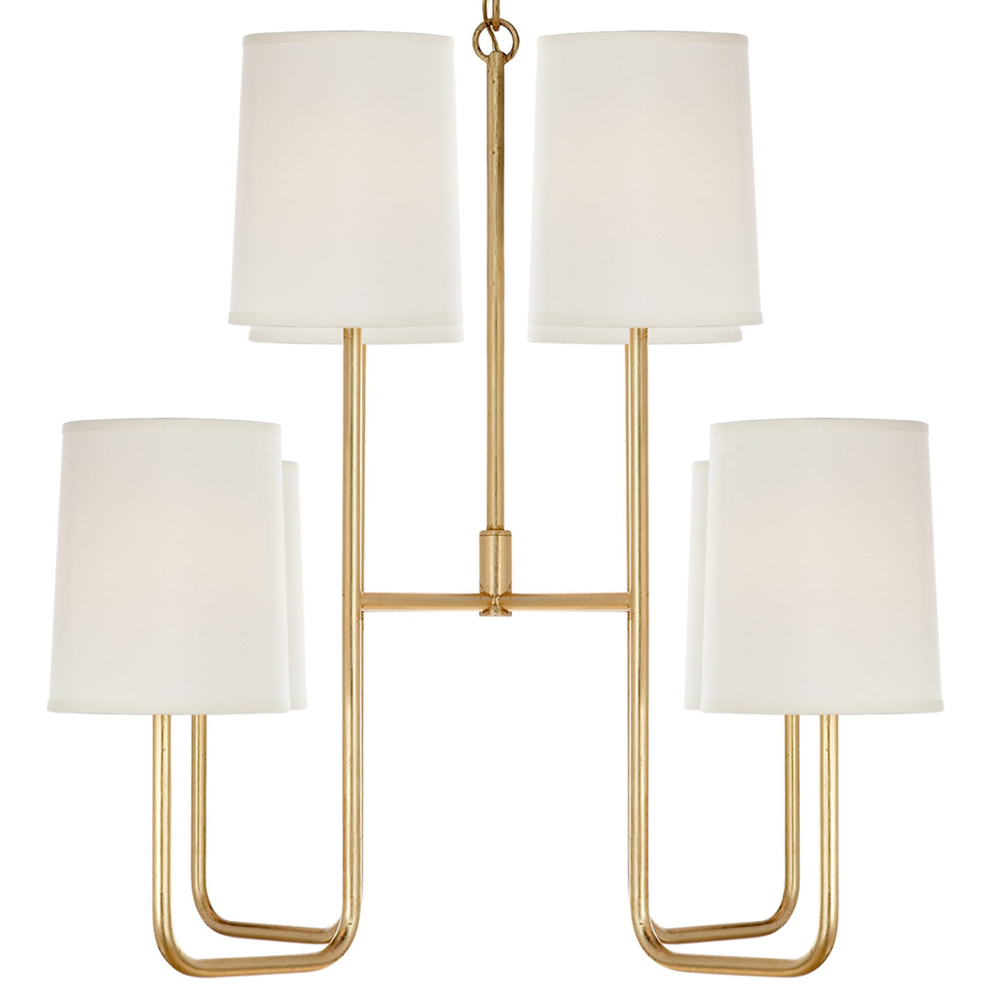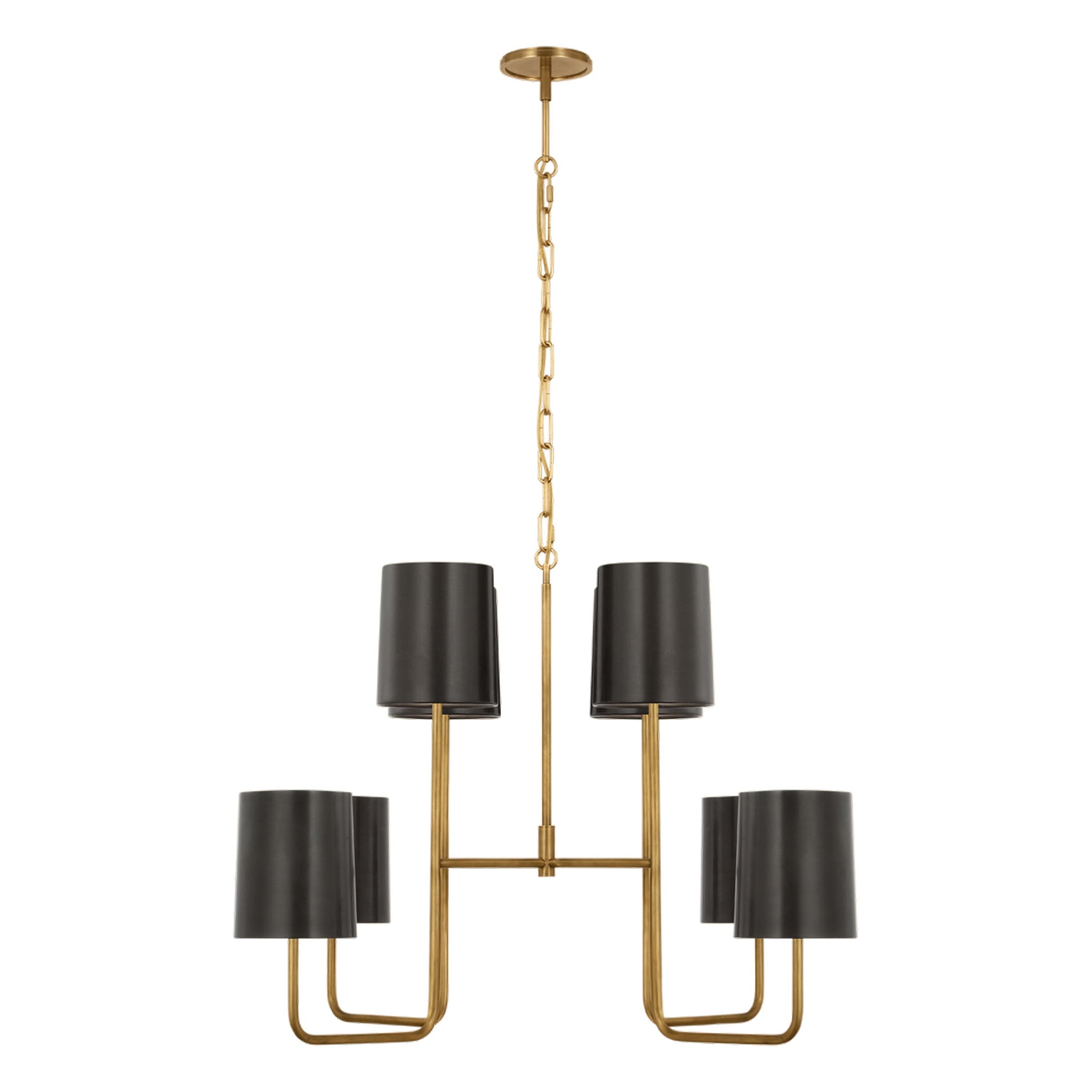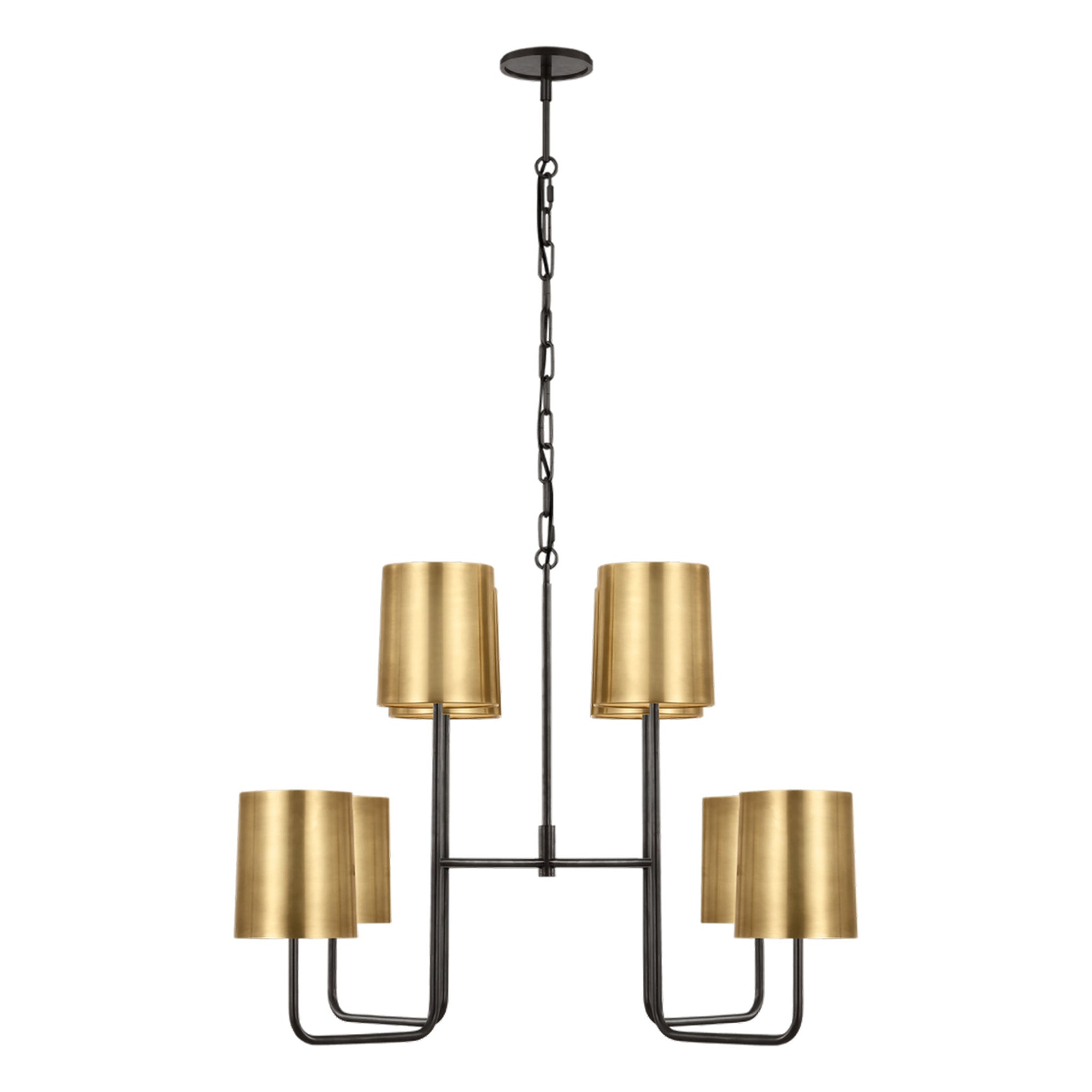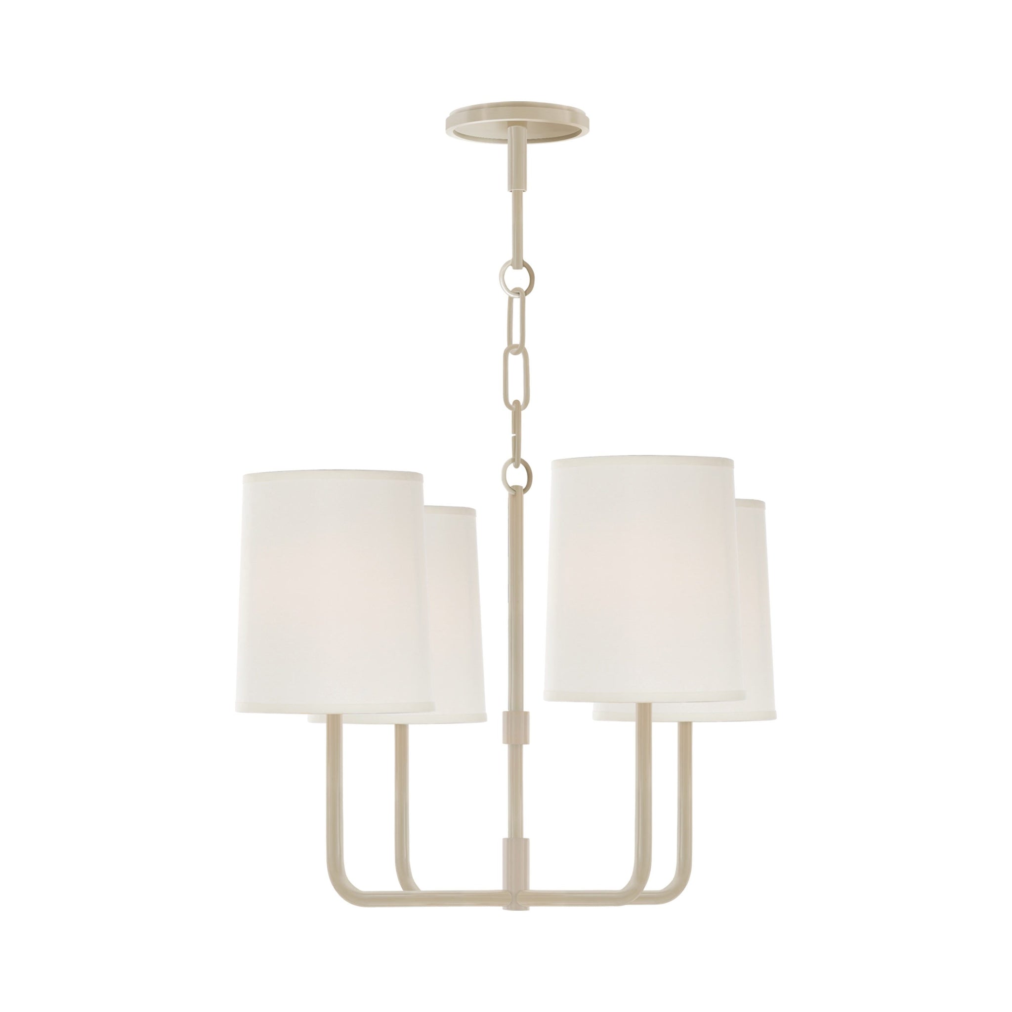 Four arms display a classic candelabra design on the Go Lightly Chandelier from Visual Comfort Signature. This piece pulls together small dining looks overlooking the cityscape.