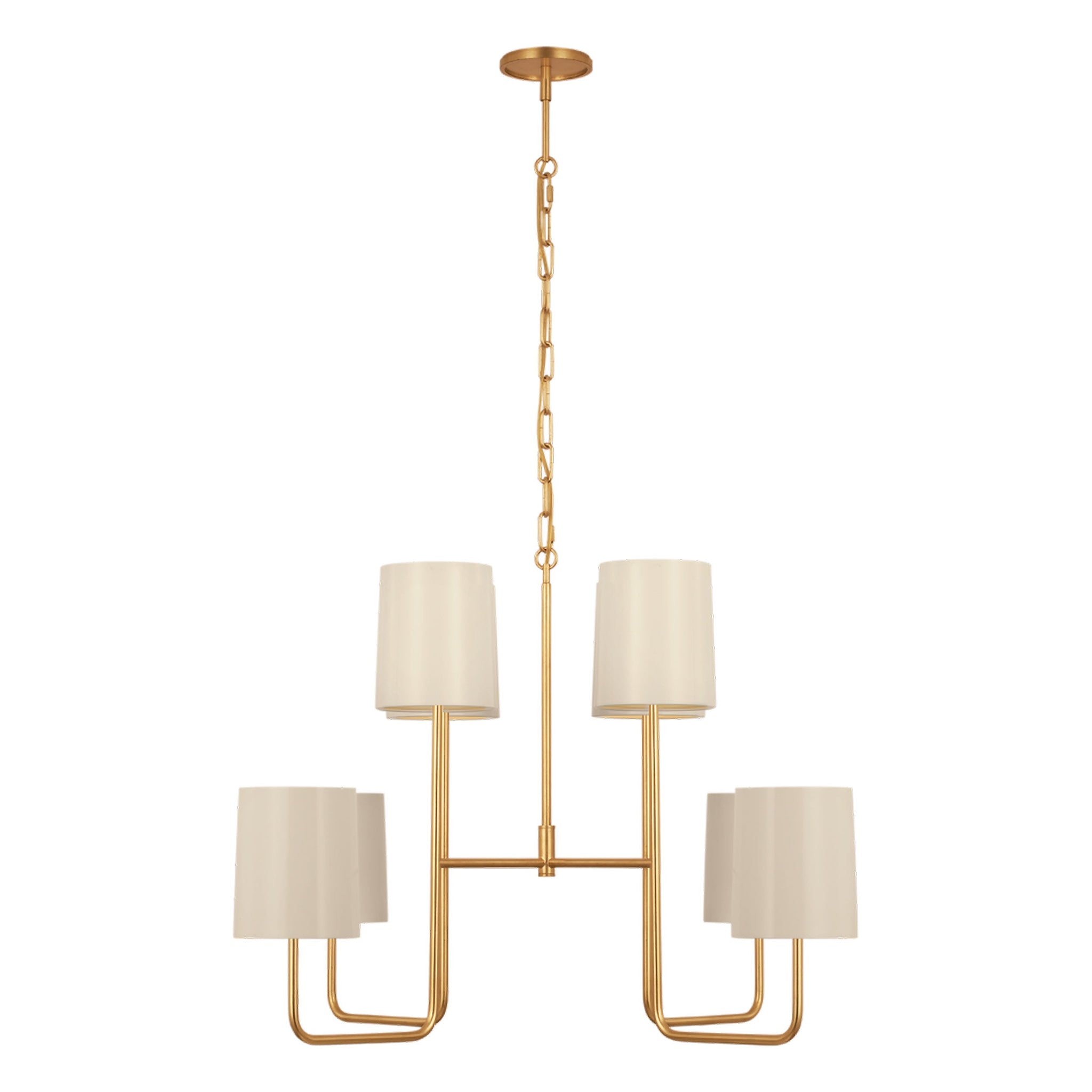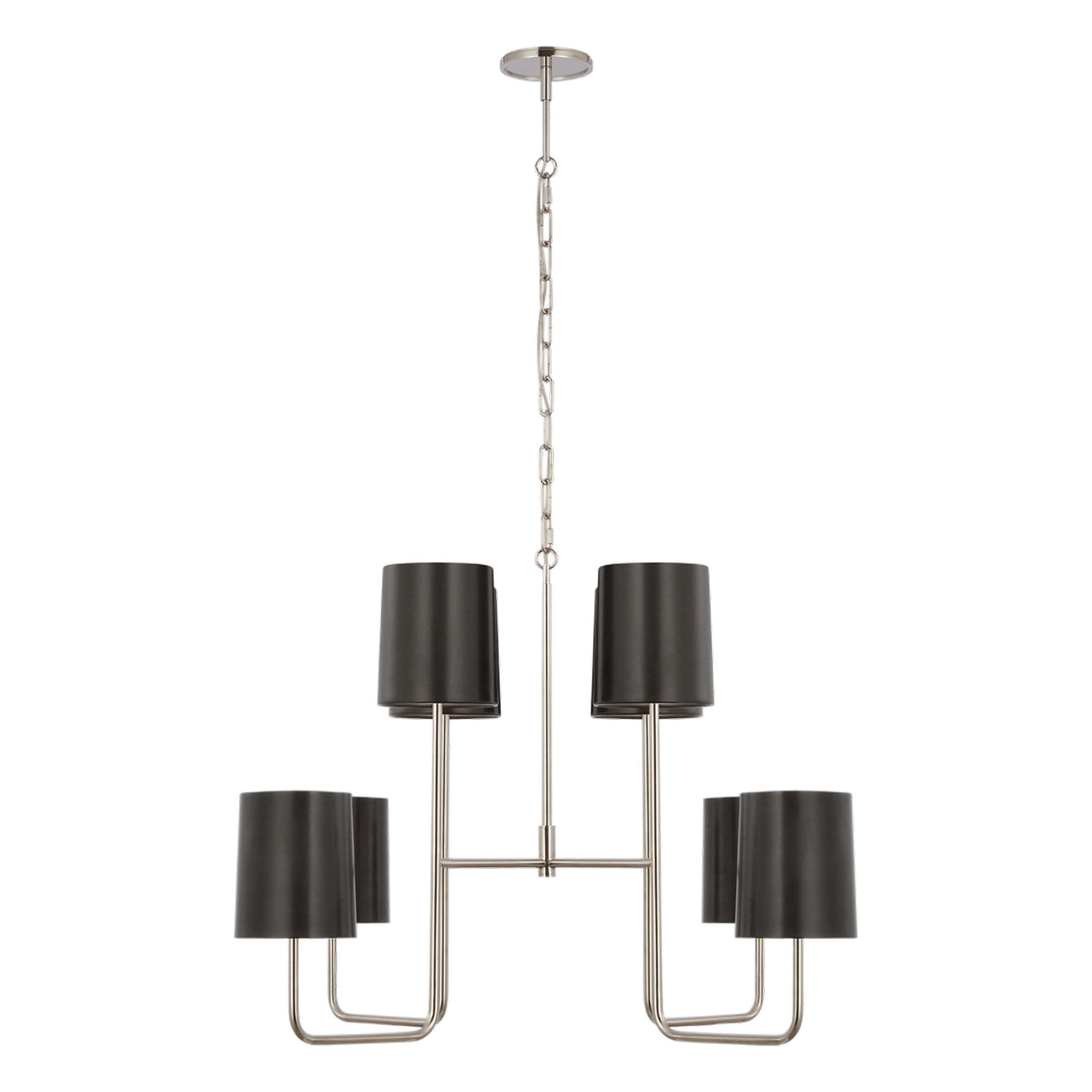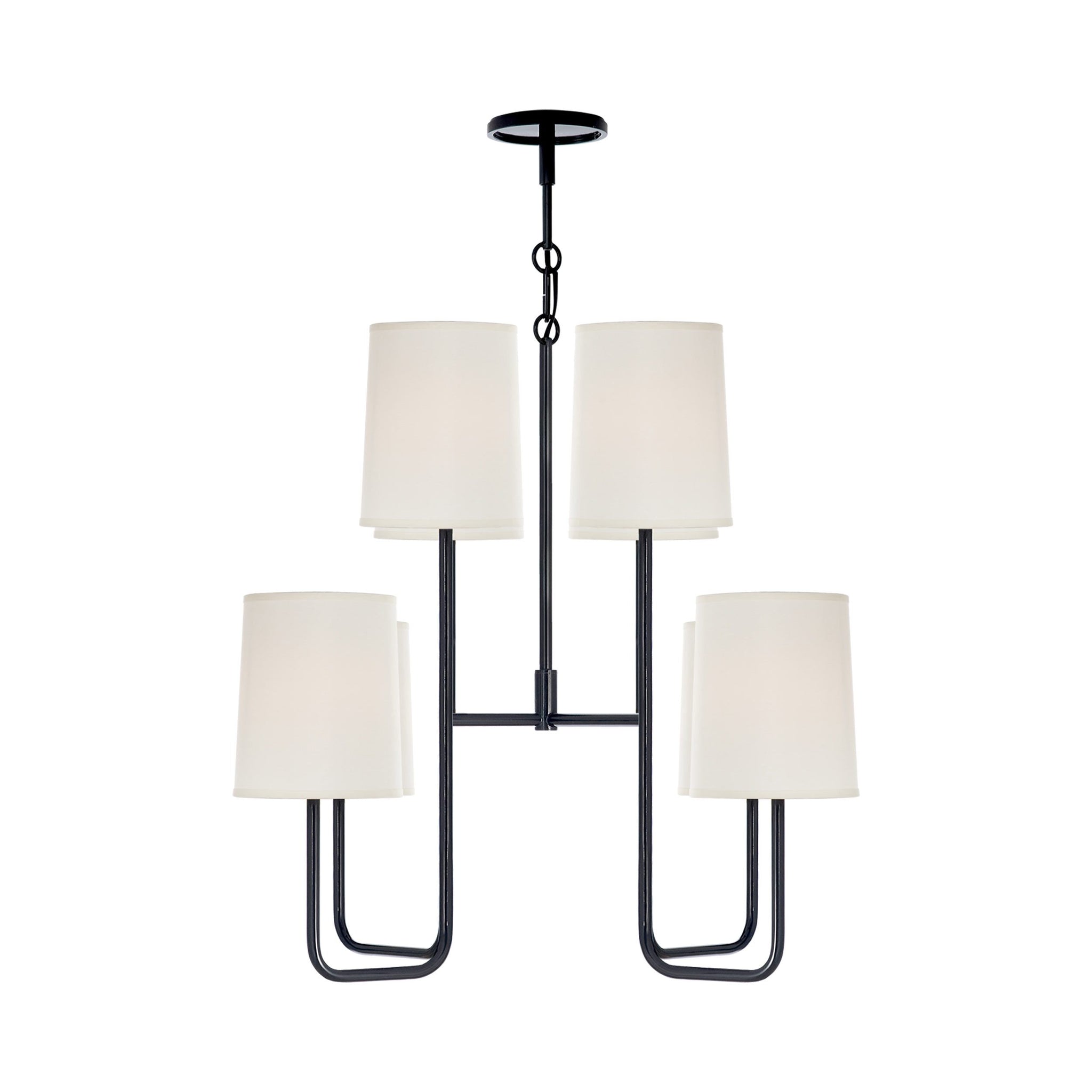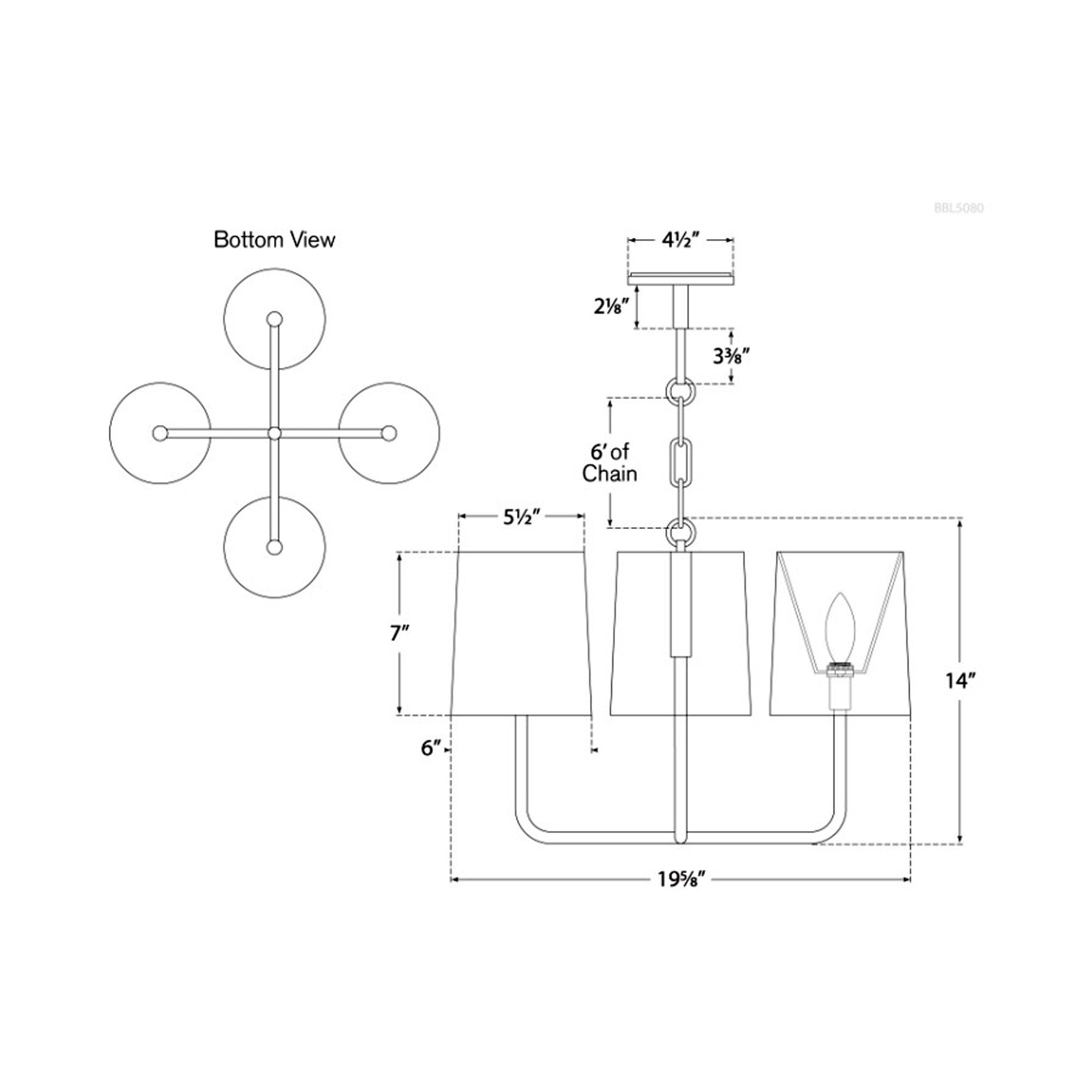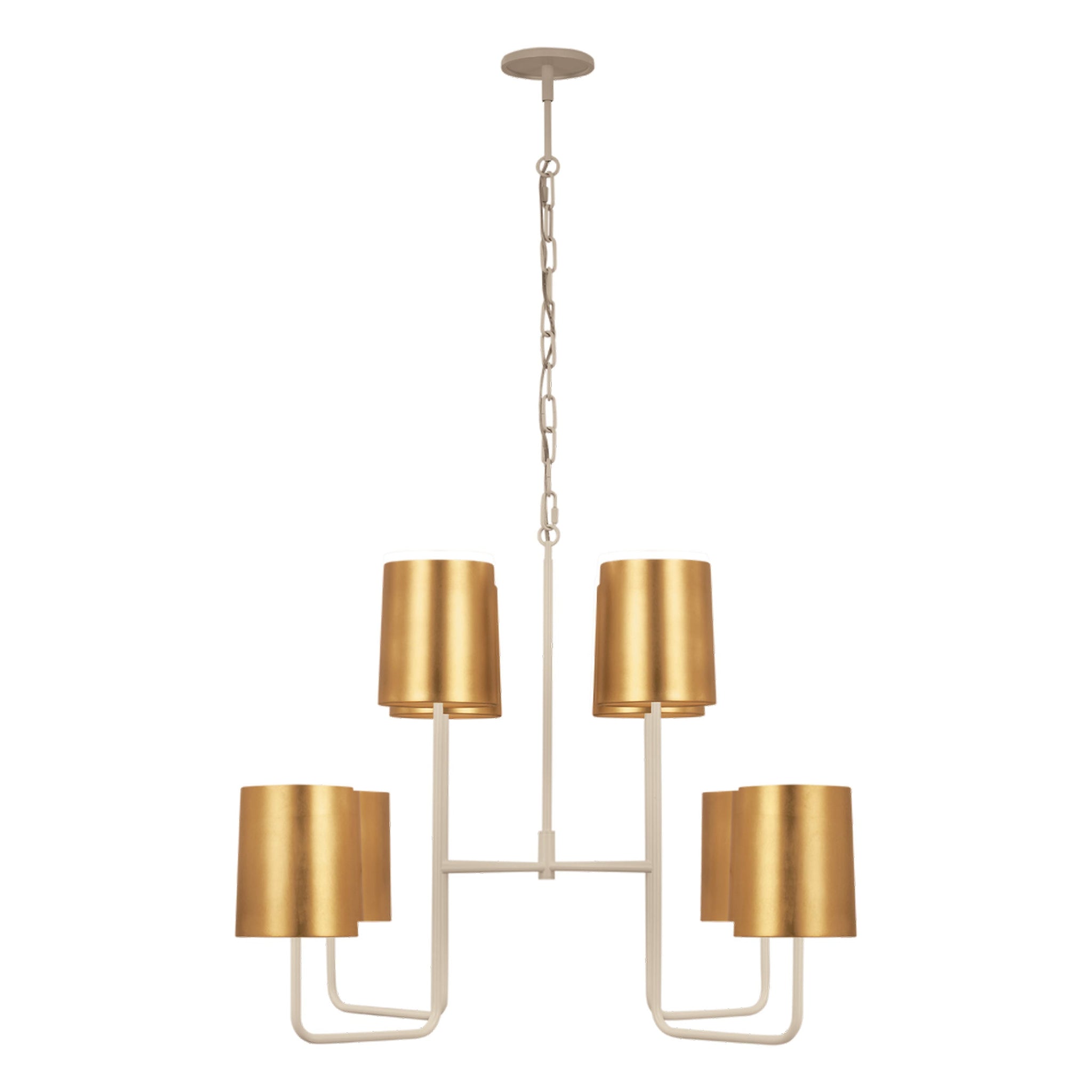 Four arms display a classic candelabra design on the Go Lightly Chandelier from Visual Comfort Signature. This piece pulls together small dining looks overlooking the cityscape.