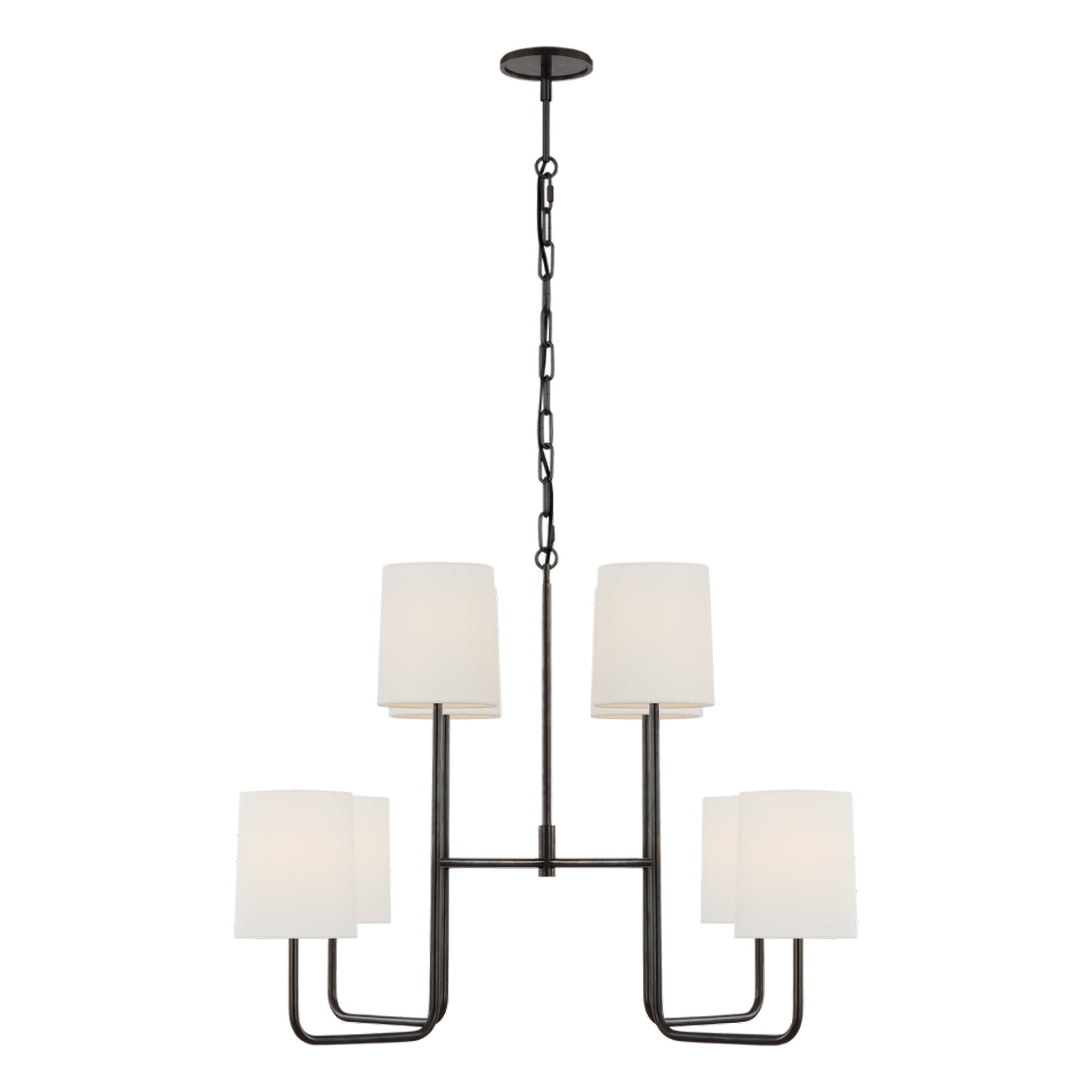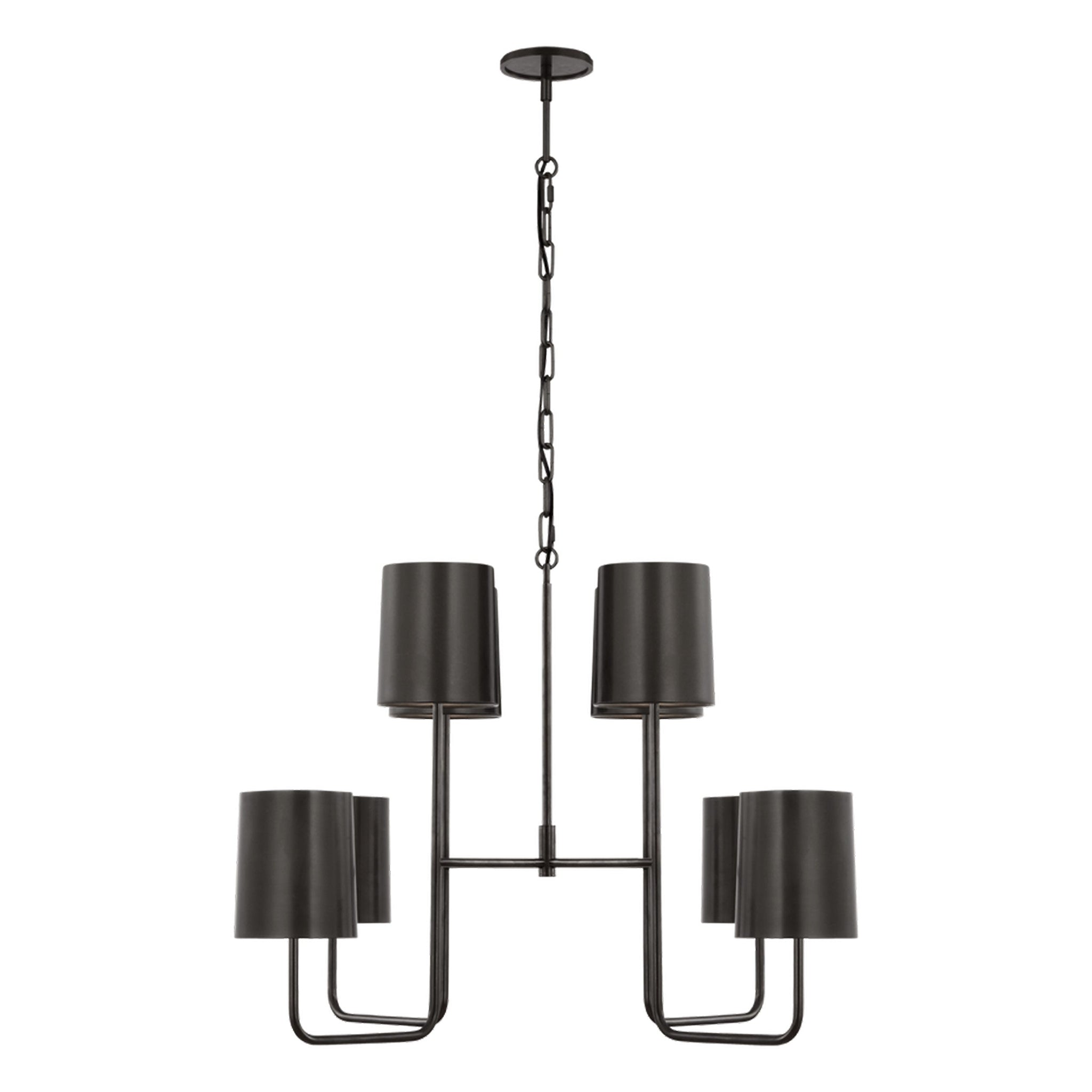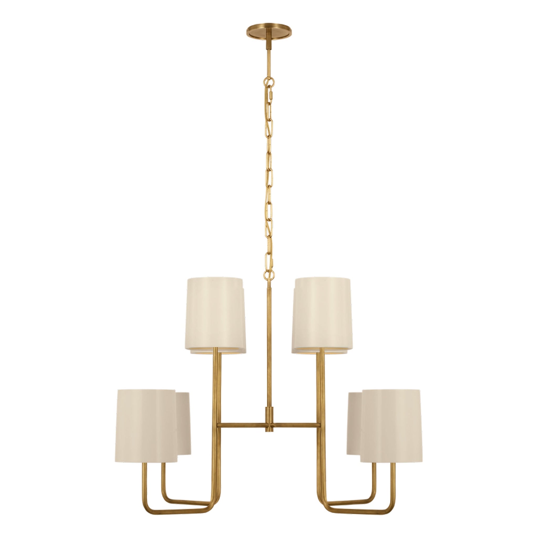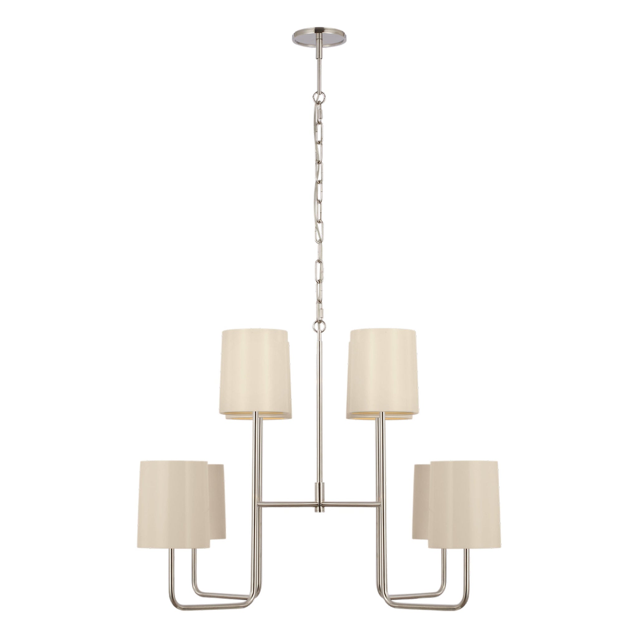 Four arms display a classic candelabra design on the Go Lightly Chandelier from Visual Comfort Signature. This piece pulls together small dining looks overlooking the cityscape.