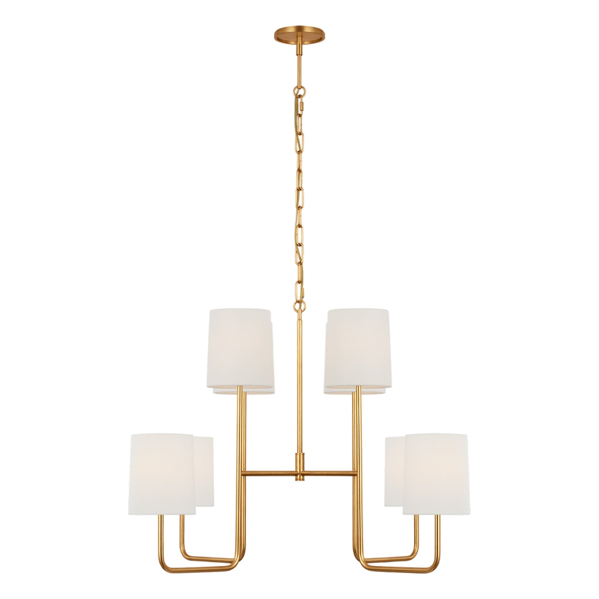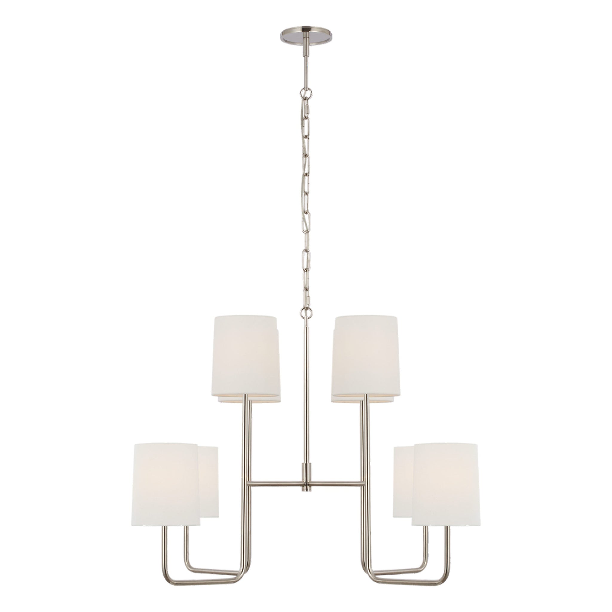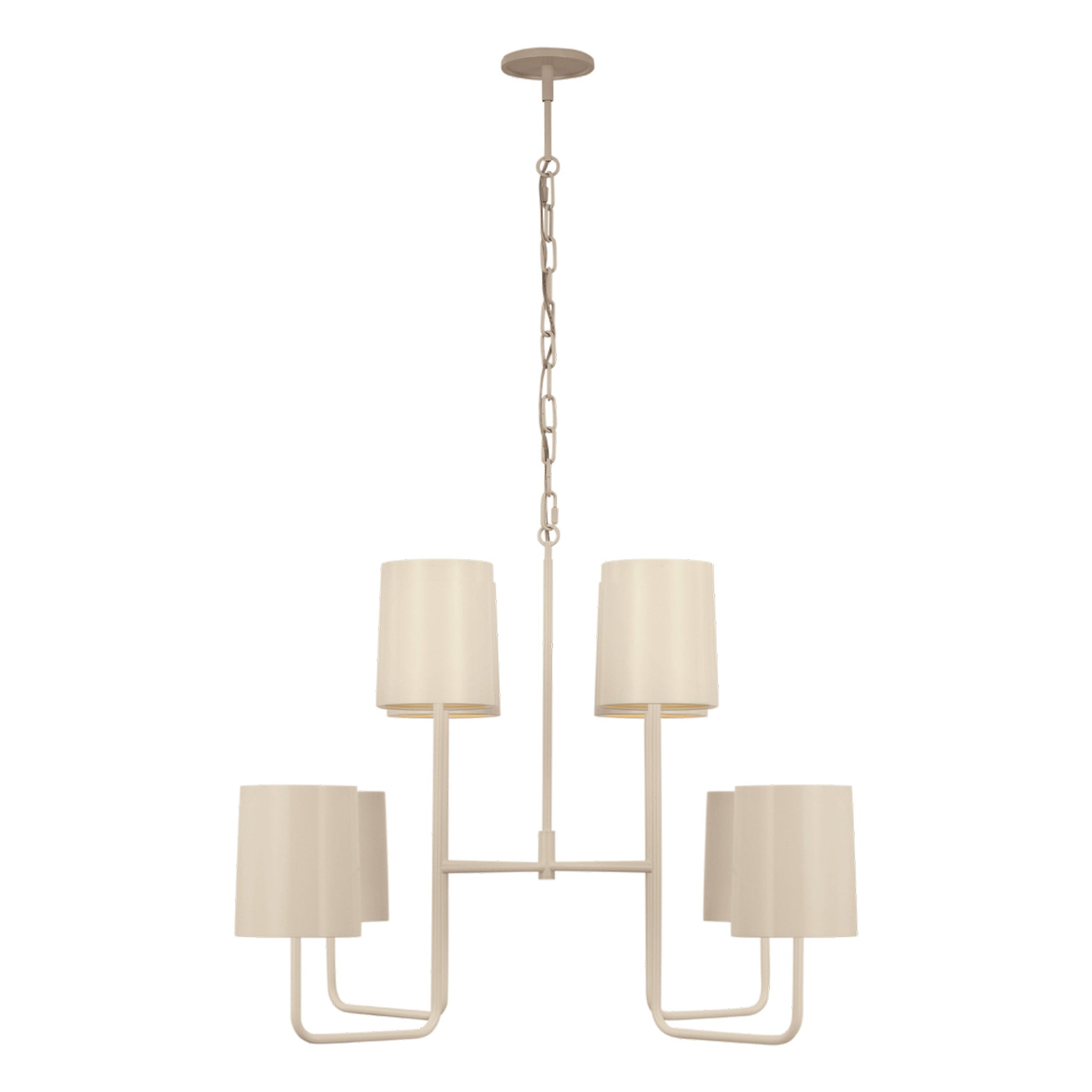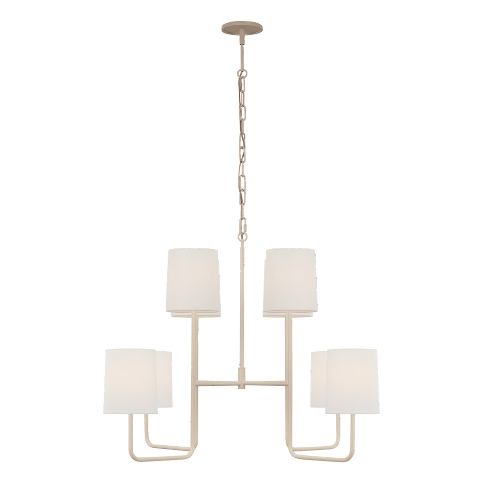 Four arms display a classic candelabra design on the Go Lightly Chandelier from Visual Comfort Signature. This piece pulls together small dining looks overlooking the cityscape.