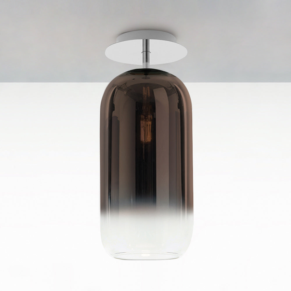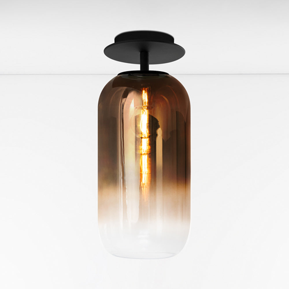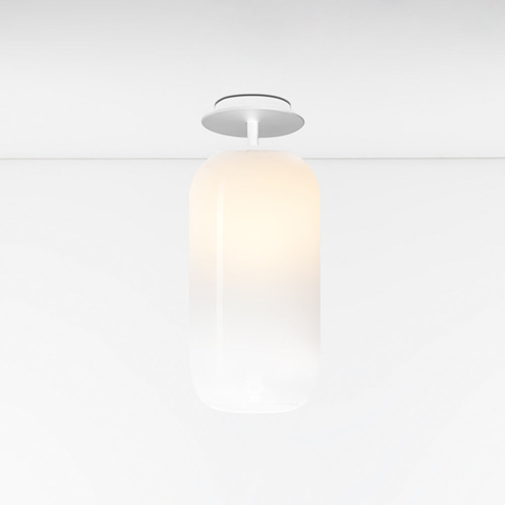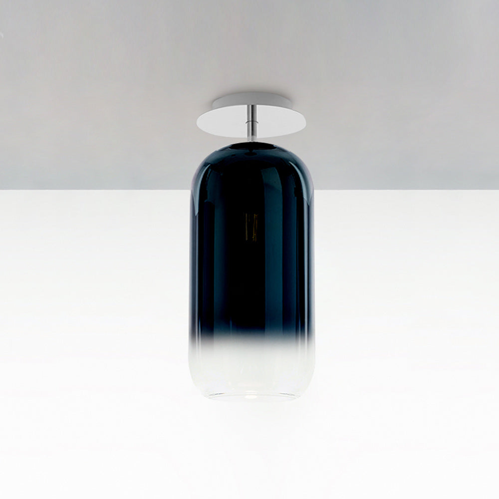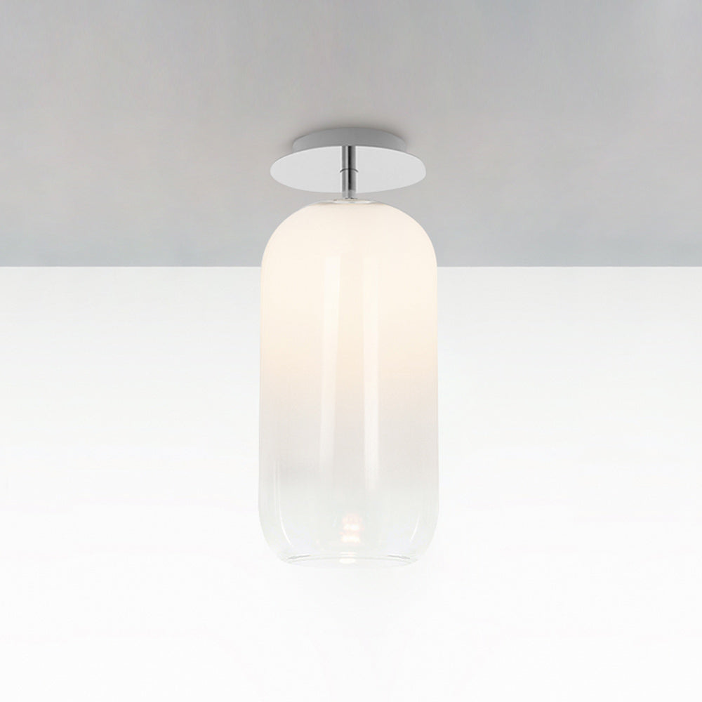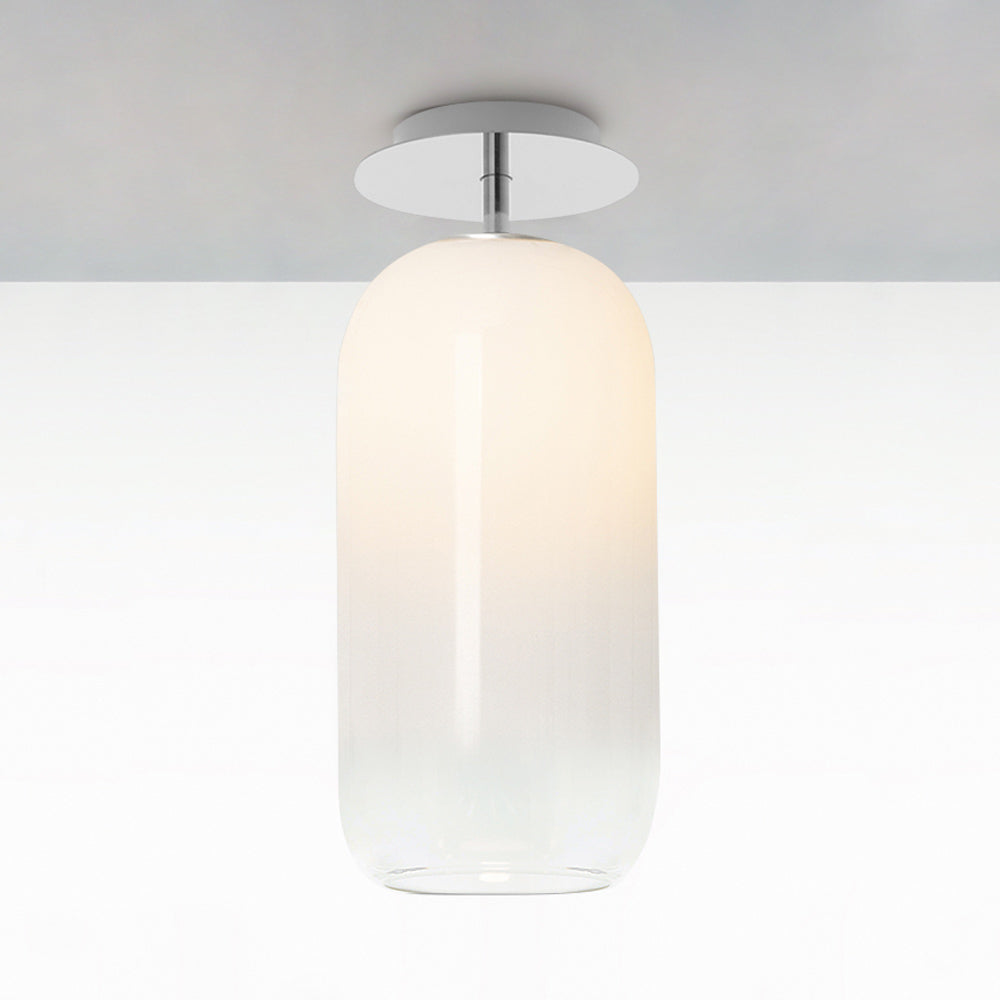 Graceful curves and stunning art glass create a compelling combination on the Gople Mini Semi-Flush Mount Ceiling Light from Artemide.