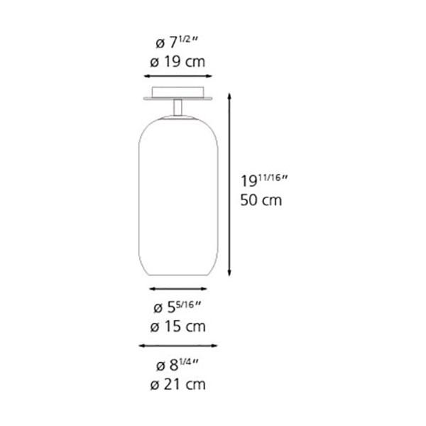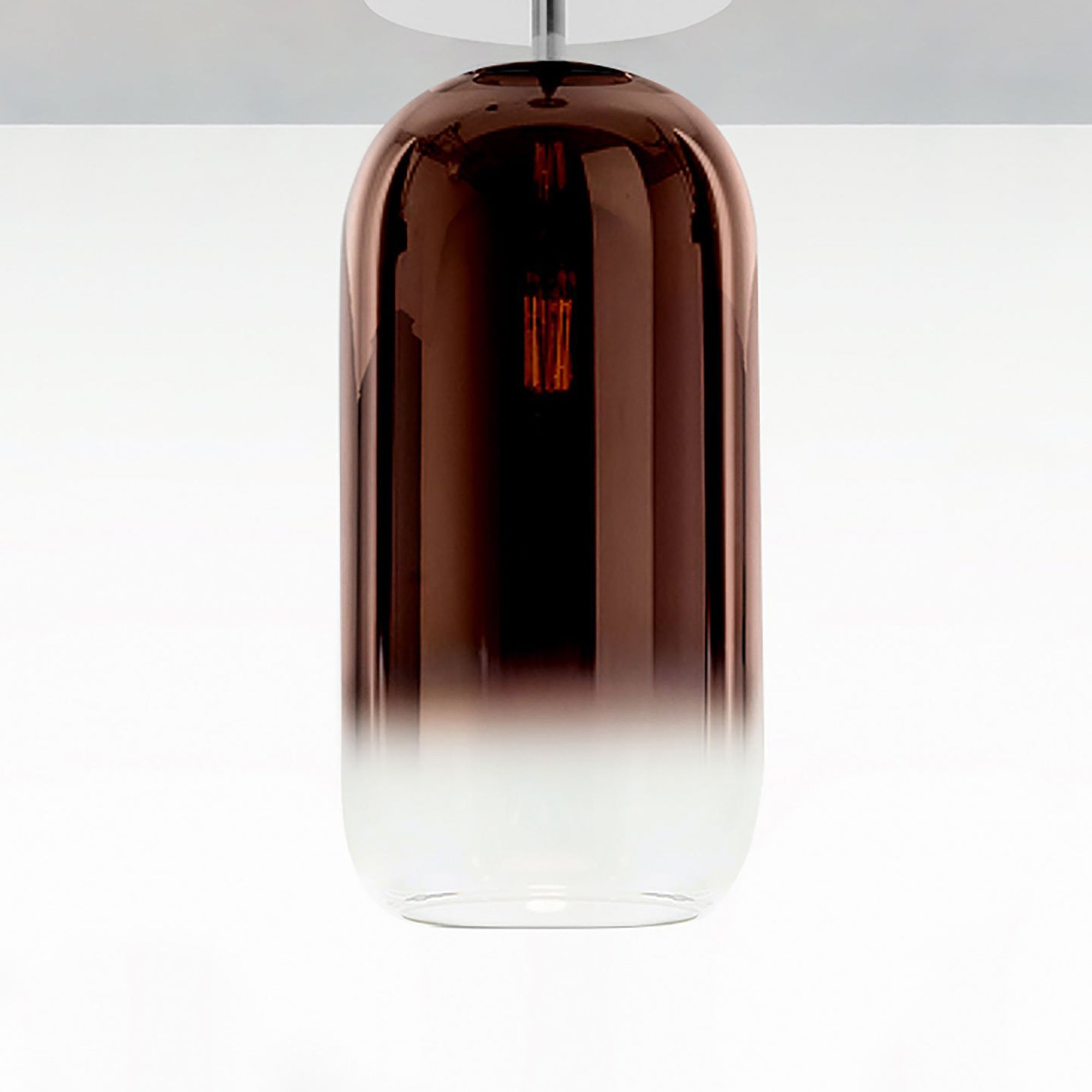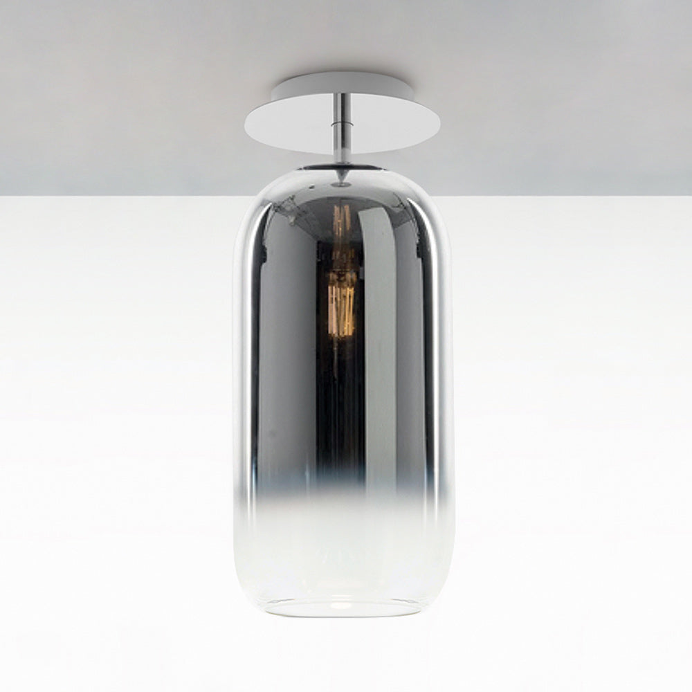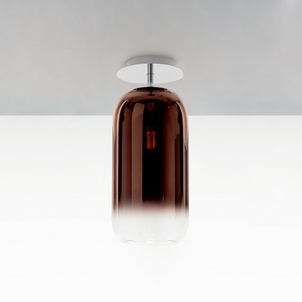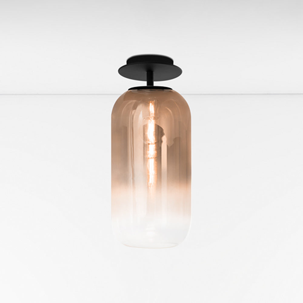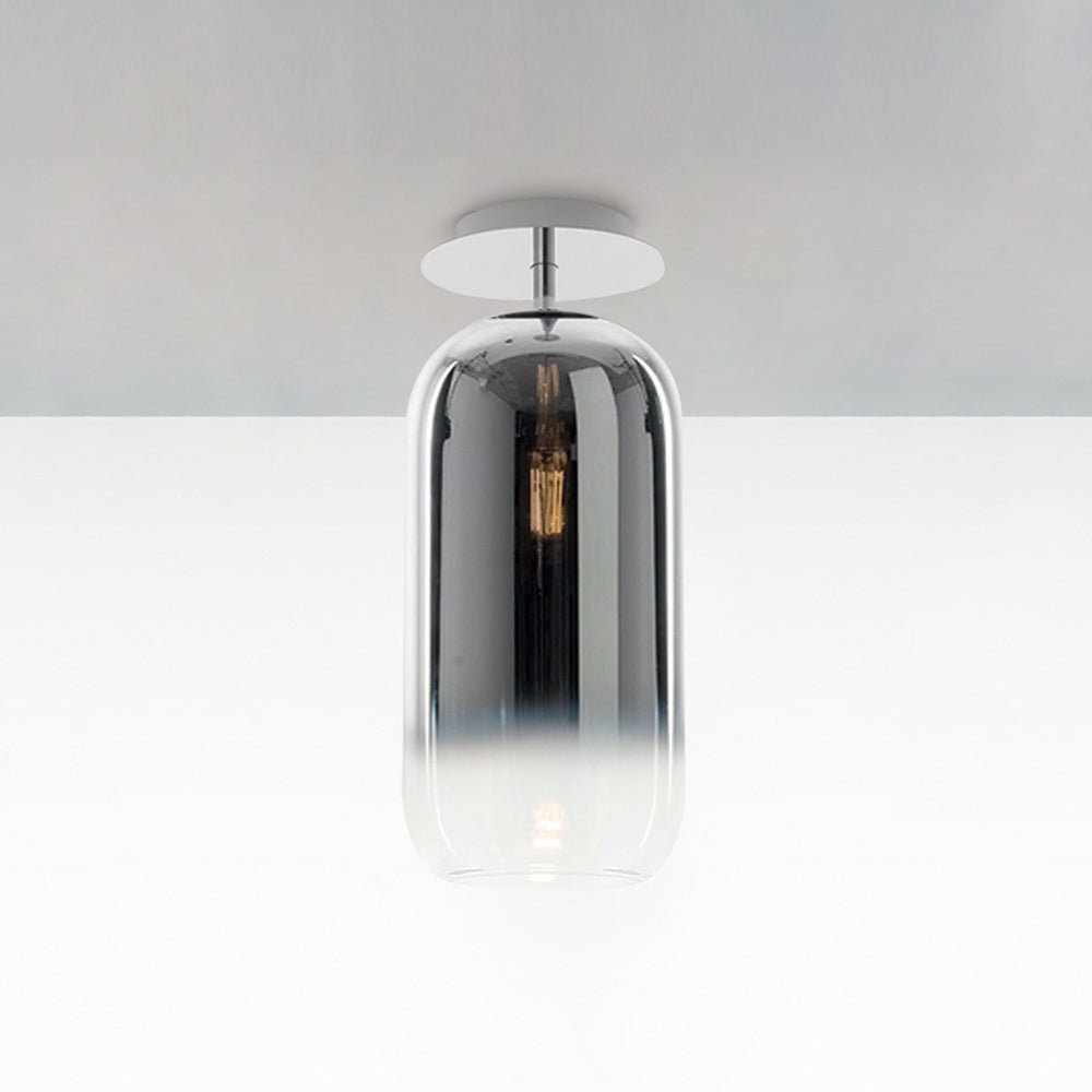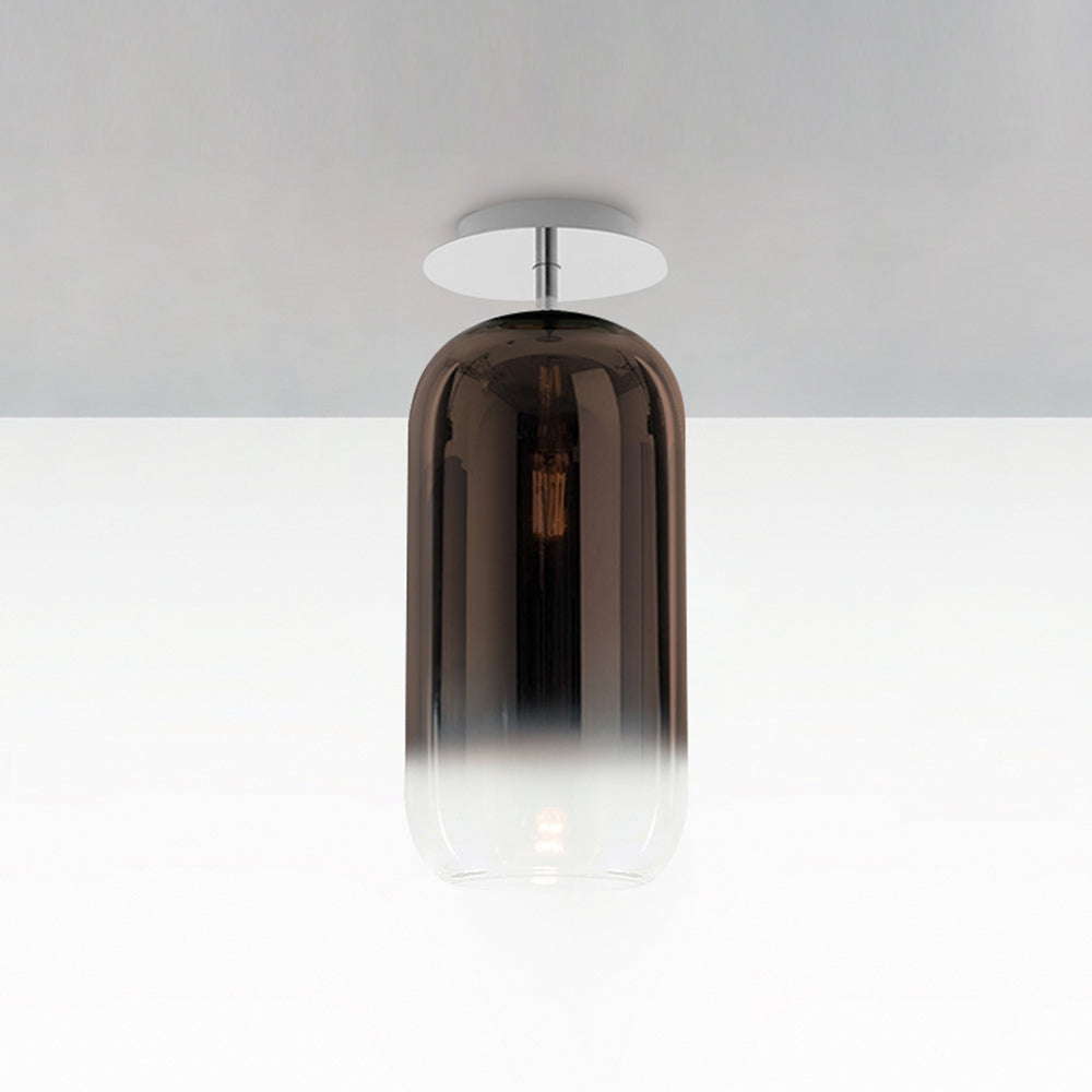 Graceful curves and stunning art glass create a compelling combination on the Gople Mini Semi-Flush Mount Ceiling Light from Artemide.