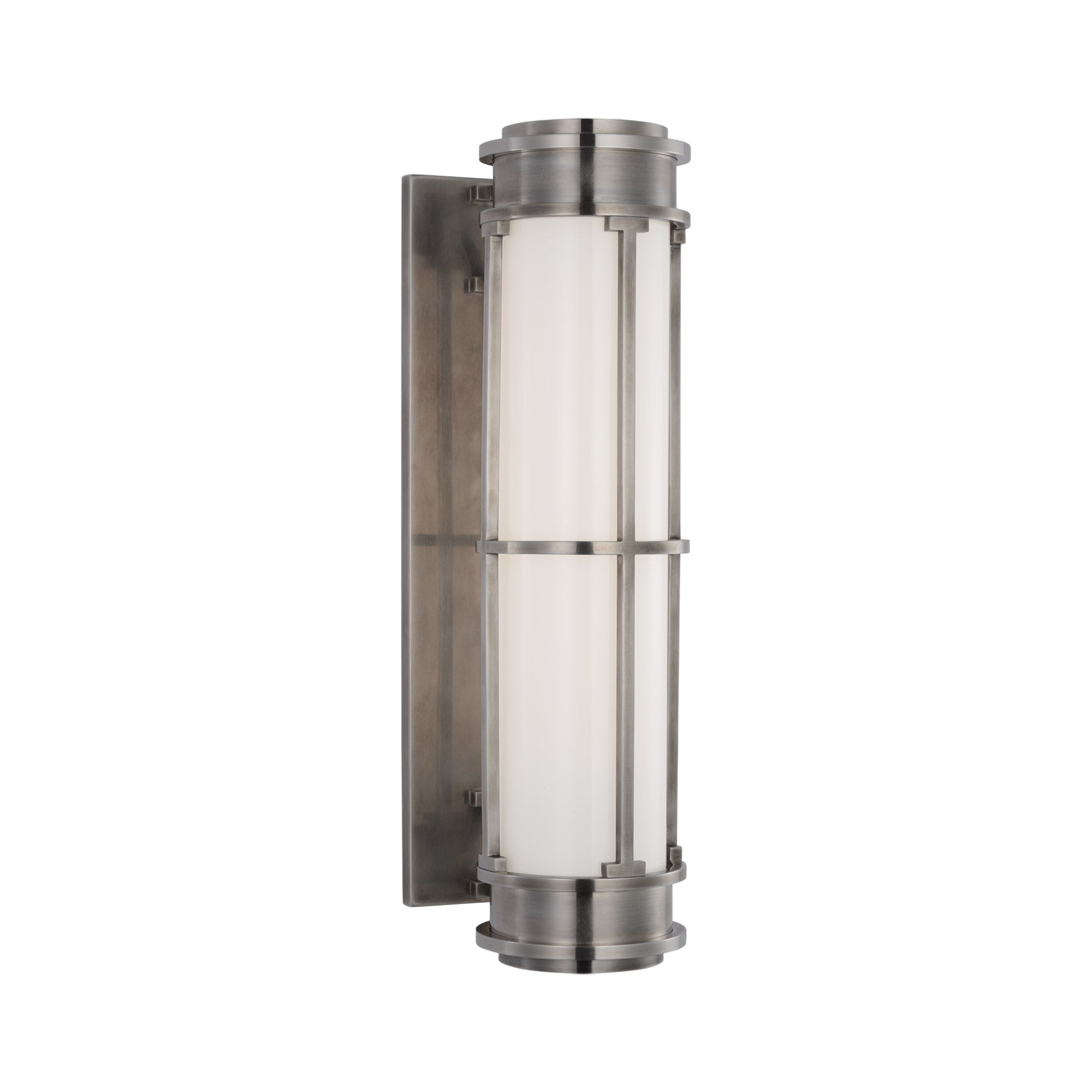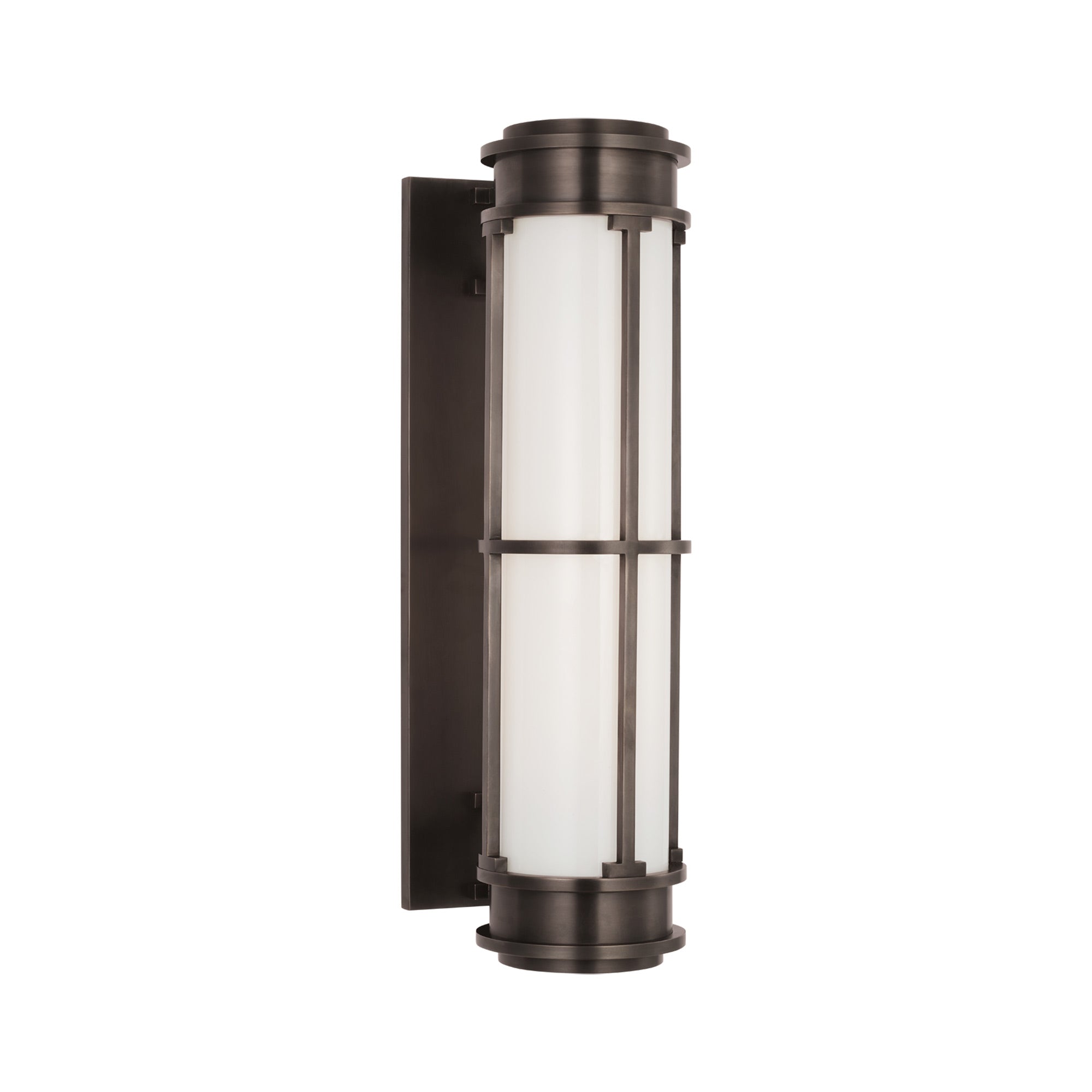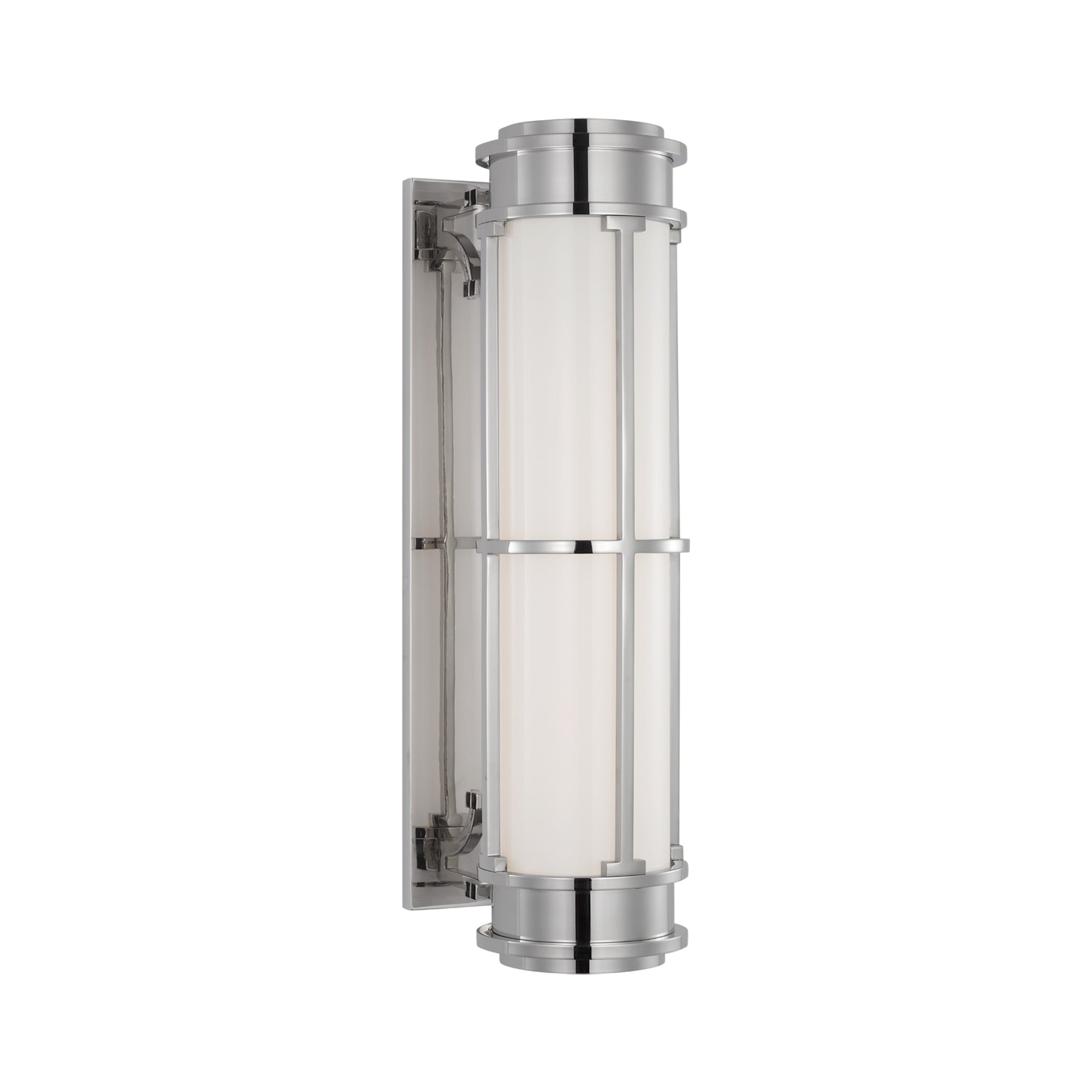 The Gracie Linear Wall Light from Visual Comfort Signature restores the beautiful sophistication of classic vintage ambiance with a lantern-like silhouette. Its design roots lie in iconic industrial fare, updated to reflect a more modern world. Elegantly framed in metal, its ethereal white glass shade radiates warm illumination in a bathroom, living room, or bedroom.