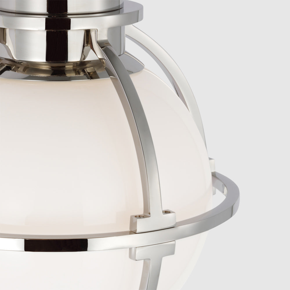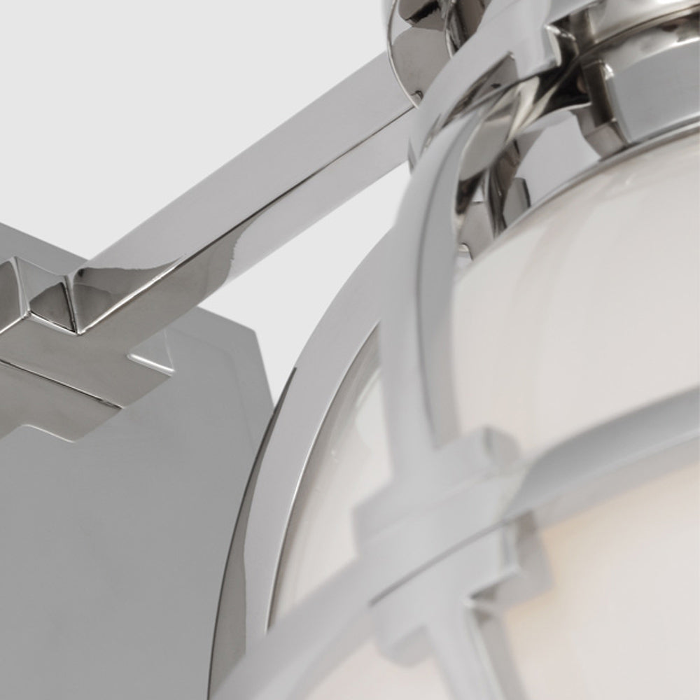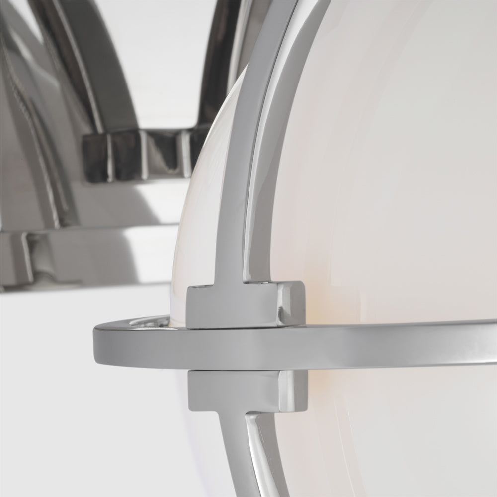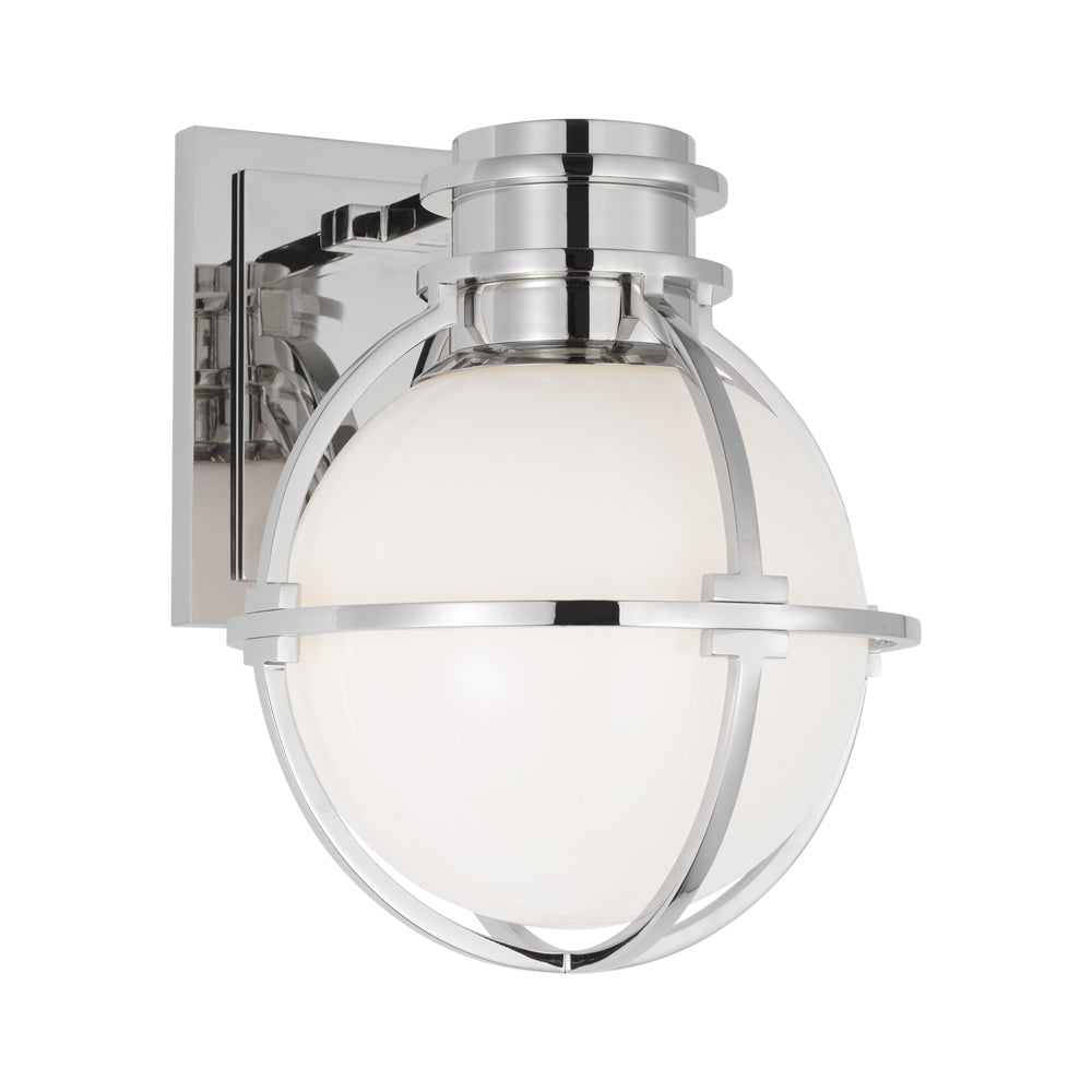 A striking level of dimensional detail offers modern updates to a vintage industrial motif as the Gracie Wall Light from Visual Comfort Signature reflects engineering brilliance that transforms into art. Cage-like in design, its openwork metal framing and festive white glass orb shade leave behind an extraordinary merger of crisp structure and freelance gallery influence.