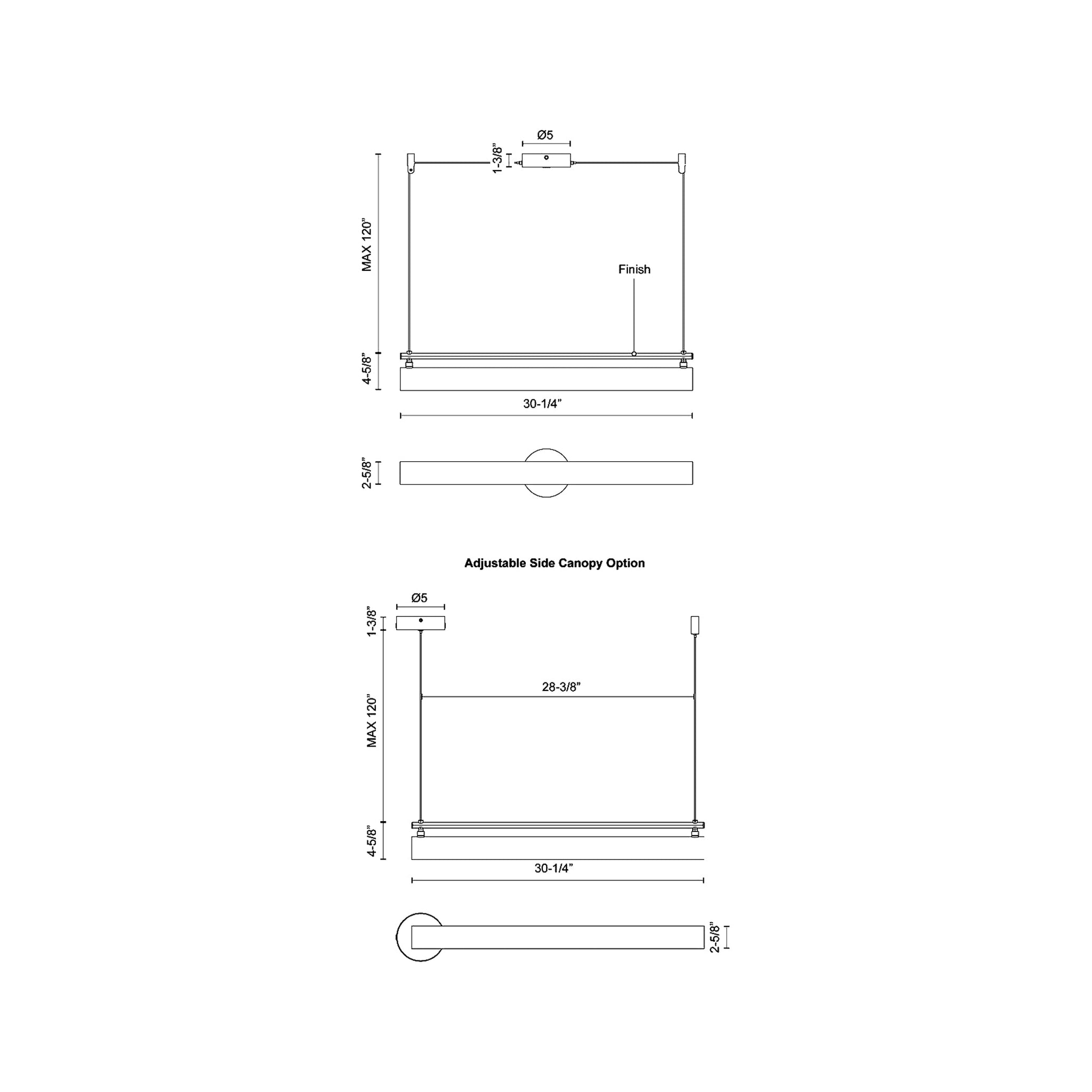 - Small: 30.25"W X 4.63"H; 126.01" max height