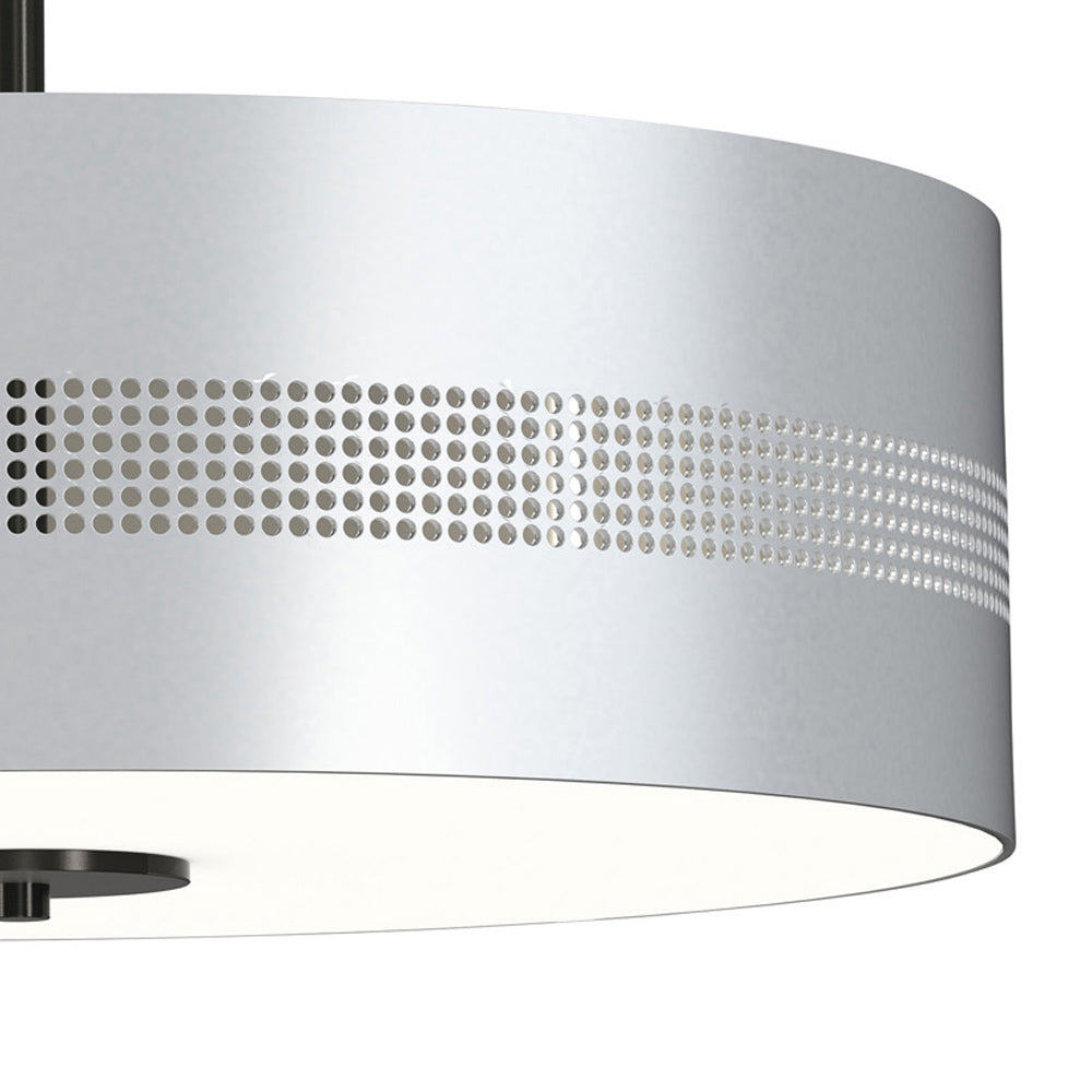 Embrace the best of trending industrial style with a light fixture delivering both gritty design prowess and a clean look with circular silhouetting. The Grid 3 Pendant Light from George Kovacs features a round brushed nickel finish shade with tiny perforations that embellish the illumination flowing through a bottom diffuser. Coal finish metal framing provides chic contrast.