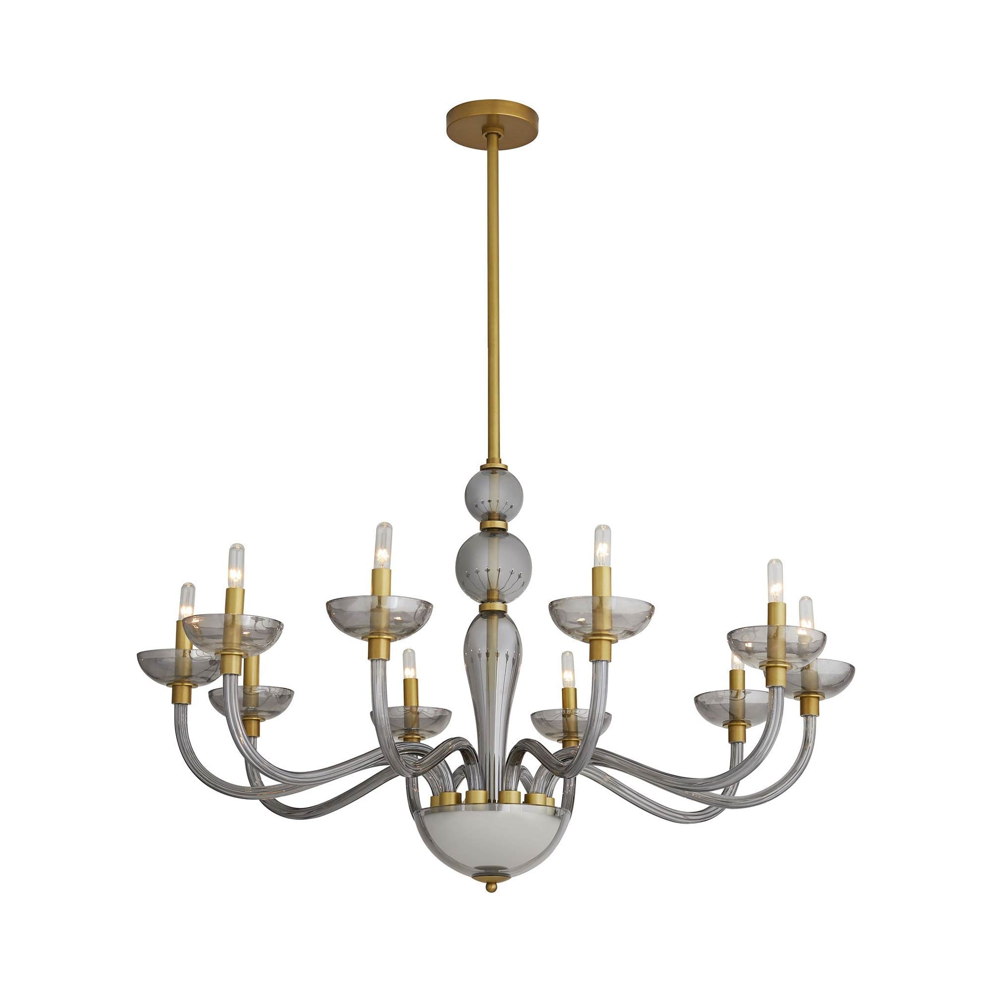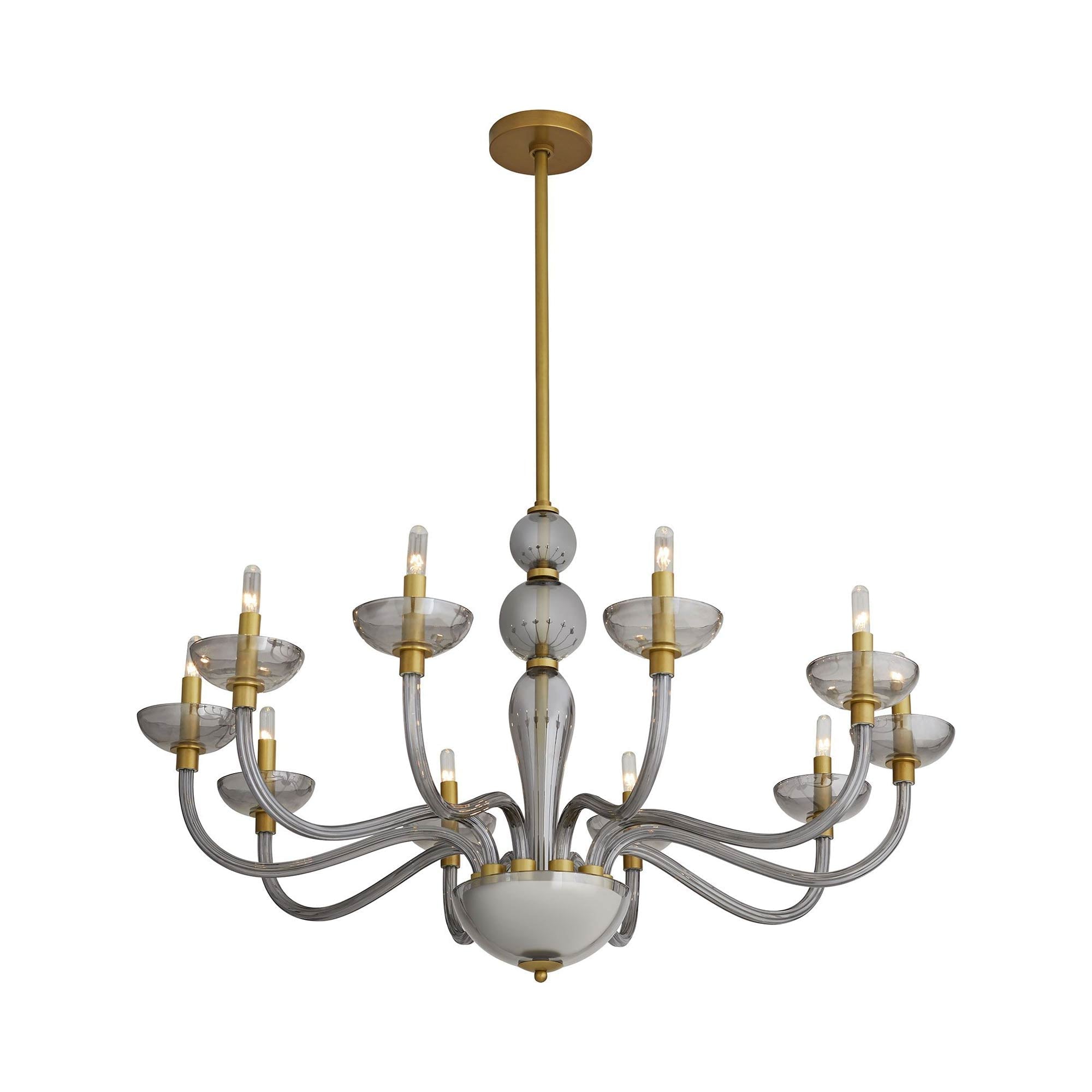 Gorgeous hand-blown glass takes center stage in the utterly impressive Gustavo Chandelier from Arteriors. A reimagining of a classic, the chandelier presents a familiar silhouette paired with simply stunning smoky luster glass finishing. Antique brass metal accents complete the design, which delivers graceful curves and prominent candle cups for a soft, almost romantic effect you're going to fall for.