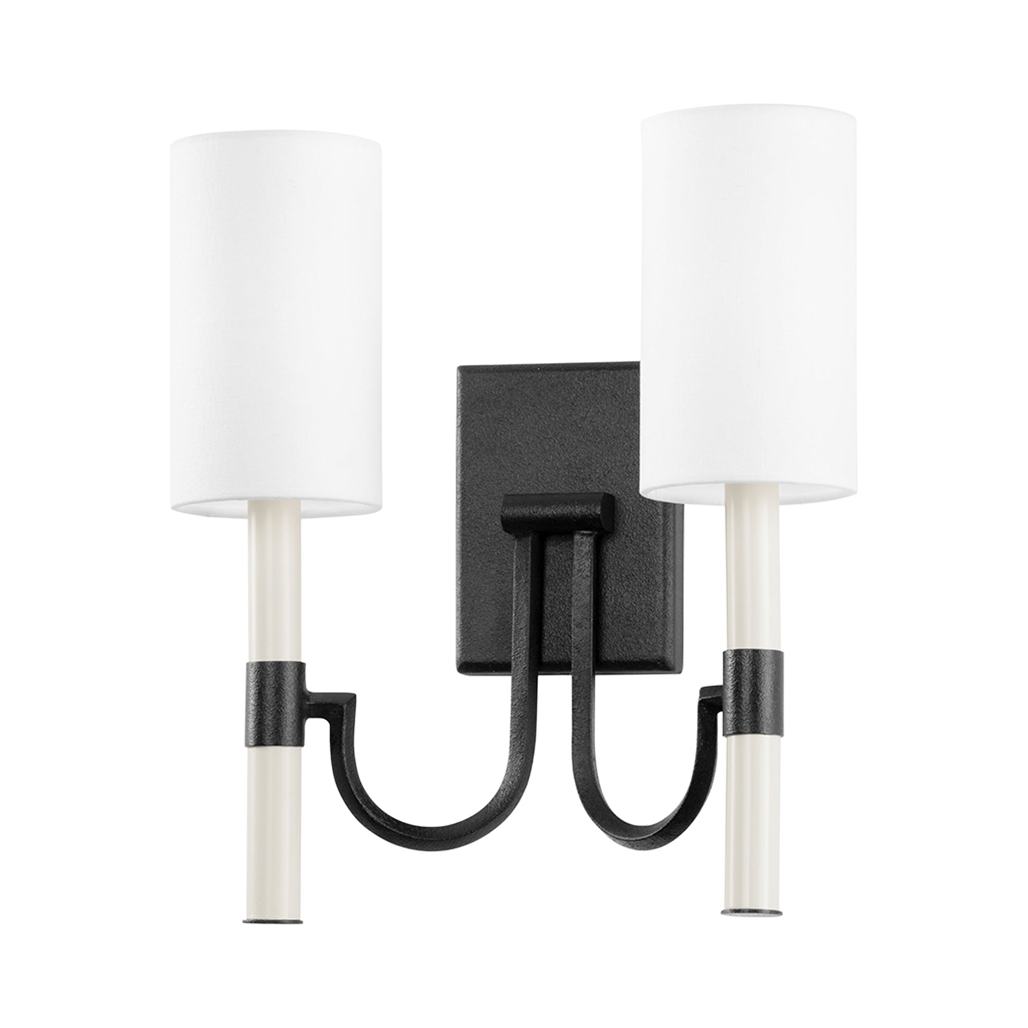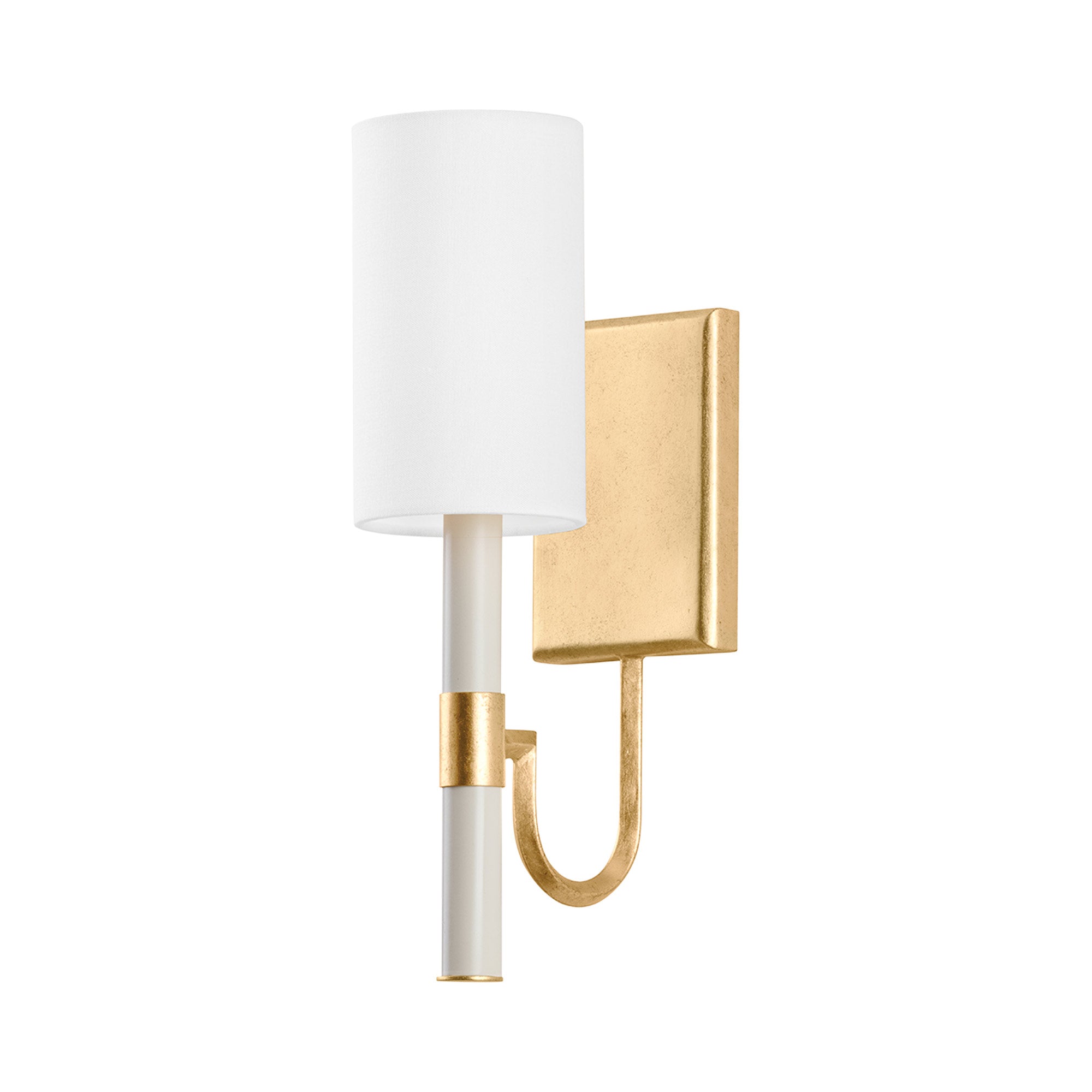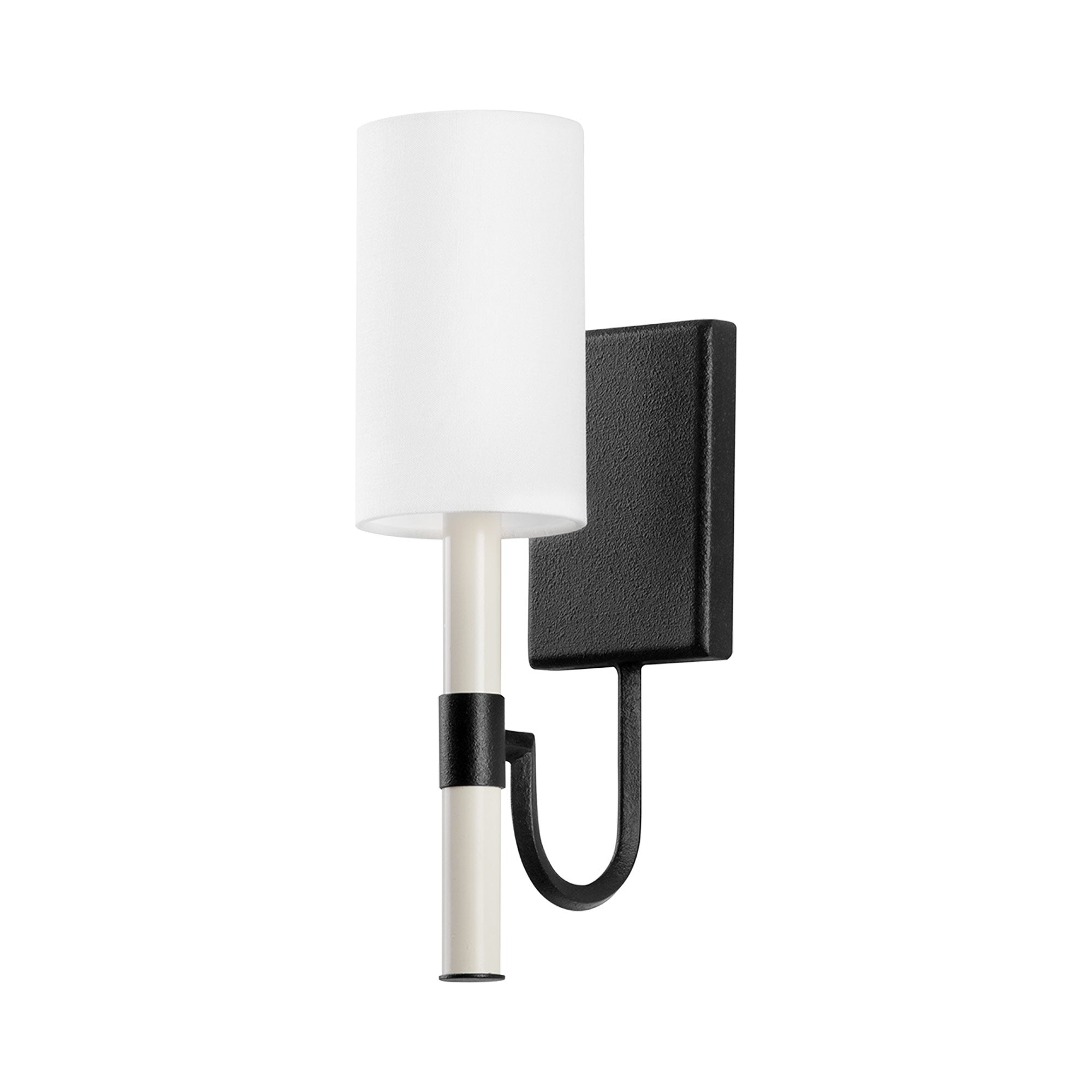 Crisp style takes a page from vintage influence to create a light fixture that reflects customized design statements. The Gustine Wall Light from Troy Lighting modernizes a conventional light, updating with simple yet compelling elements including a cylindrical sleeve and elongated fabric shade. Exaggerated curving of its metal arm defines a visual focus.