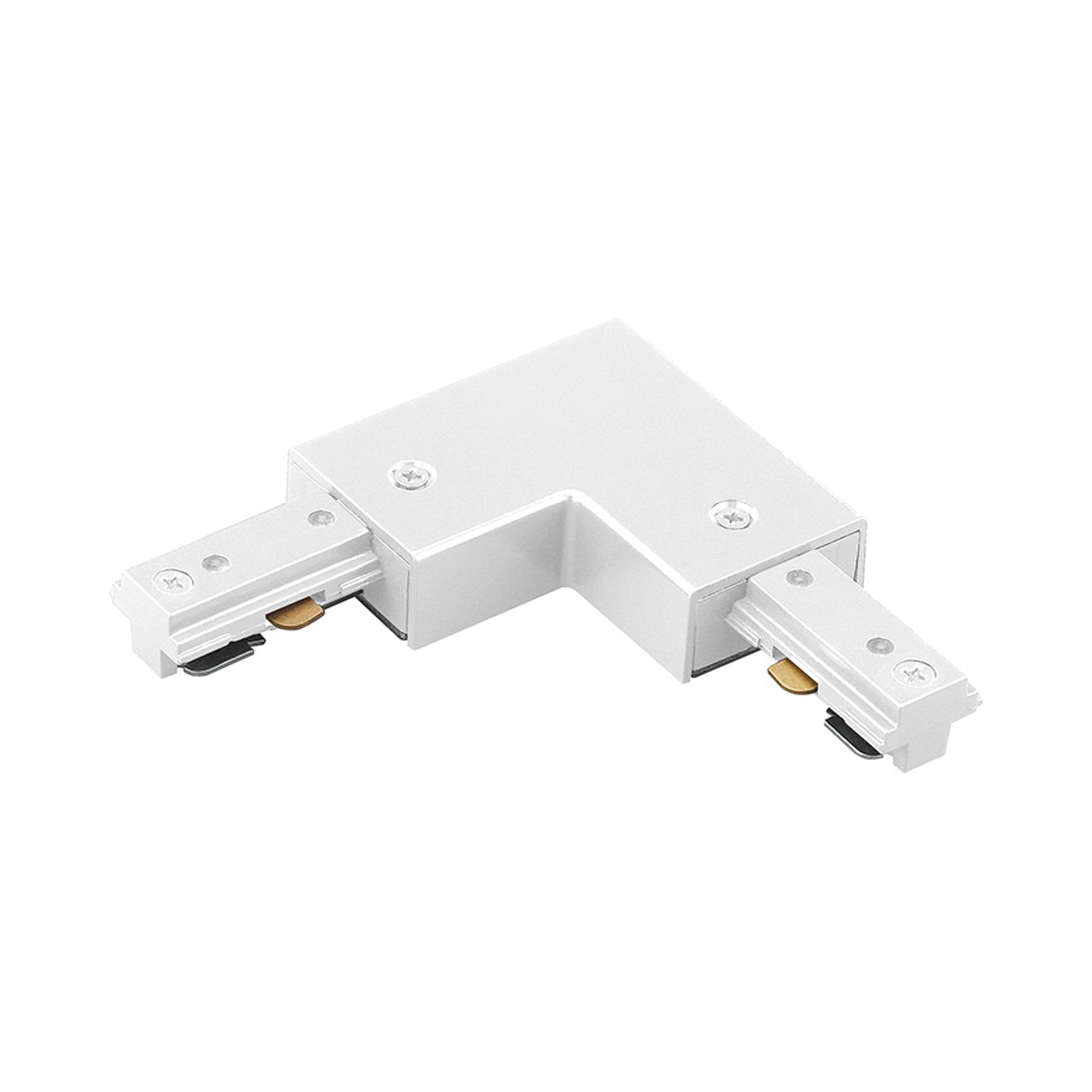 120V Track systems are modular and can be designed for multiple applications in nearly any interior environment. L-Connectors are used to join two pieces of track together with power continuity to form a 90 Degree angle. L-connectors are power feedable when aligned beneath a junction box. L-connectors are offered in right and left versions - it is important to select the correct L-connector for track polarity. A great rule of thumb is to walk underneath where the track would be installed. If you have to make a left turn, that's a Left L-connector, if you have to make a right turn, that's a Right L-connector.