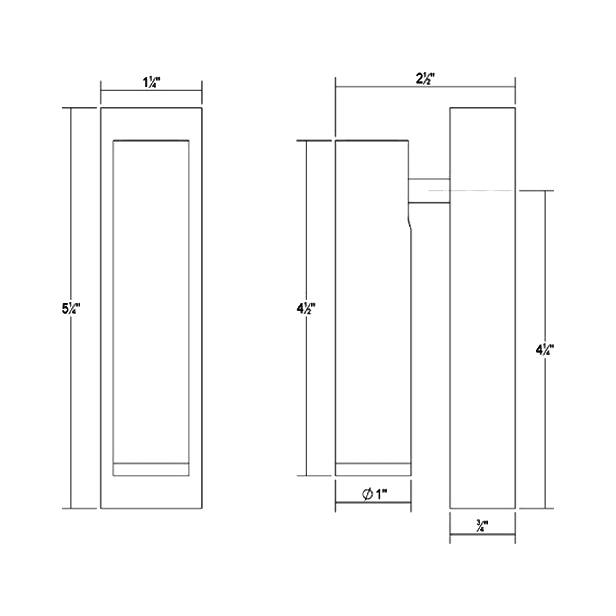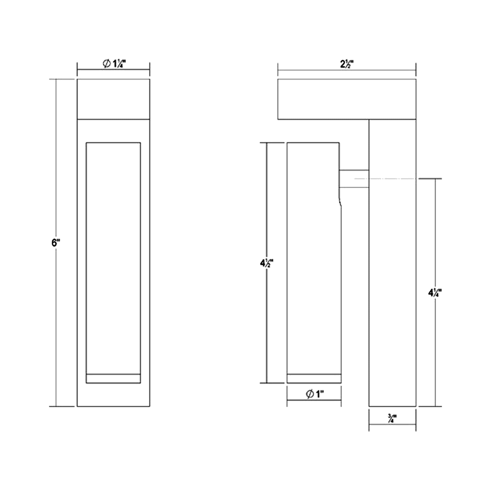 - Single with Uplight: 1.5"W X 6"H; 5.75" Extension