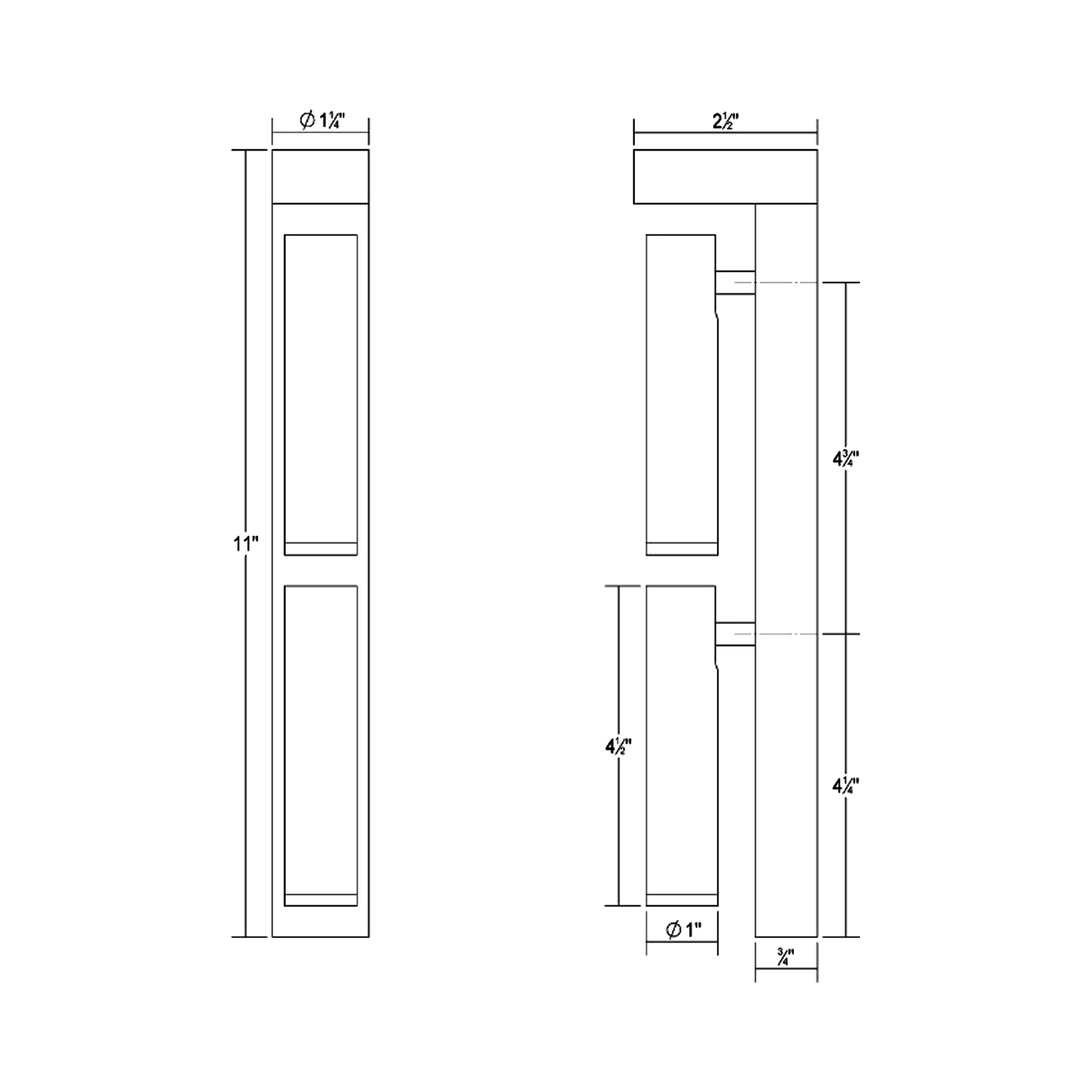- Double: 1.5"W X 11"H; 5.75" Extension