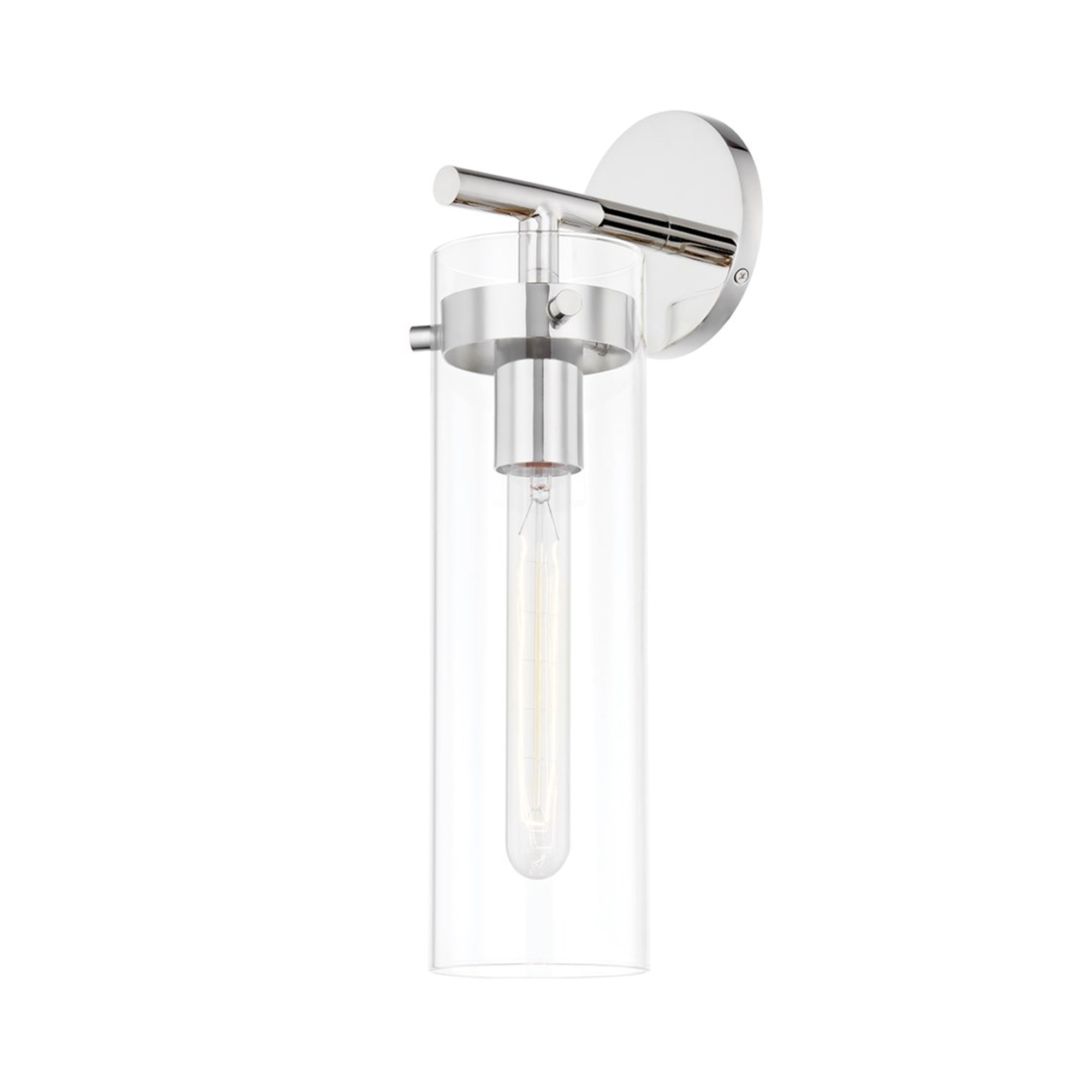 An assortment of classic elements configure to fashion classic, sophisticated style in the Haisley Wall Light from Mitzi. Embrace the glam pairing of sparkling clear glass and gleaming metal that shape a minimalist motif with sophistication. Versatile and inspiring, this fixture delivers elegant simplicity in lighting.