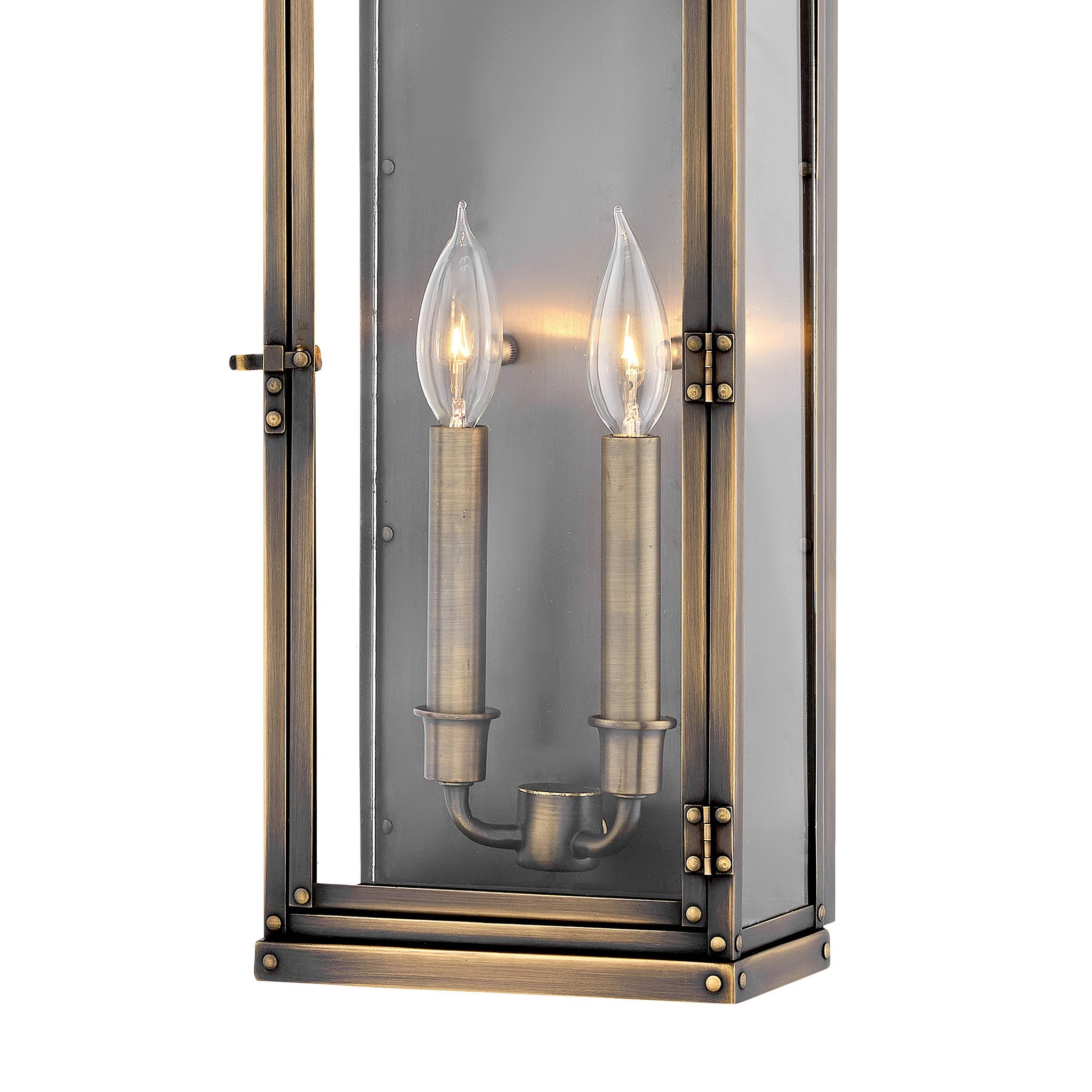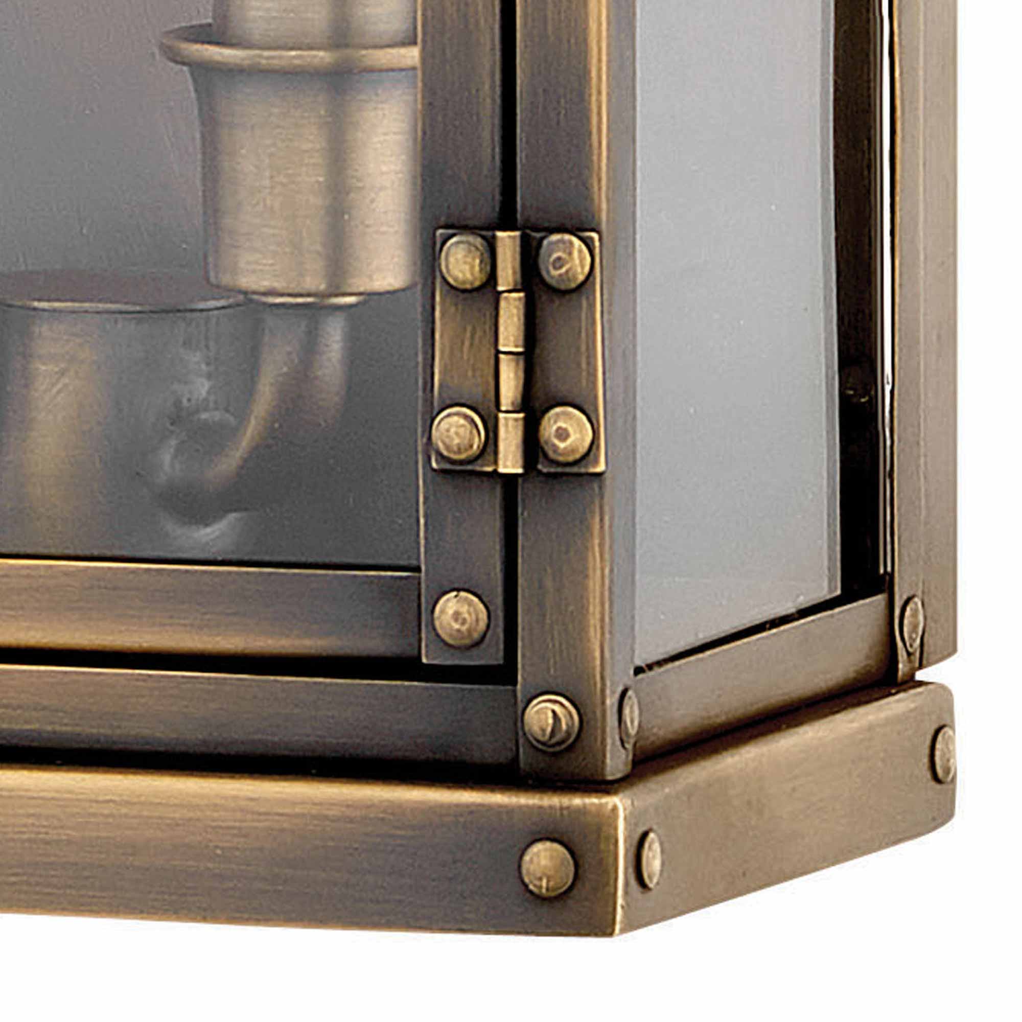 Hamilton’s sleek profile, constructed of solid brass, blends classic early American style with industrial influence. Quality and artistry is at the core of this design, with the pocket lantern featuring prominent rivets and a functional door in its gleaming, authentic Dark Antique Brass finish.
