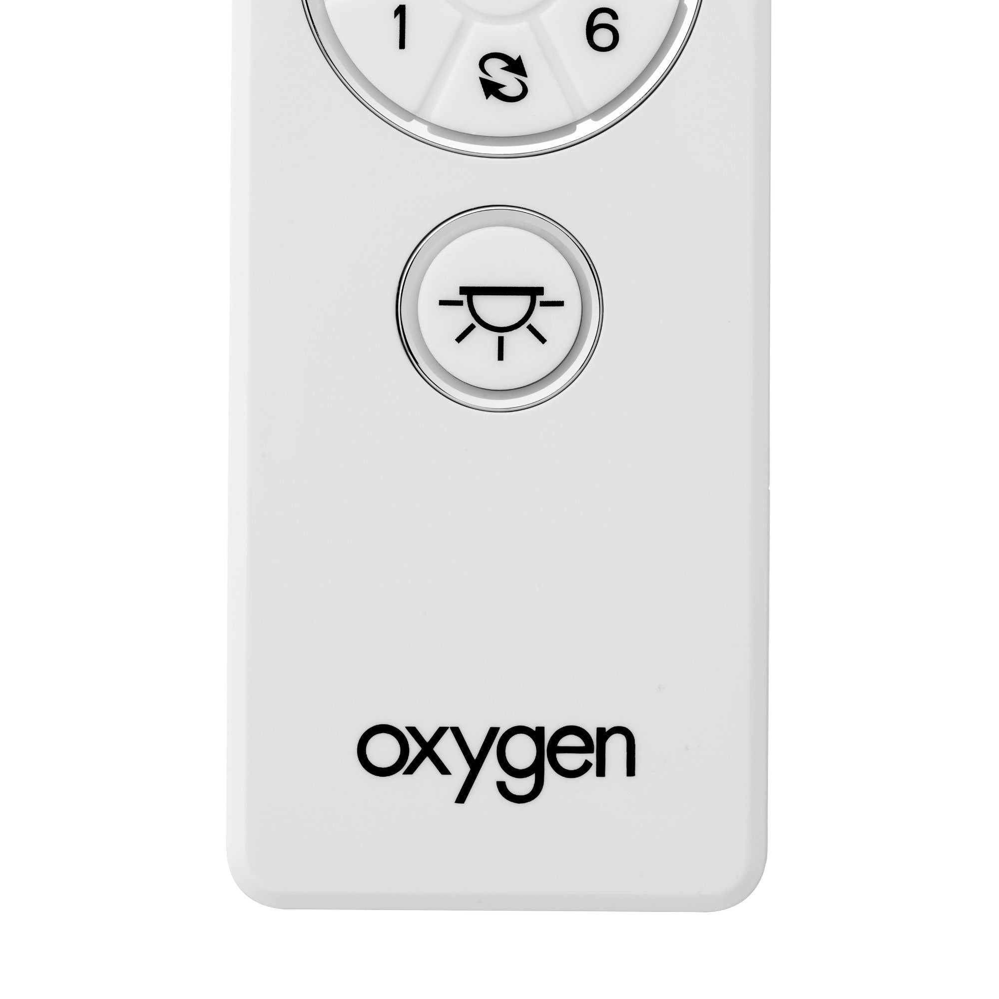 This Handheld Remote from Oxygen controls ceiling fans from the Coda, Propel, and Sol collections.
