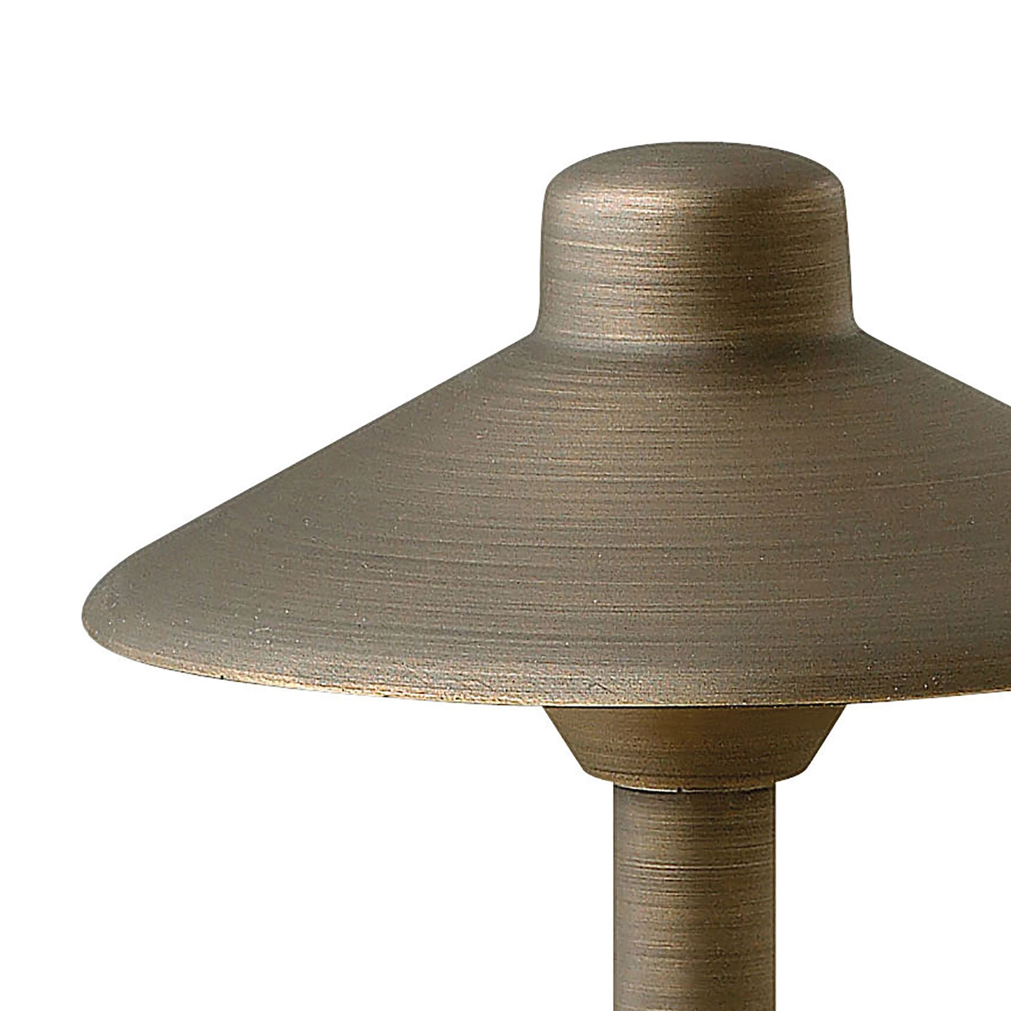 A petite canopy delivers a delicate finishing touch to the rugged appeal of the Hardy Island LED Path Light from Hinkley. Offering energy efficiency and optimal durability, the light boasts a sturdy post and a timeless matte bronze finish.