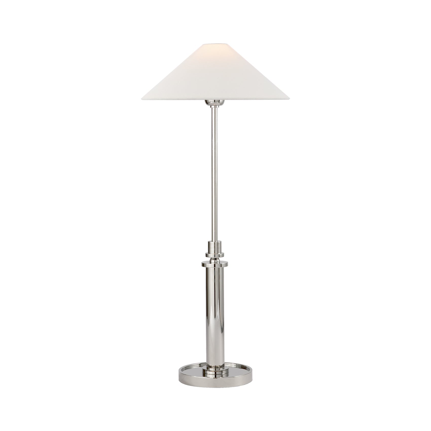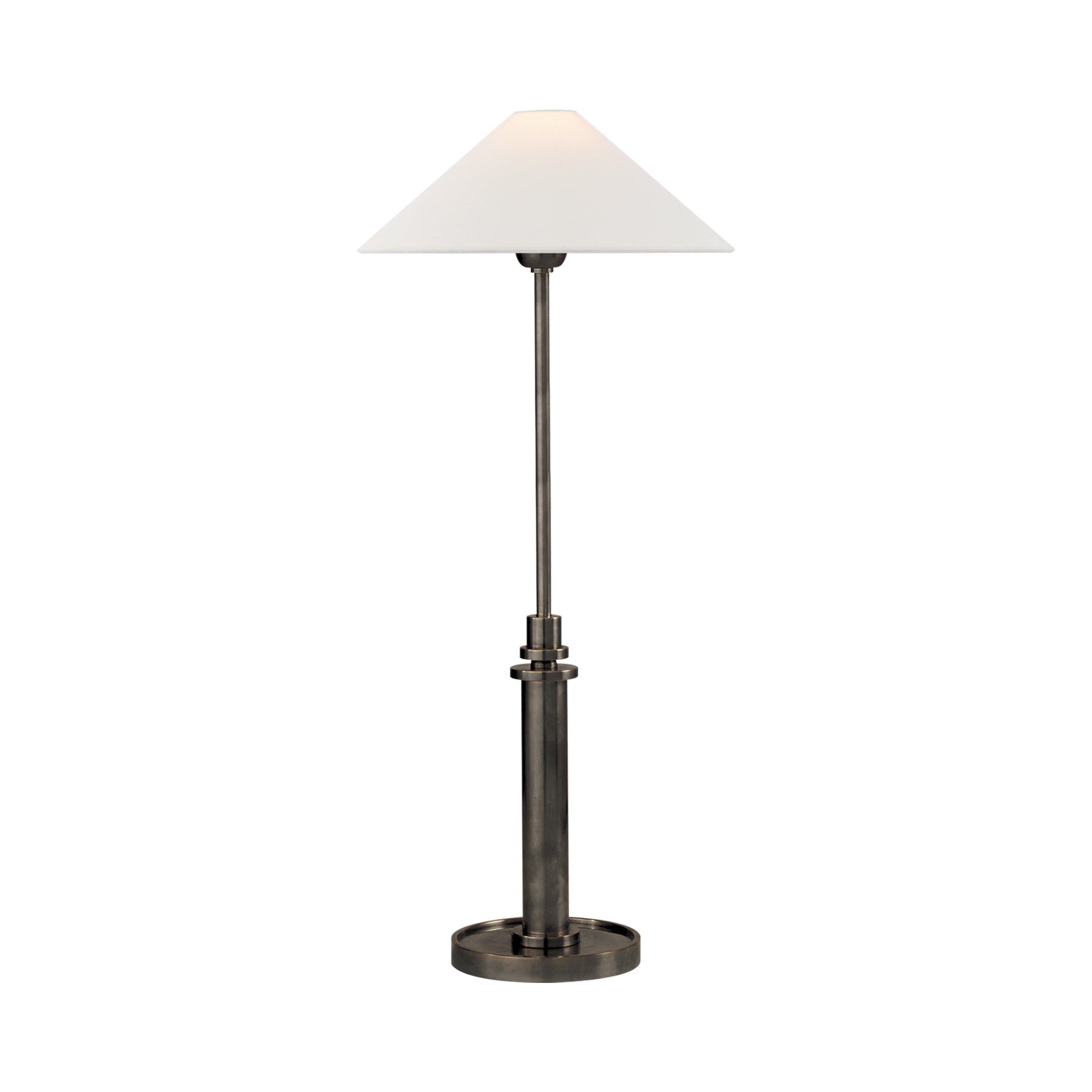 Welcome the influence of nautical and industrial flavor in a lamp that expands on simplicity. Still versatile yet intriguing, the Hargett Table Lamp from Visual Comfort Signature showcases precise engineering in metal construction with subtle detail. An Eastern-inspired linen shade wraps up critical elements adding up to a sophisticated look.