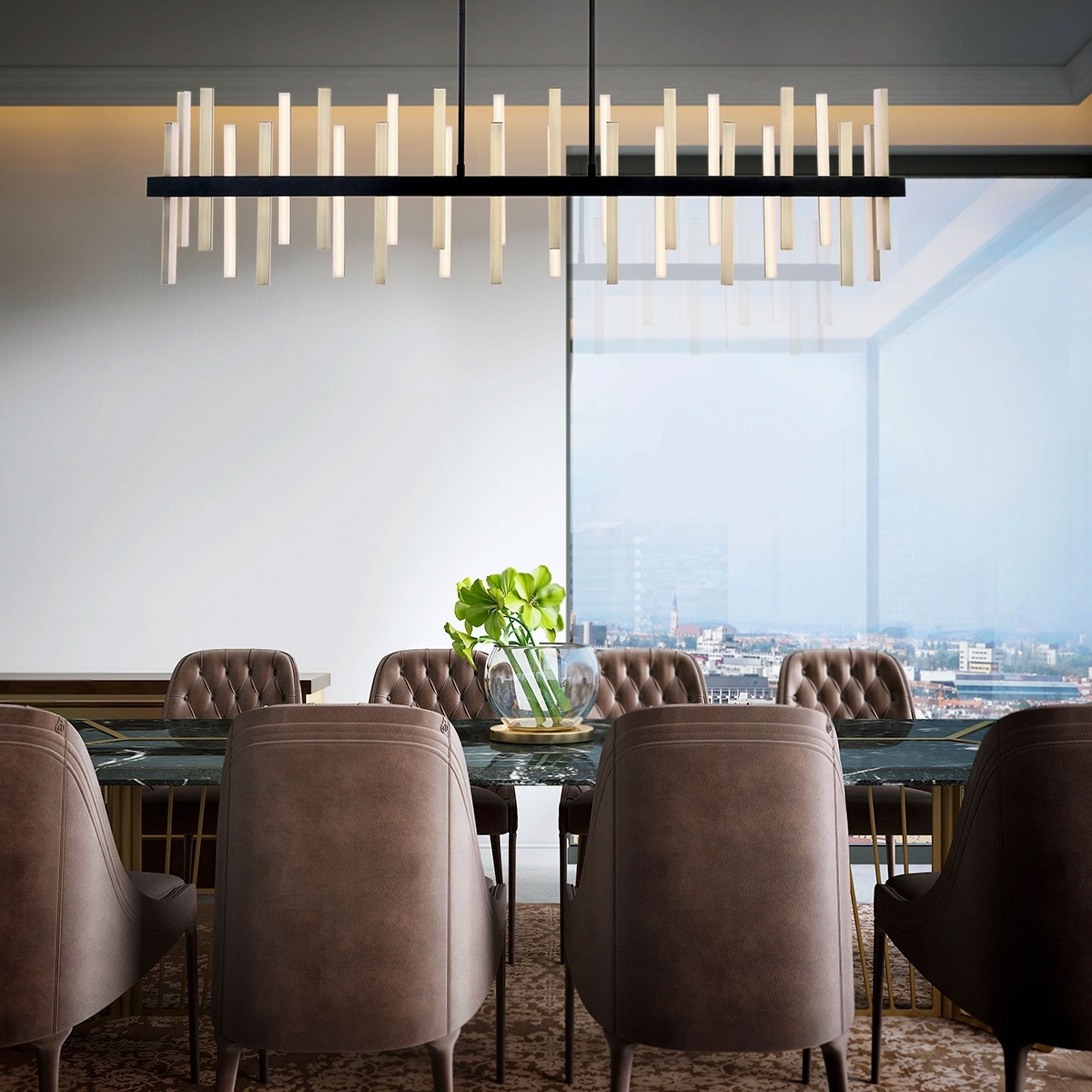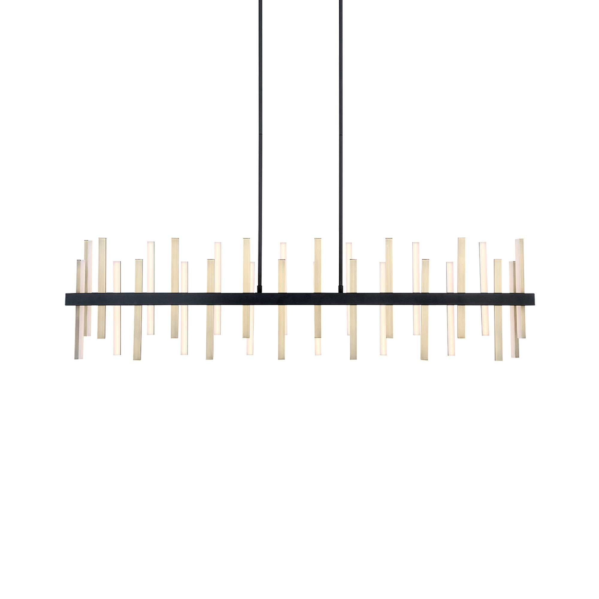 Finding rhythm in the chaos, the Harmonix Rectangular LED Pendant Light from Modern Forms is a gorgeous choice over a linear space.