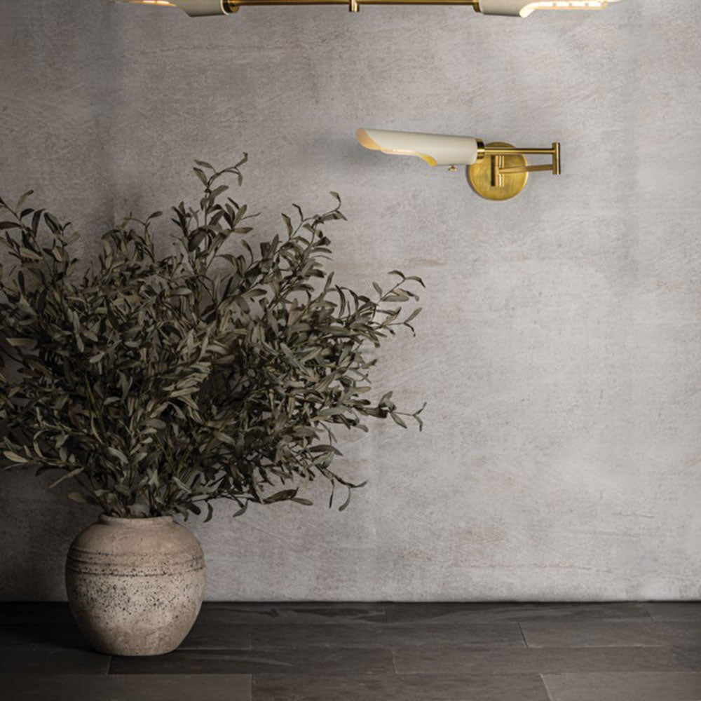 Clean-lined modernism meets whimsy in the Harperrose Wall Light from Mitzi. Its sculptural presence infuses your space with character and individualism, owing to a rich combination of aged brass finish framework and a cloud-like soft white shade. The posable arm adds versatility as the light casts downward illumination across a generous space.