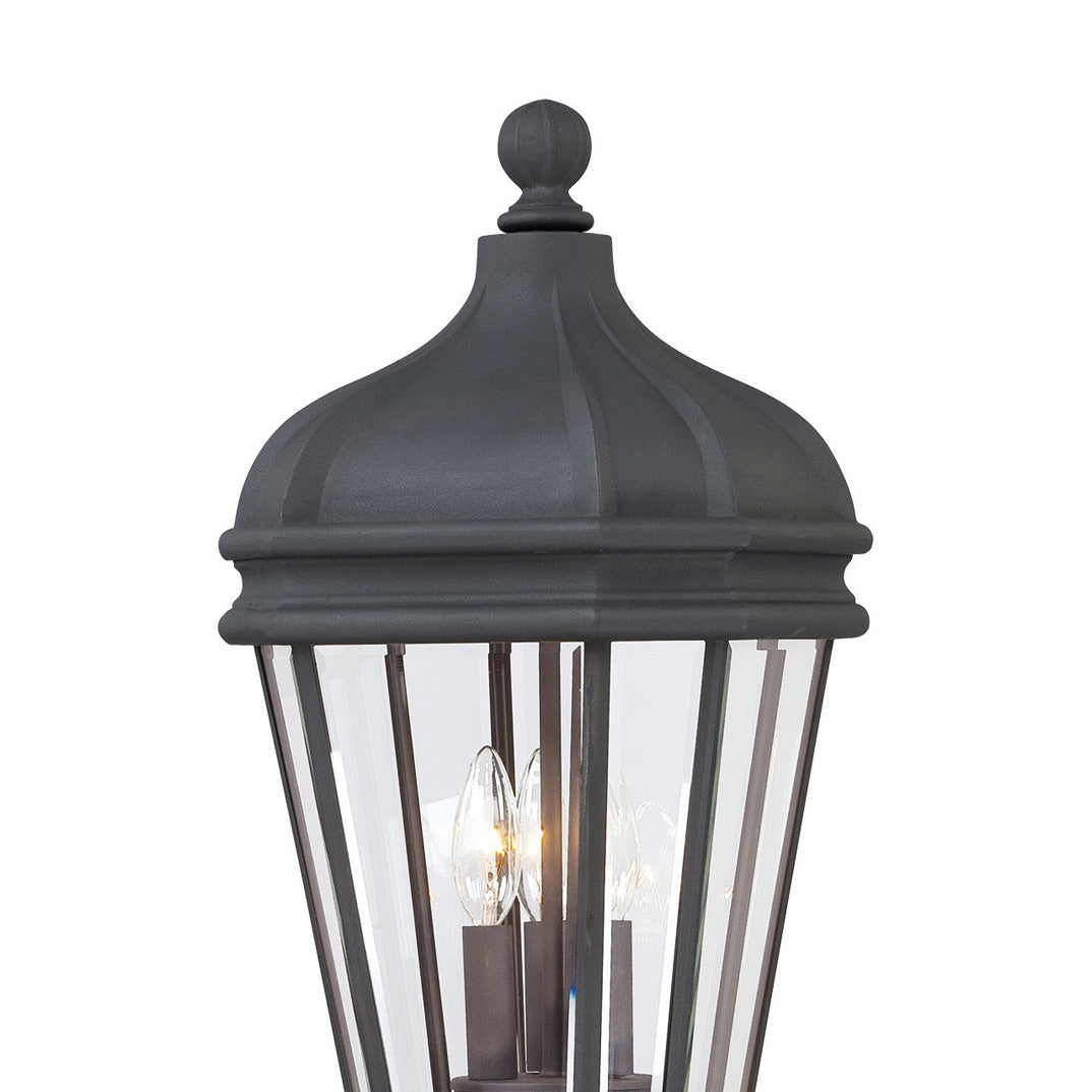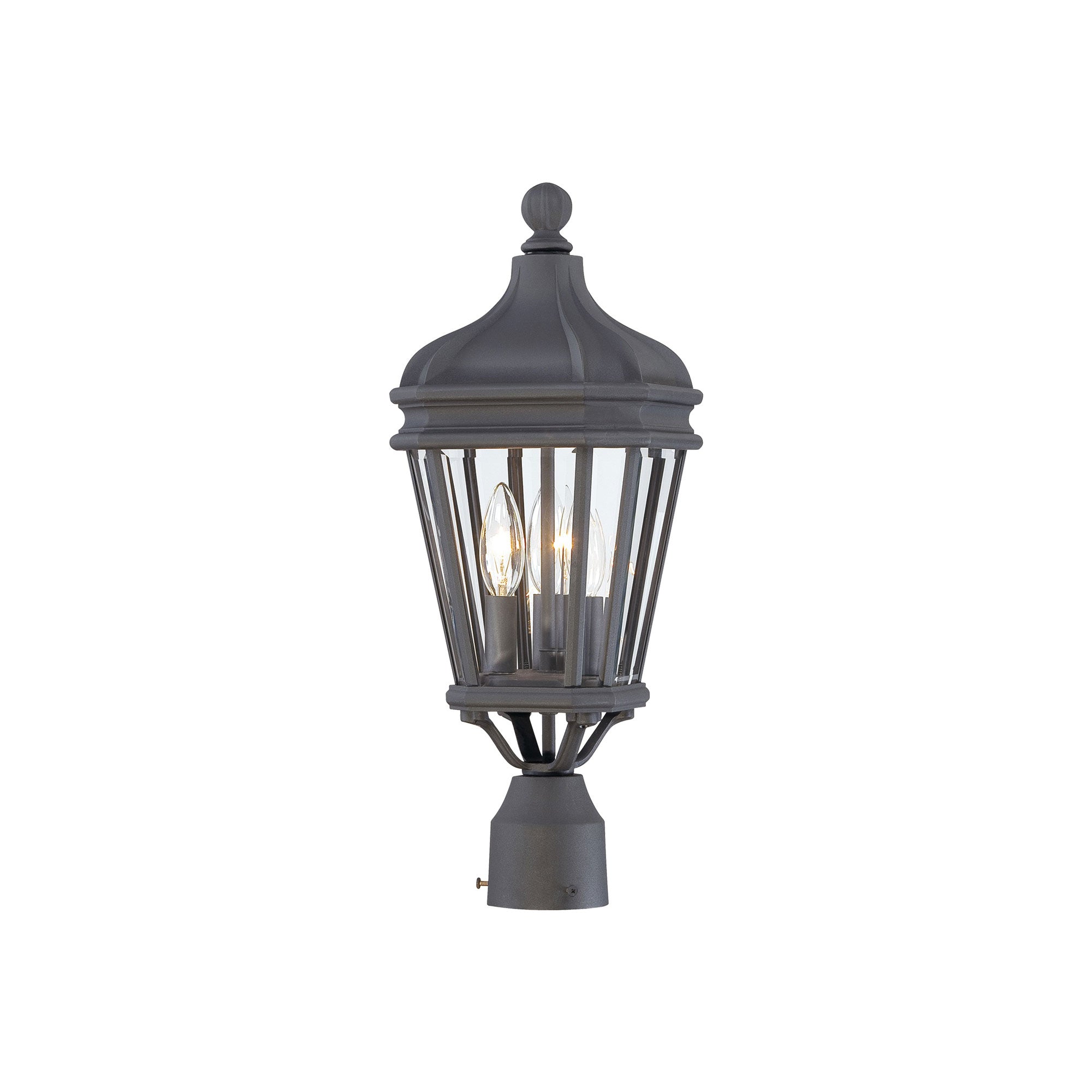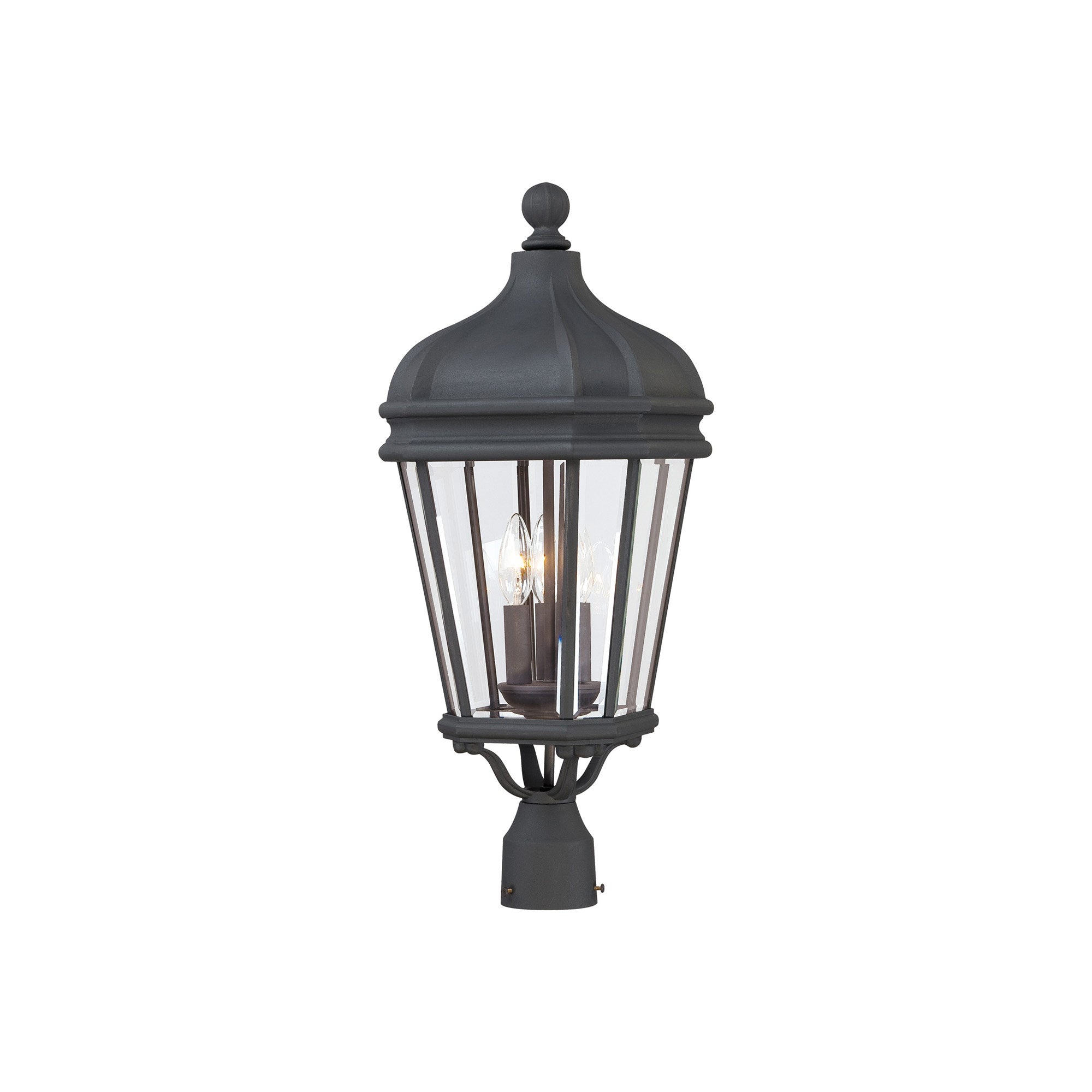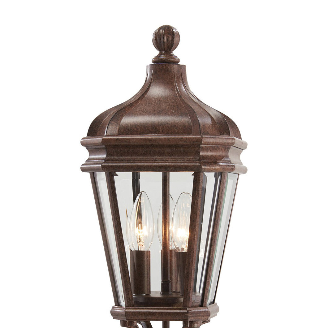 The Harrison Outdoor Post Light from The Great Outdoors offers an inspired Euro style aesthetic perfect for upgrading the elegance of a custom yard space, garden area, or walkway. This glam lantern-like fixture is crafted of metal with regal accents and clear beveled glass panels offering full view of a vintage-influenced candelabra light base.