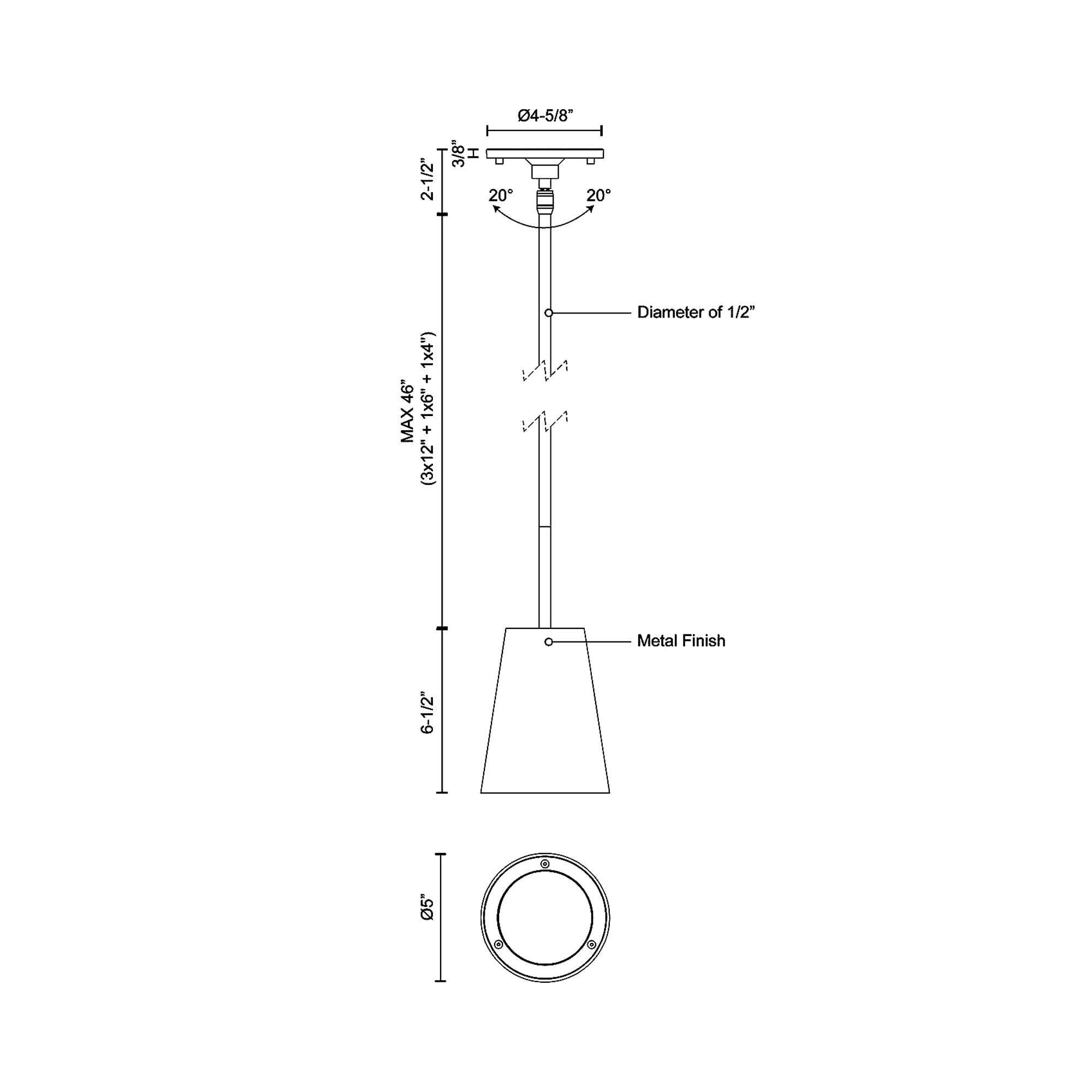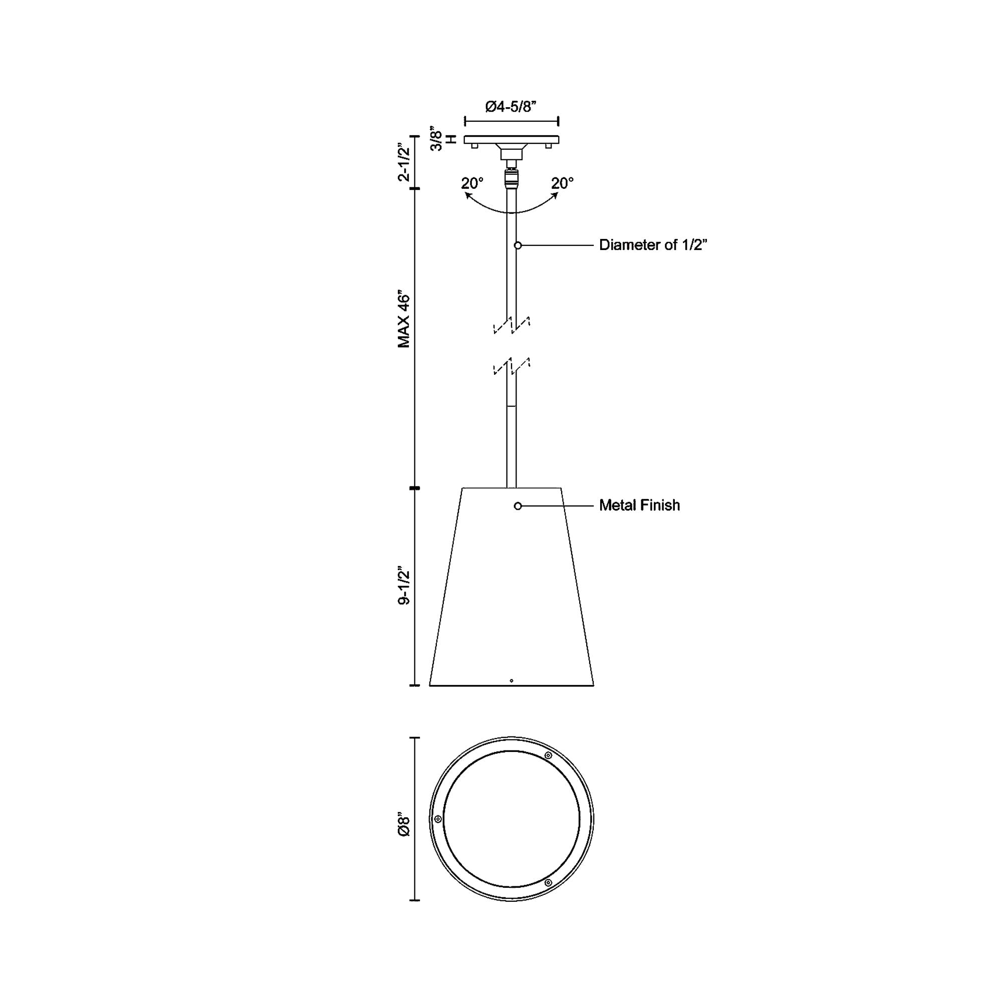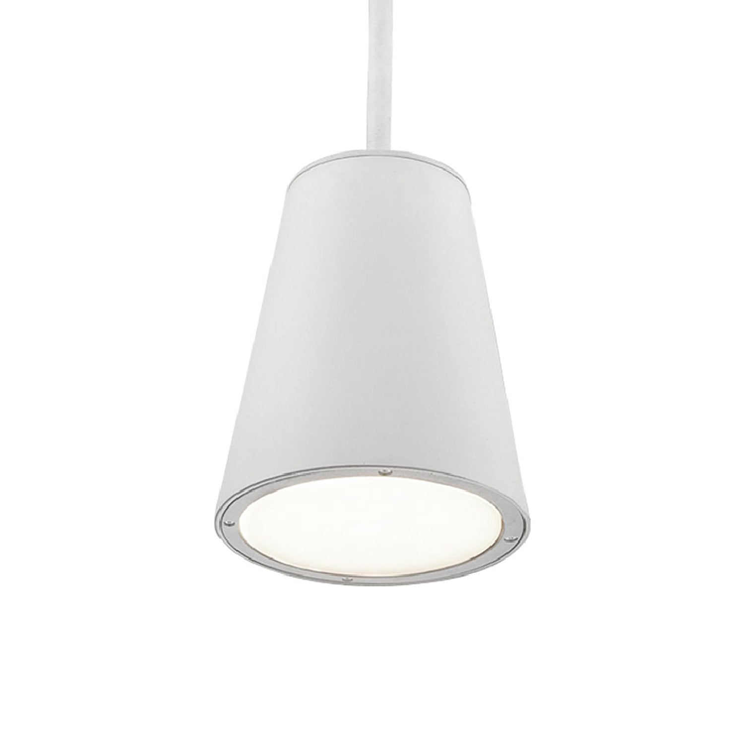 Cast aluminum conical housing with ceiling mount. Lightly powder-coated finish. Opal round glass diffuser. Down light. Pendant. Custom options available.