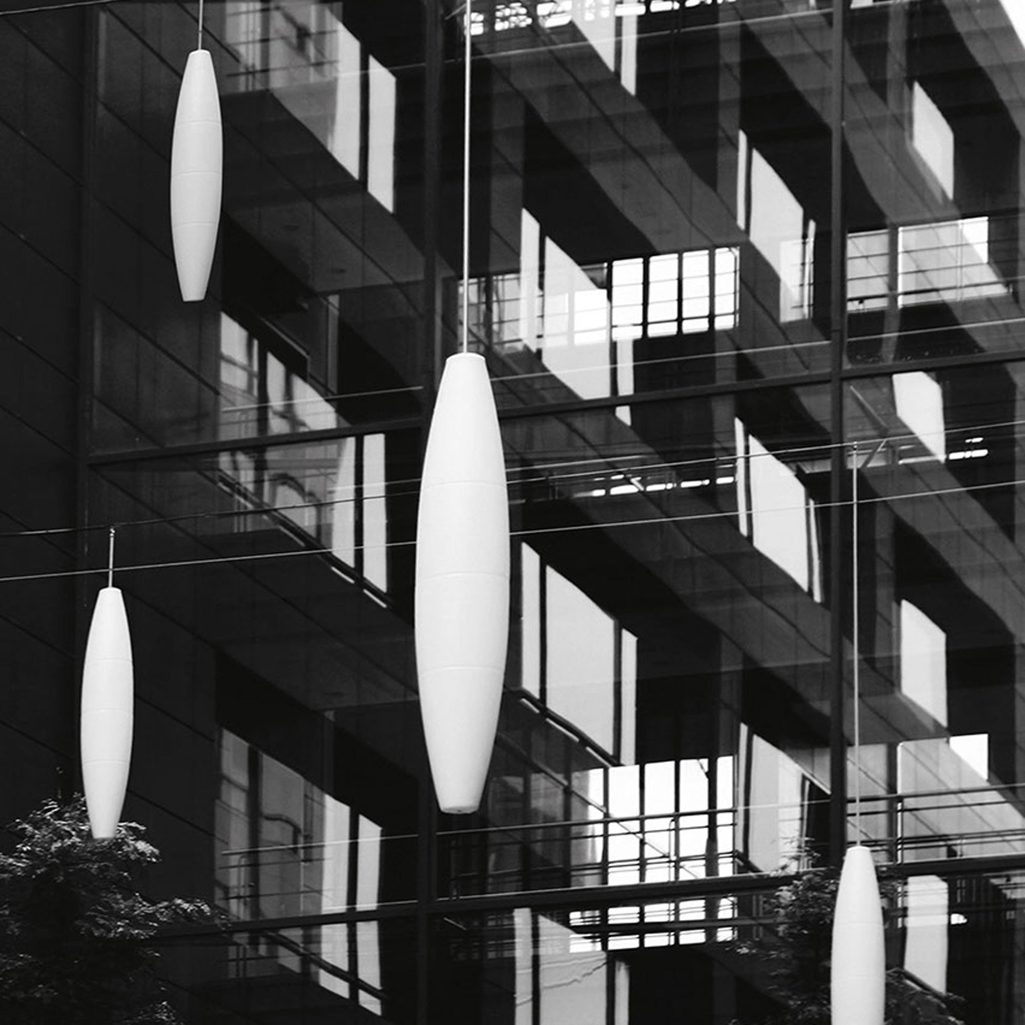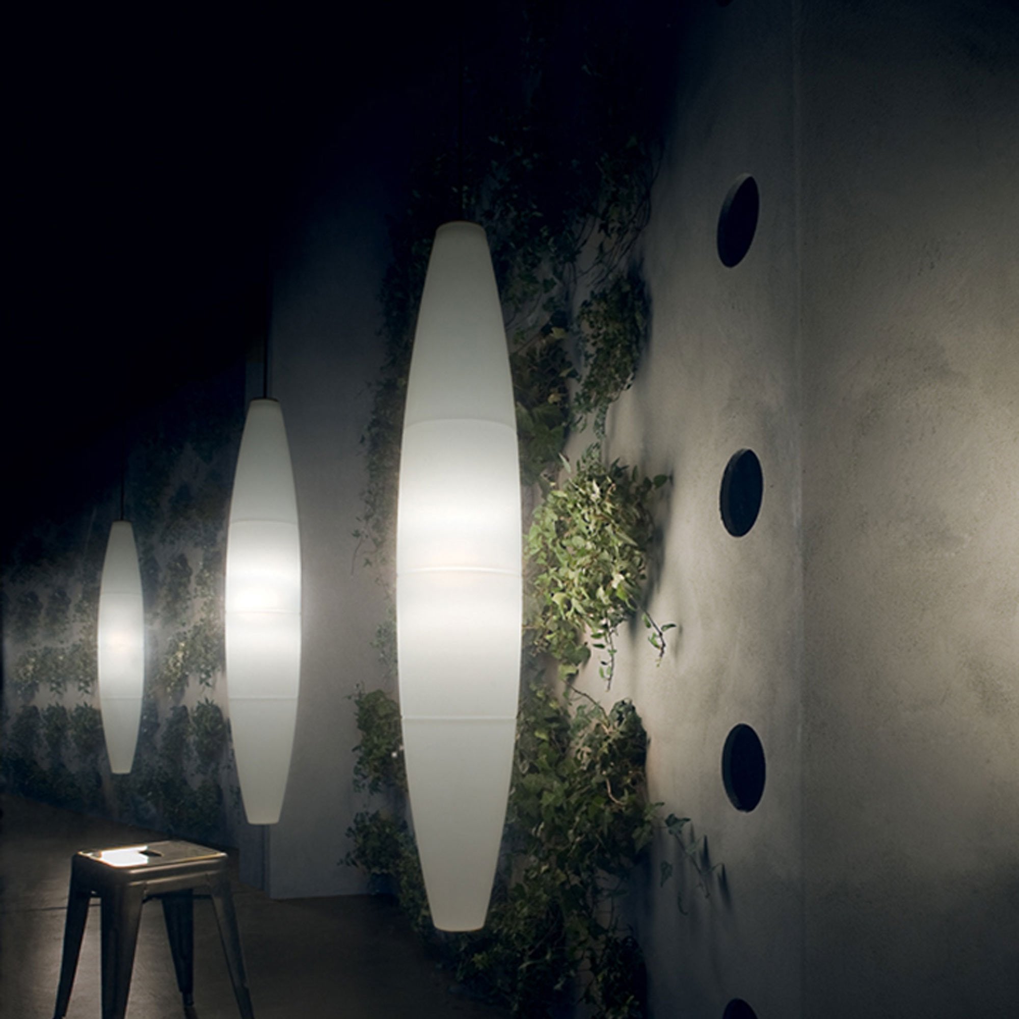 Conversations and memories will be made beneath this Havana Outdoor Pendant Light from Foscarini. The cigar style silhouette is sleek and modern while serving as a focal point above a bold outdoor entertainment area.