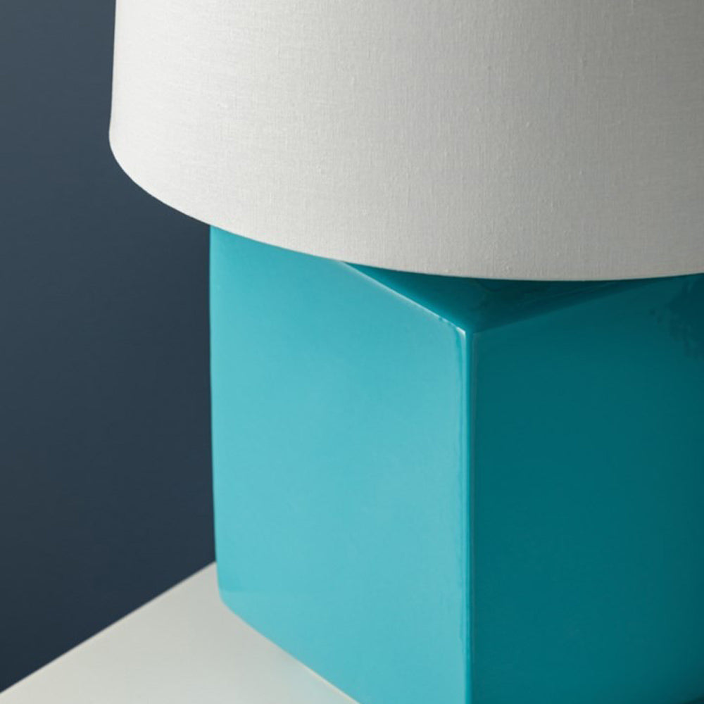 Change up a casual space with a masterful mix of color and geometric silhouetting. The Hawley Table Lamp from Hudson Valley Lighting delights with a compelling turquoise matte glow over ceramic, as its structured body shows the best of chunky geometry. A crisp white shade exacerbates the impact of color, becoming a beloved addition to modern décor.