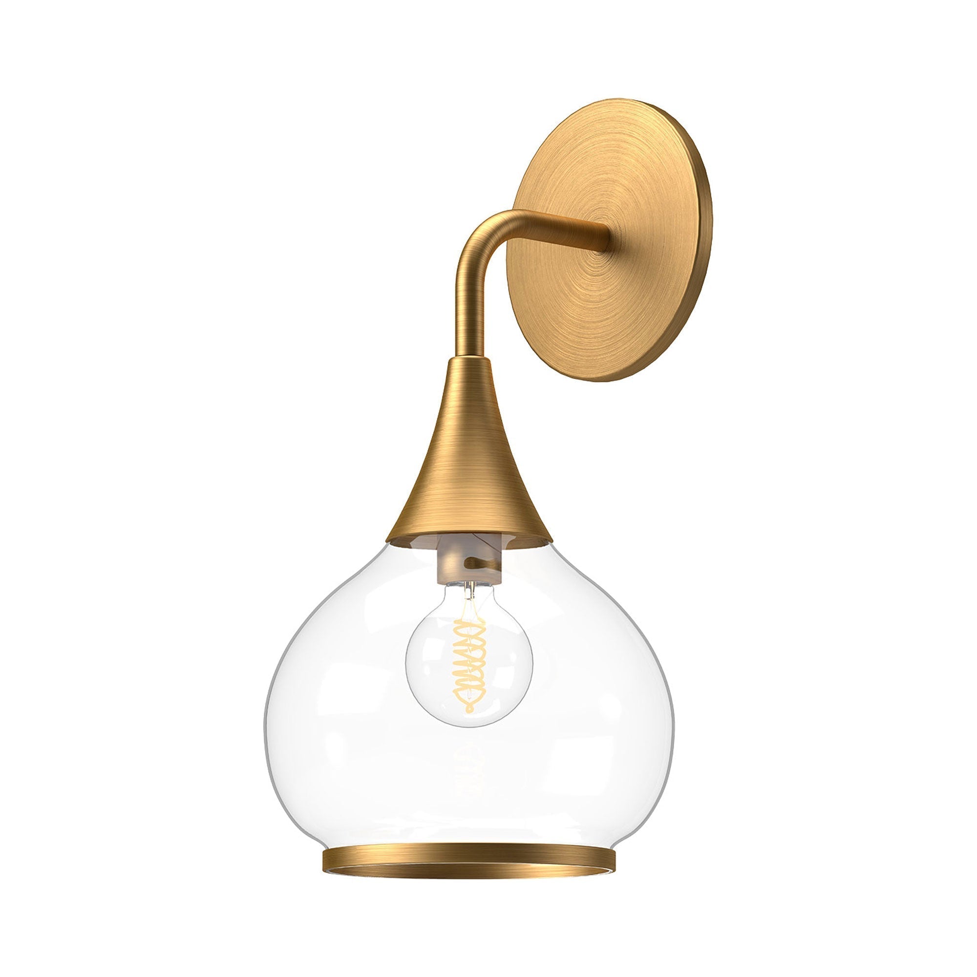 Glam influence works with a vintage-inspired apothecary theme, creating a sophisticated fixture for upscale bath spaces. The Hazel Bath Wall Light from Alora Mood lifts the mood and the elegance of a custom ensuite or guest bath with a tempting blend of metal and exquisitely curvy glass.