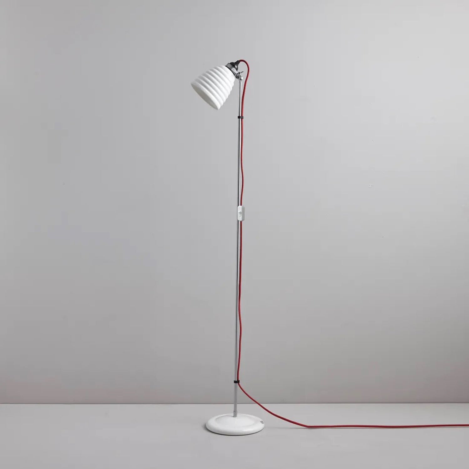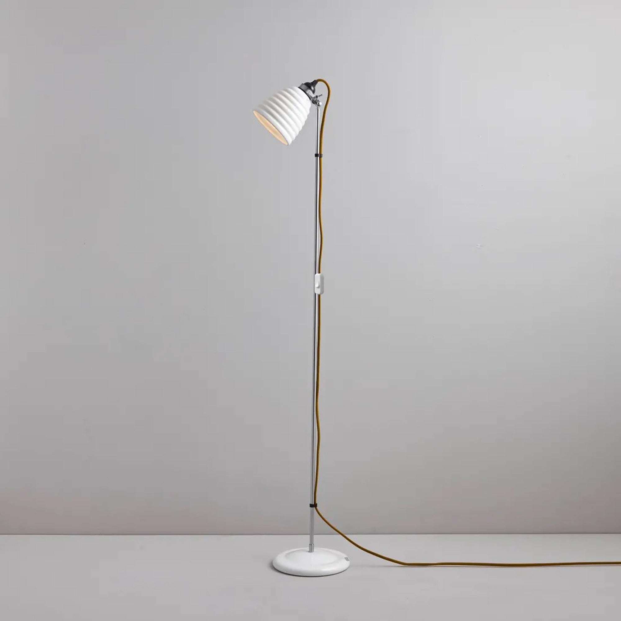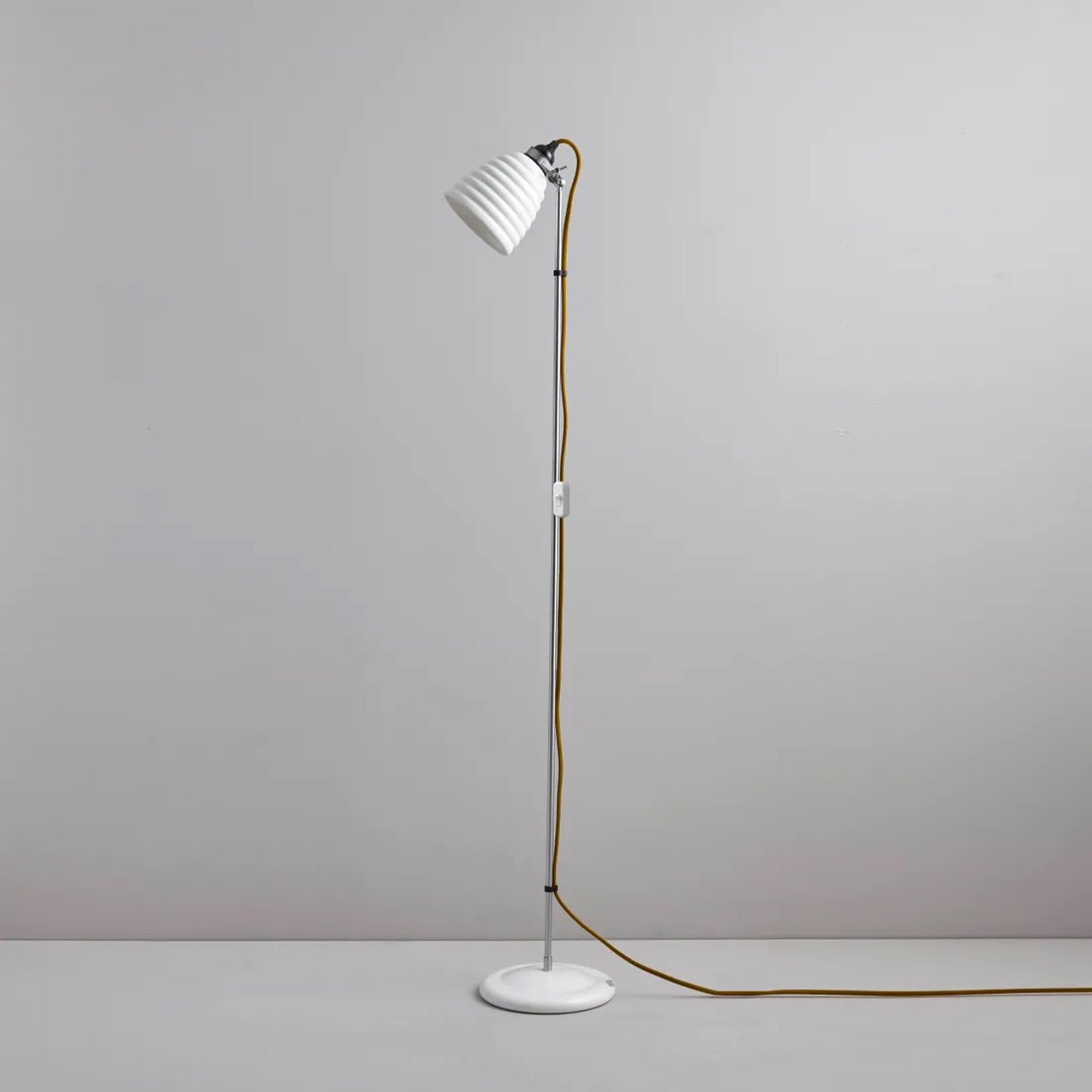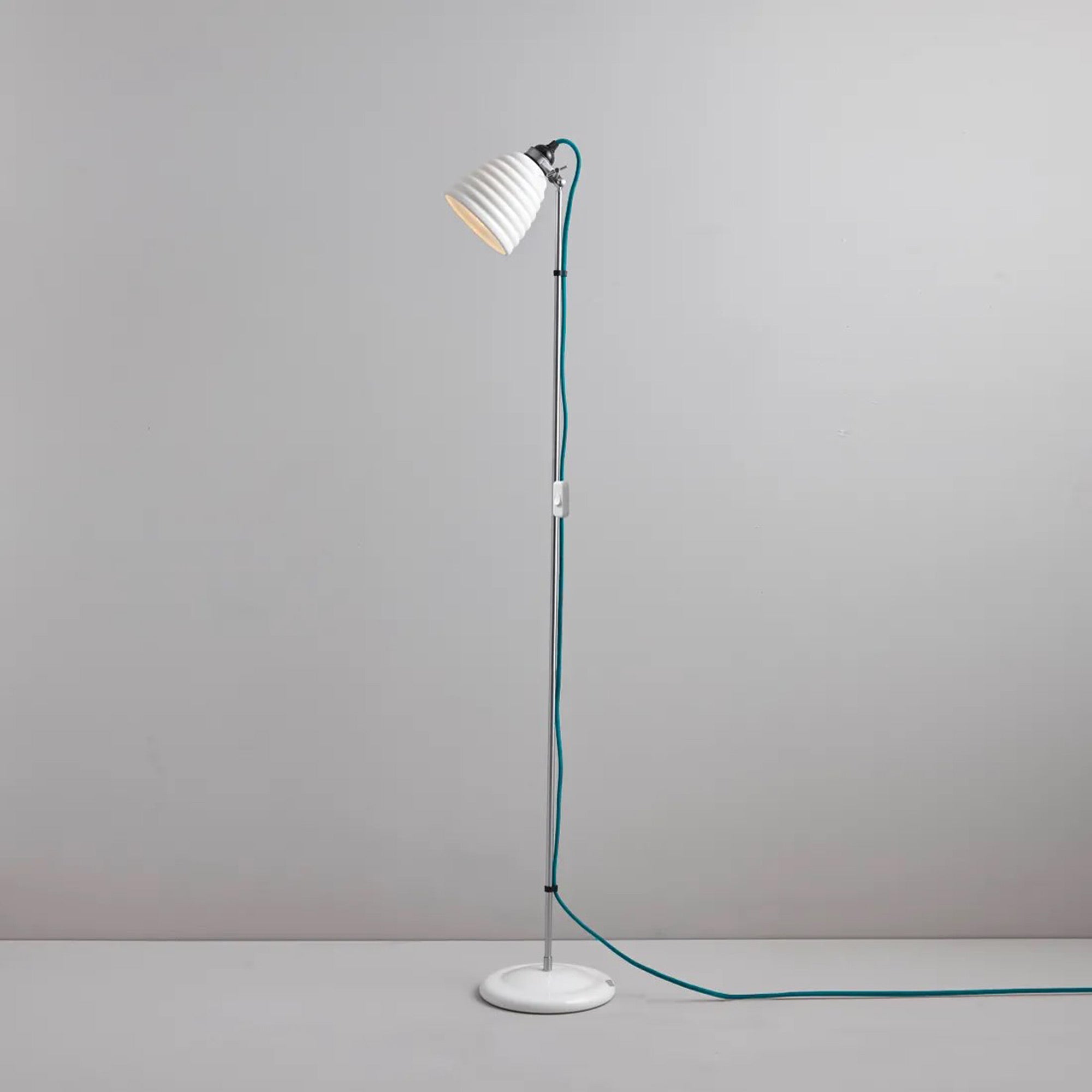 Measured elegance visits motifs of both industrial and studio, and artisan ceramic, creating an intriguing look to the Hector Bibendum Floor Lamp from Original BTC. Vertical layers offer a textural look to its natural bone white shade, adjustable as it is versatile and charming. A colorful cable and metal stem help finish a configuration that illuminates a transitional or modern setting.