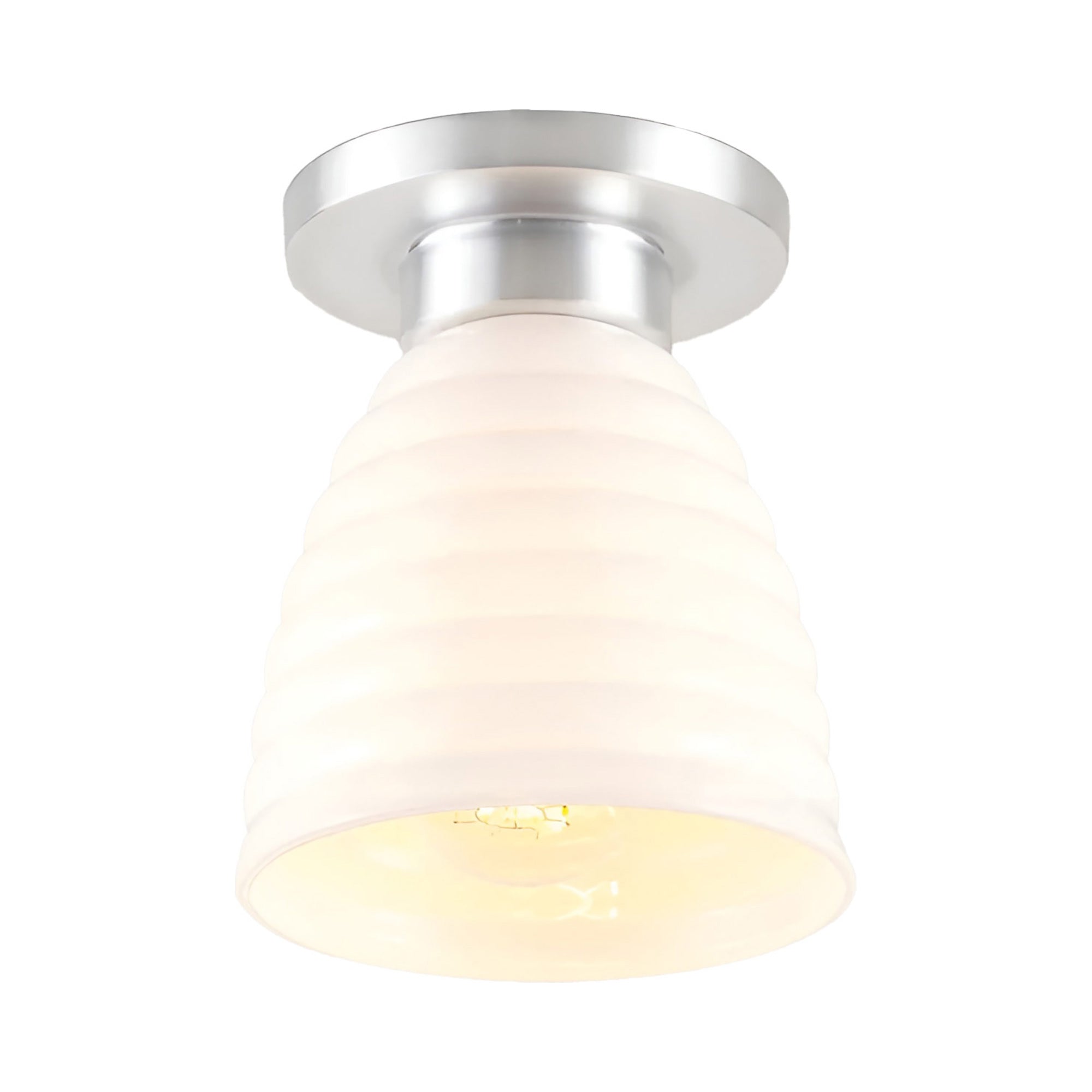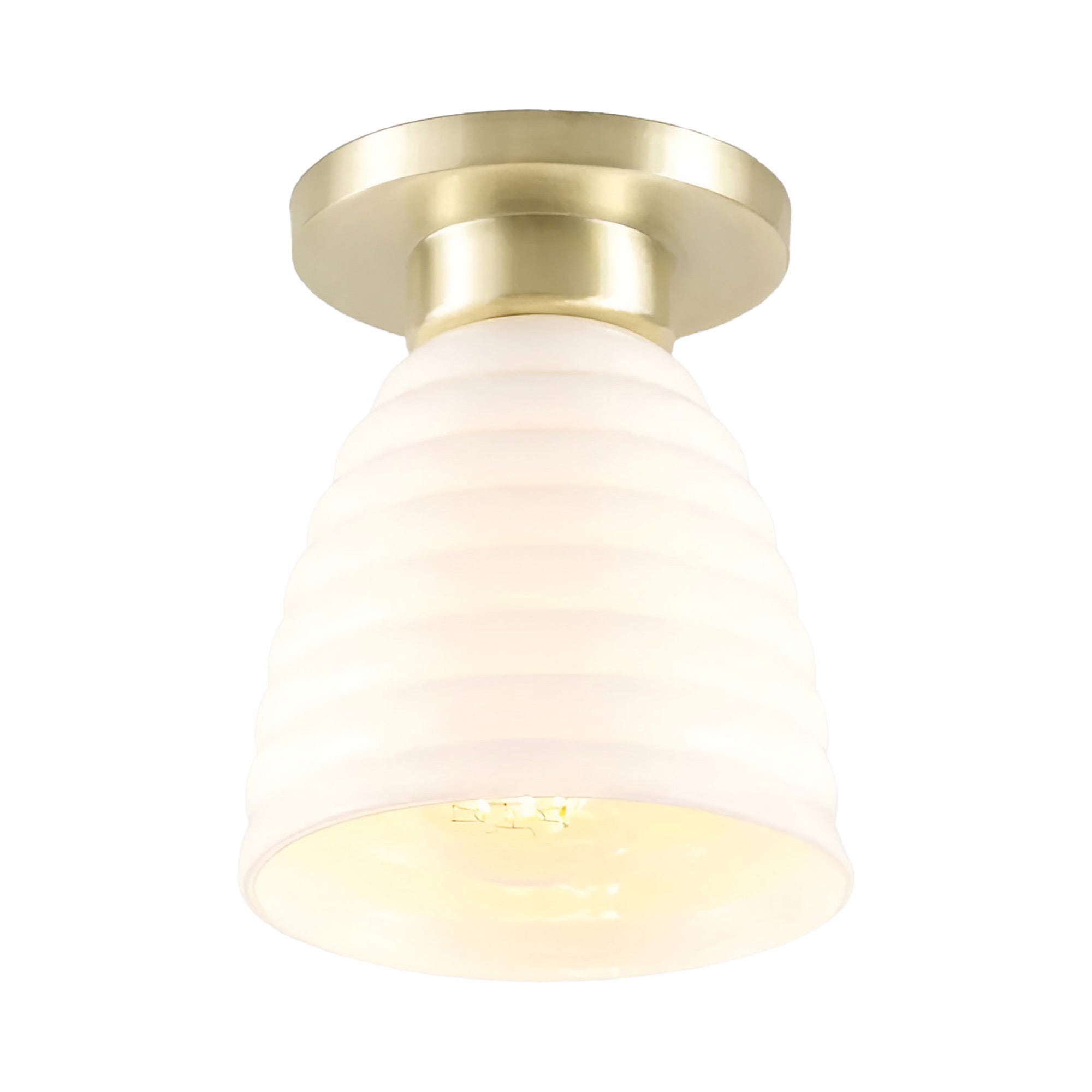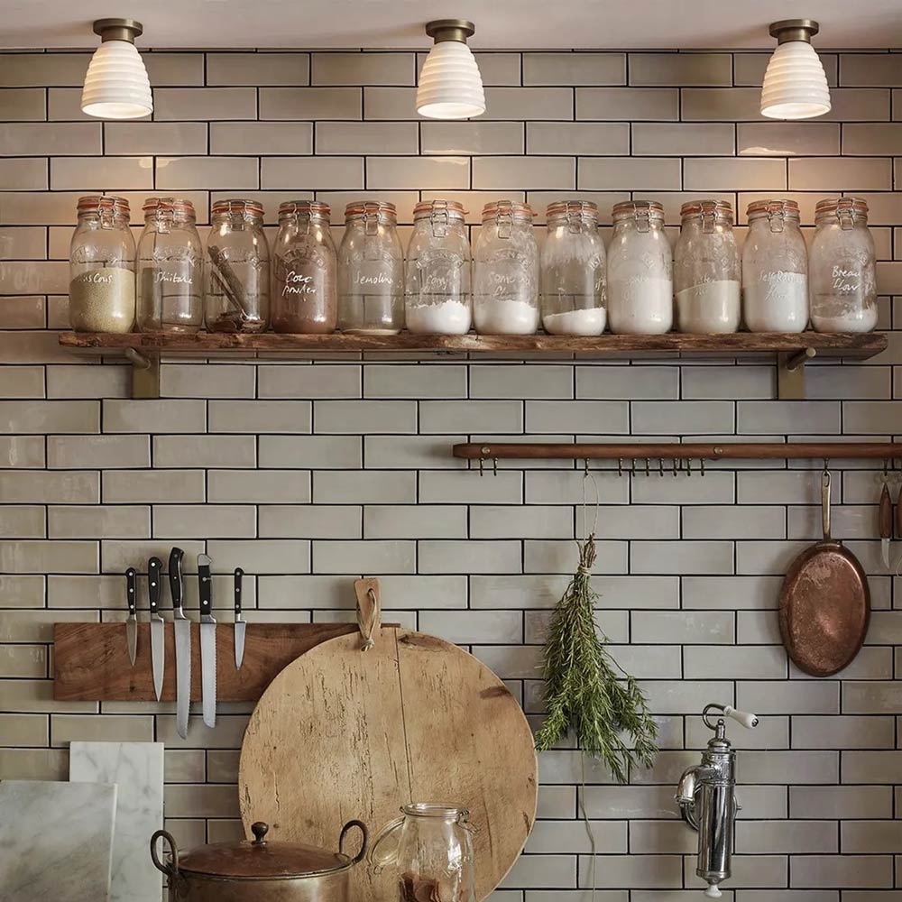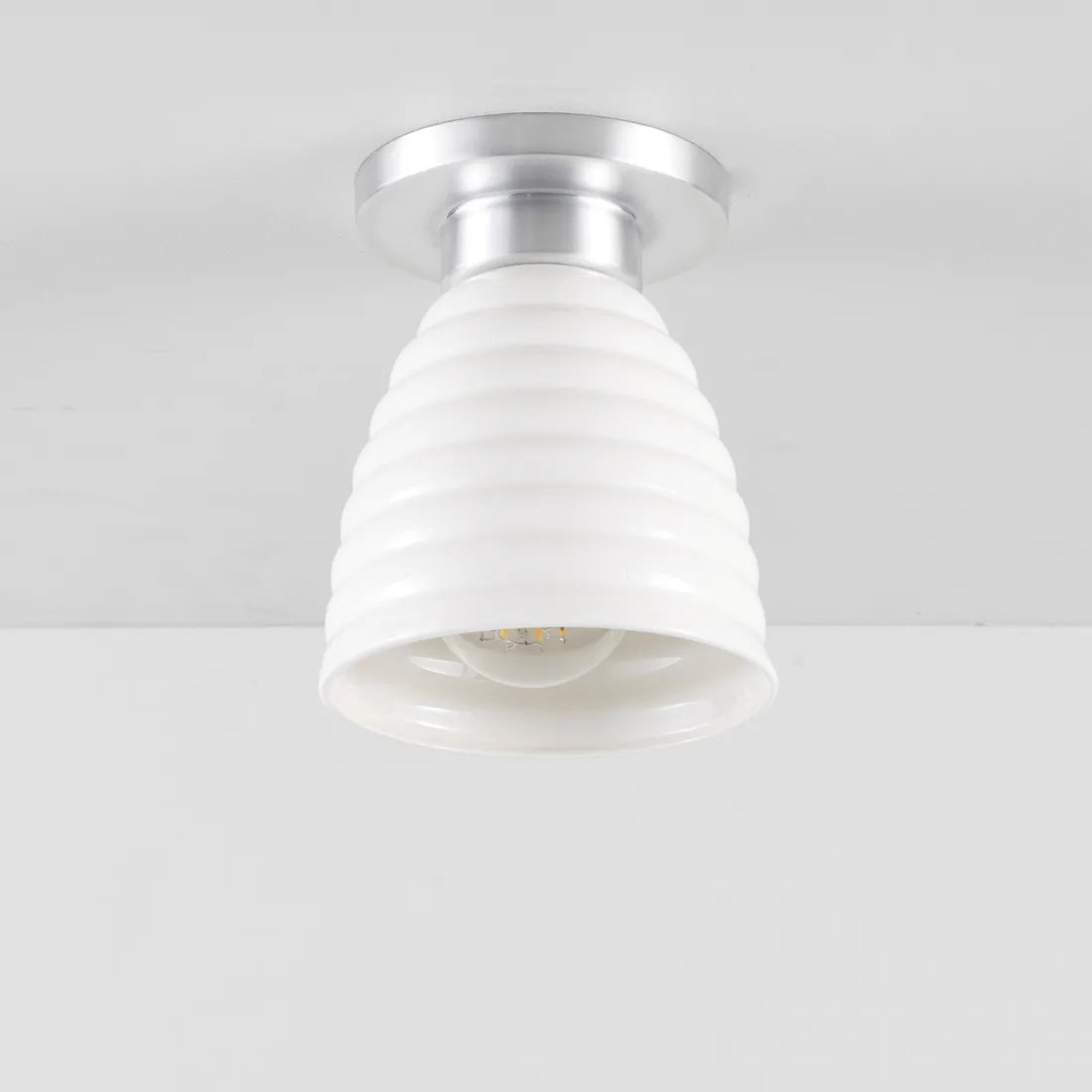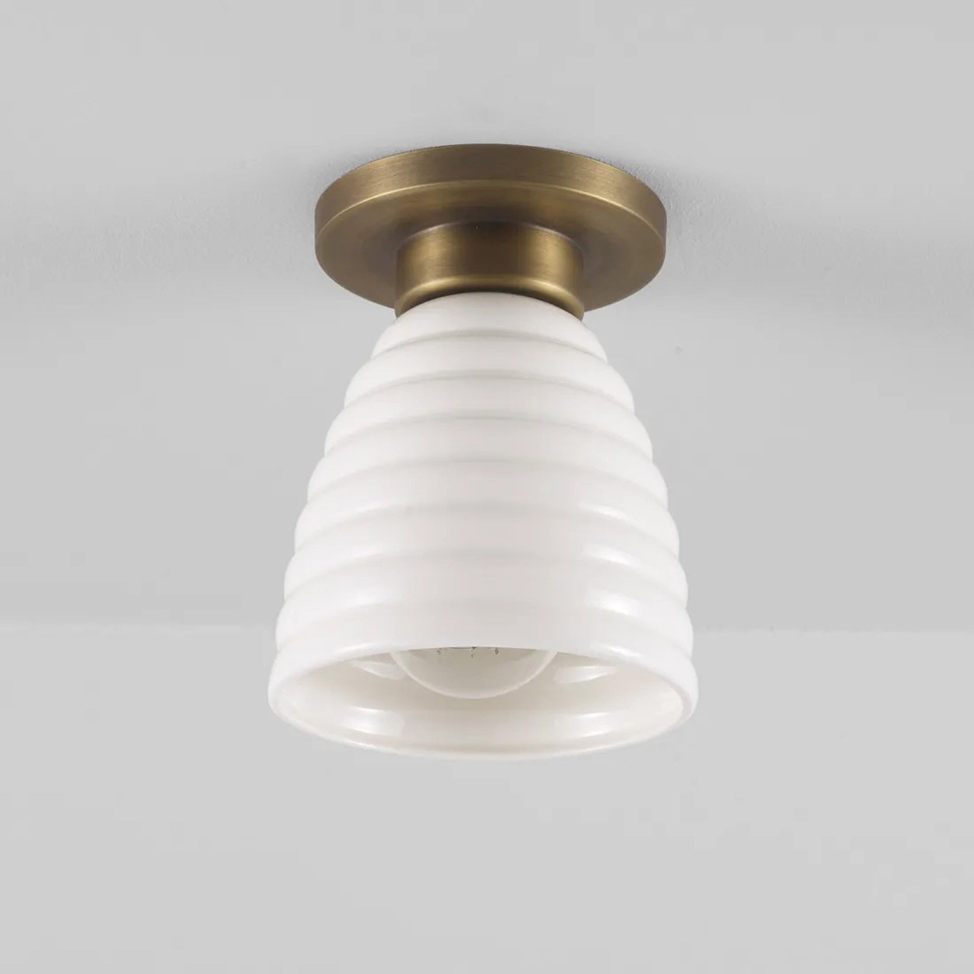 Delightful and timeless ceramic creates an artisanal organic motif as the Hector Bibendum Flush Mount Ceiling Light from Original BTC shows off a tempting avenue to soft illumination. Shapely metal framing of a tiered canopy complements the long dome silhouette of a natural bone china shade with textural ribbing. This smooth blend translates to a pristine aesthetic with no shortage of versatility.