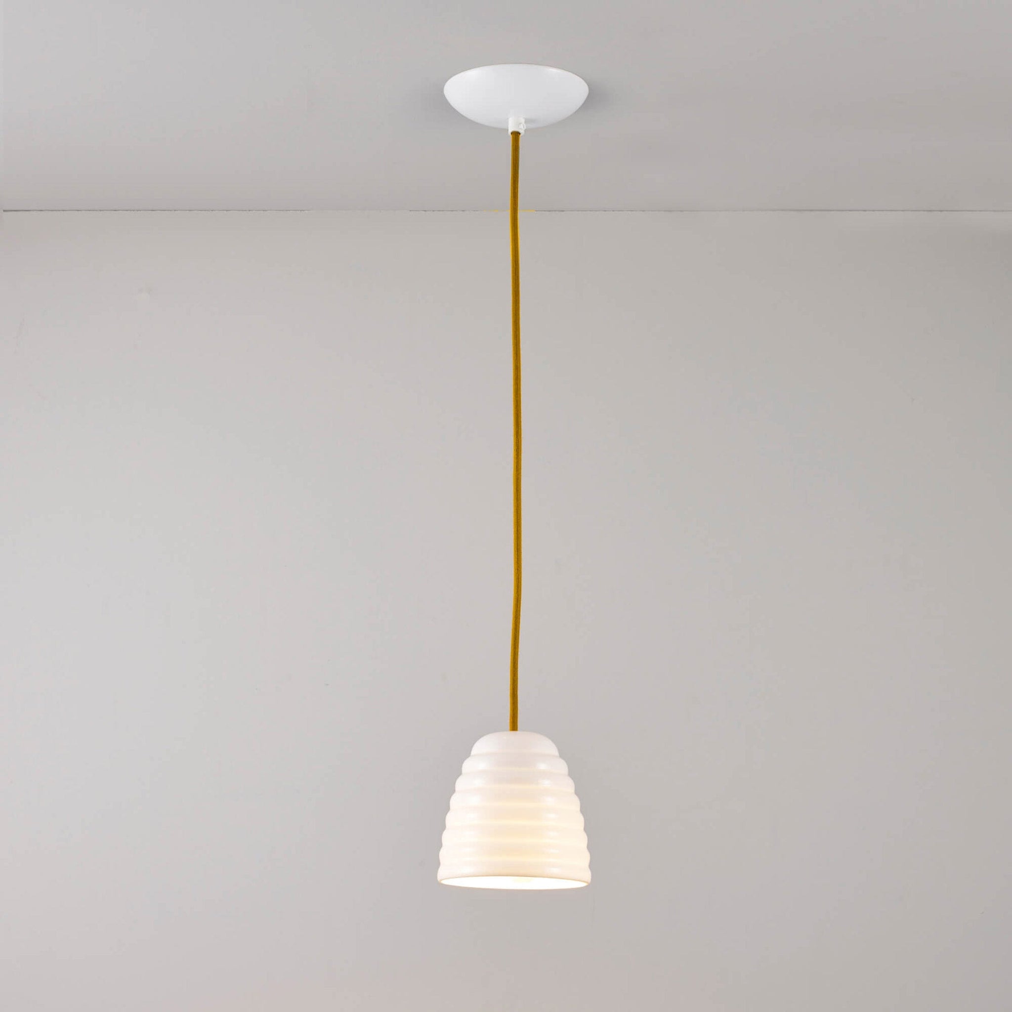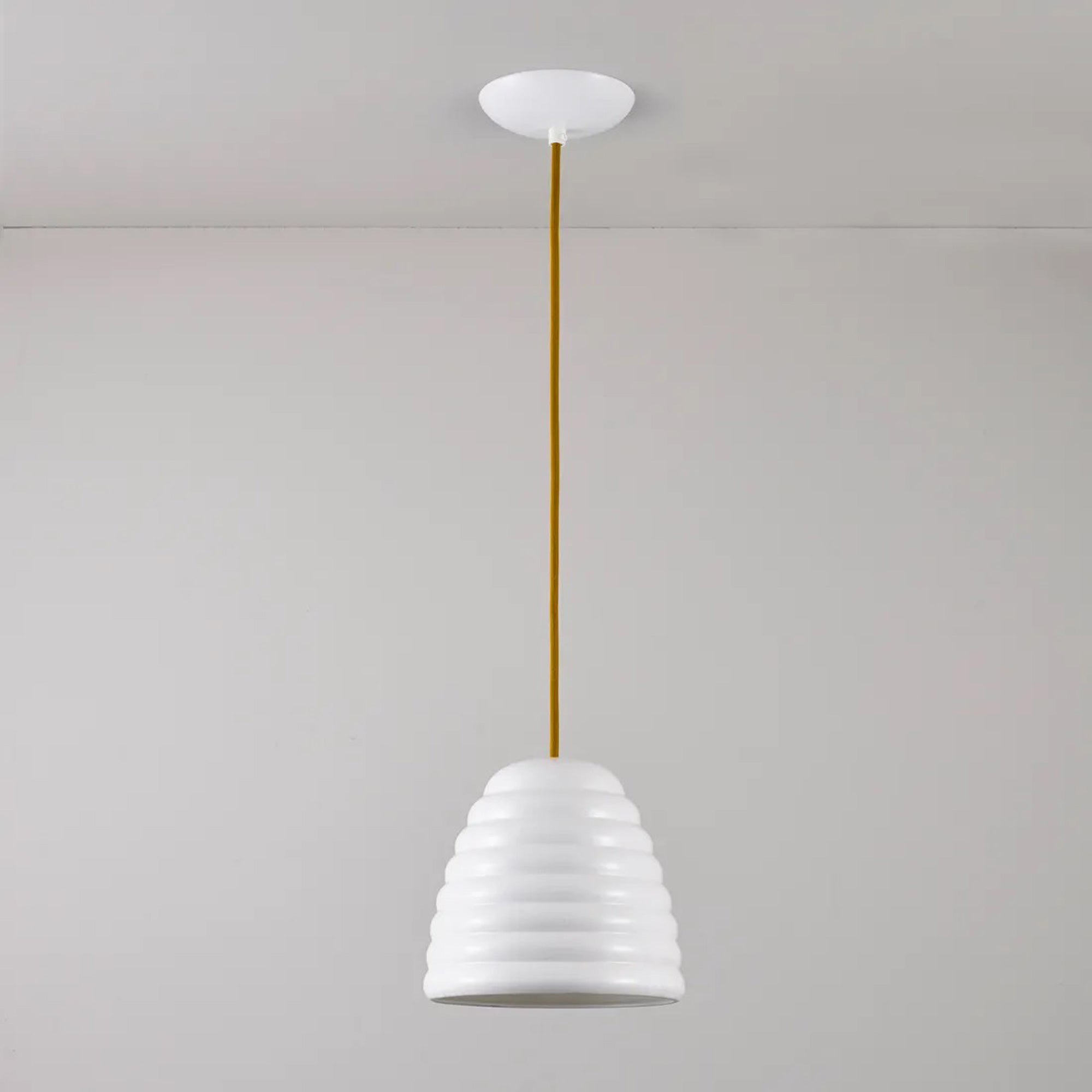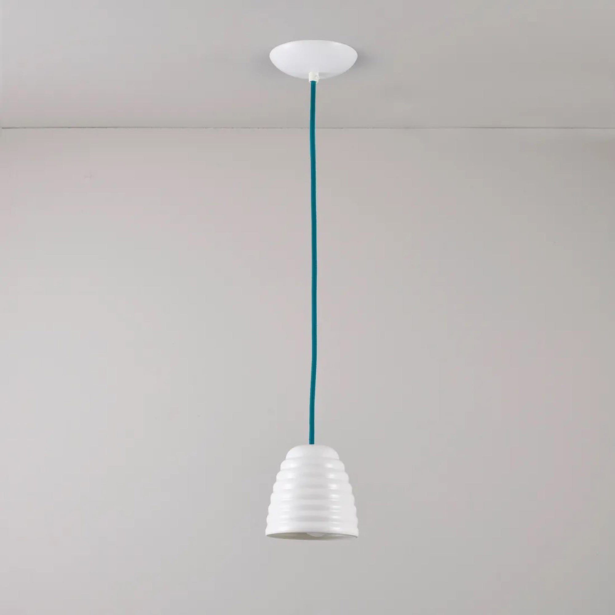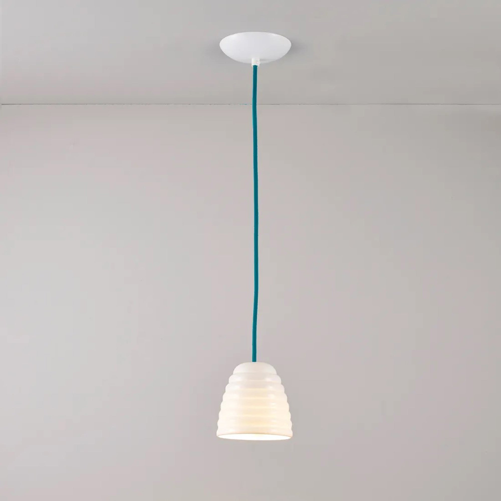 Natural bone china showcases its artisan side as it forms a textural shade with delicate charm. The Hector Bibendum Pendant Light from Original BTC features a matching canopy and colorful braided cord, accomplishing a minimalist motif with the updates you want.