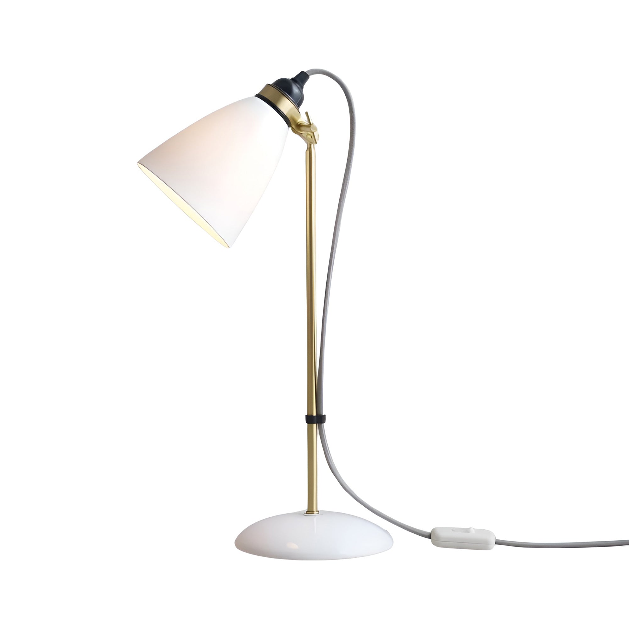 Inventive with a mixed palette and studio aesthetic, the Hector Table Lamp from Original BTC is the ultimate source of illumination for desks and end tables. Smooth construction of natural white bone china crafts a dome shade and dome base, with a metal stem and iconic fabric cord. Adjust its shade to provide precise targeting as needed.